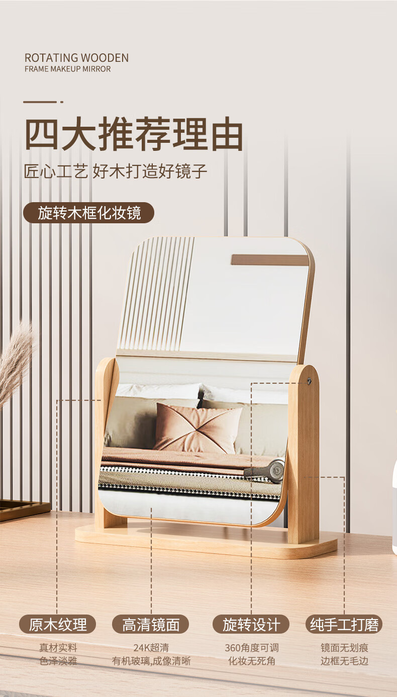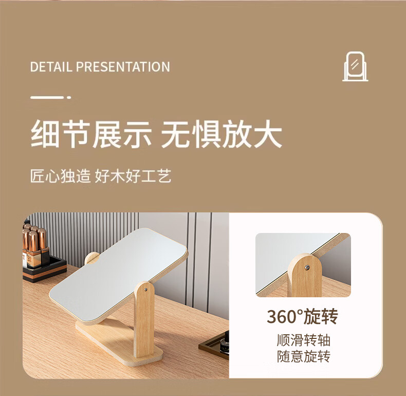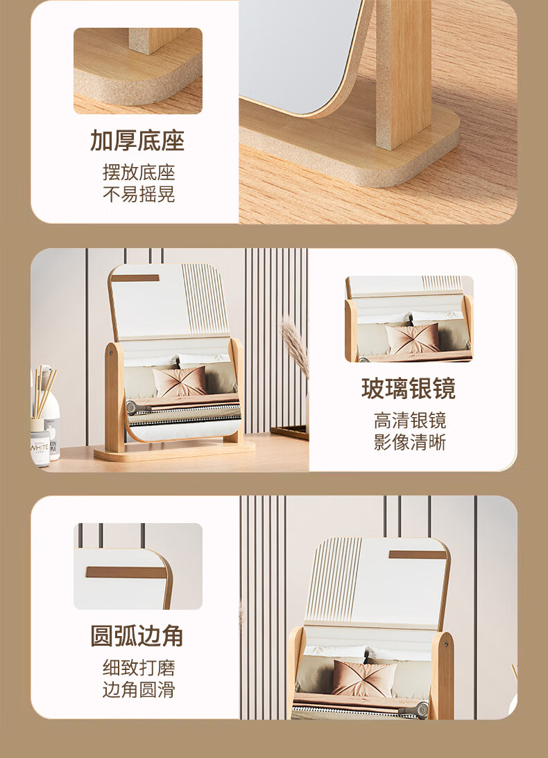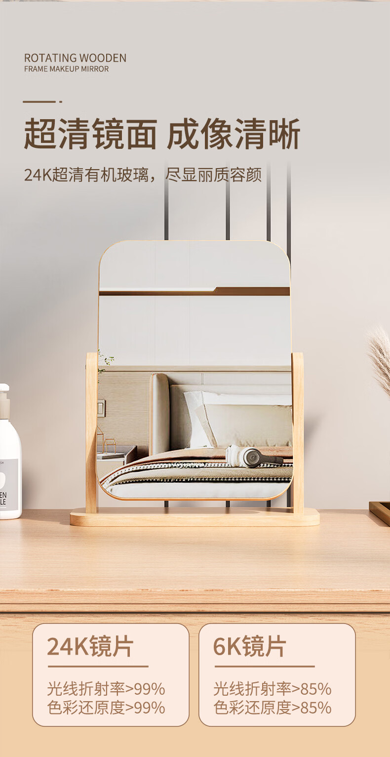 Mirror desktop vertical 2025 new makeup table mirror with light makeup mirror makeup mirror desktop desktop light luxury makeup mirror three-tone light large round mirror white high-definition mirror damage guarantee