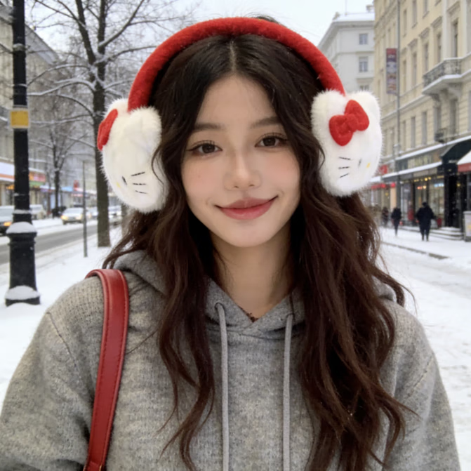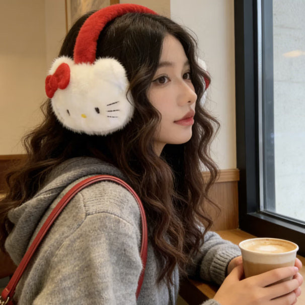 Yookdd earmuffs for women in autumn and winter new style cute kitten cold-proof plush earmuffs anti-freeze student ear protection cycling earmuffs cute cat earmuffs red