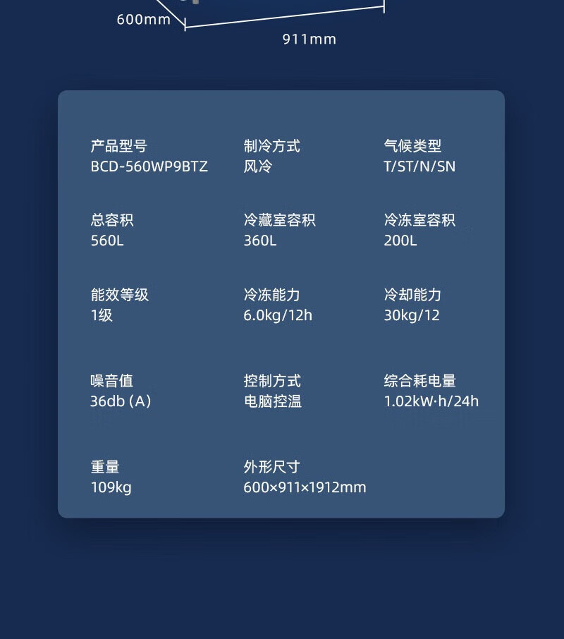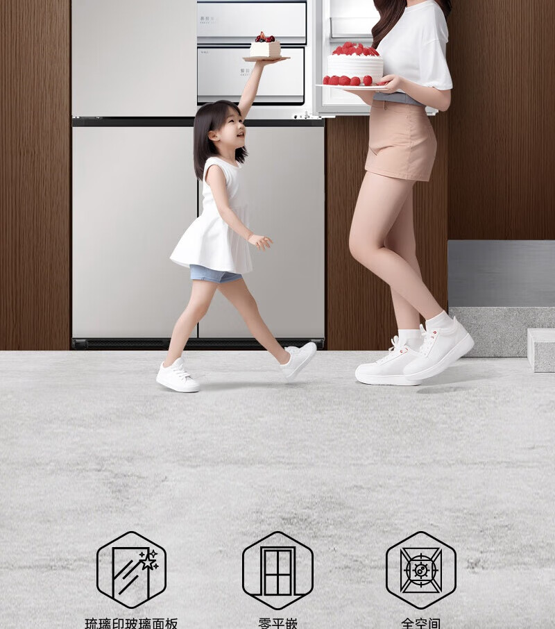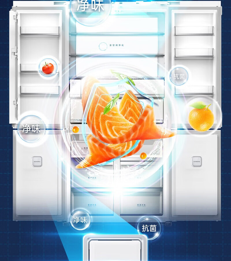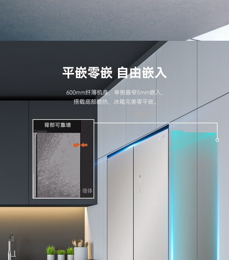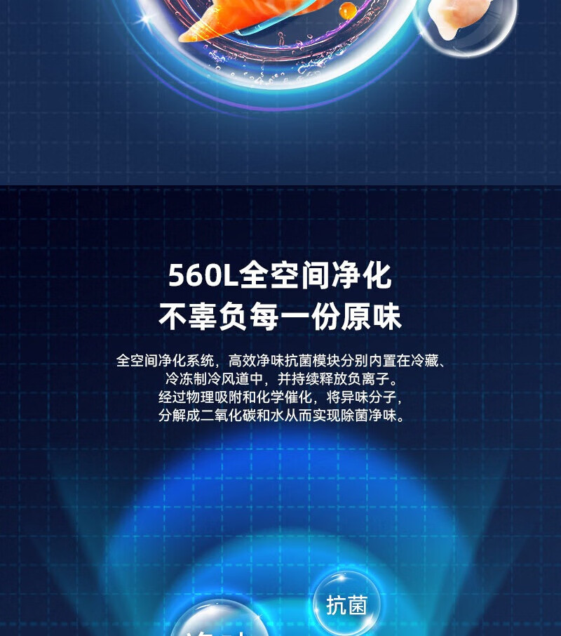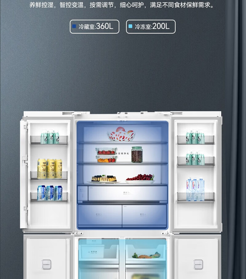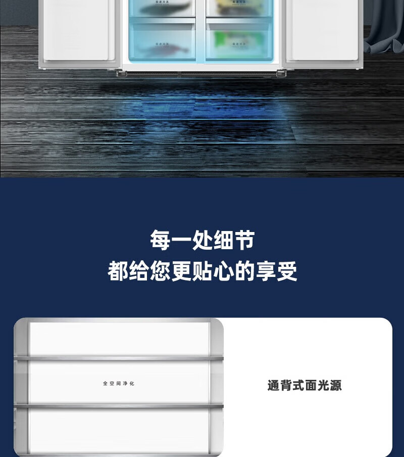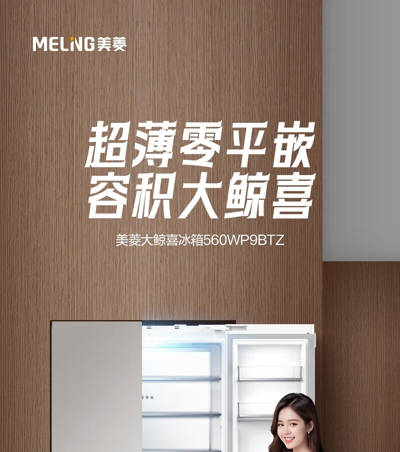 MeiLing Dajixi 560 liter large capacity automatic ice making active sterilization zero built-in refrigerator 560WP9BTZ glazed seal 560 liter large capacity cross door ultra-thin refrigerator