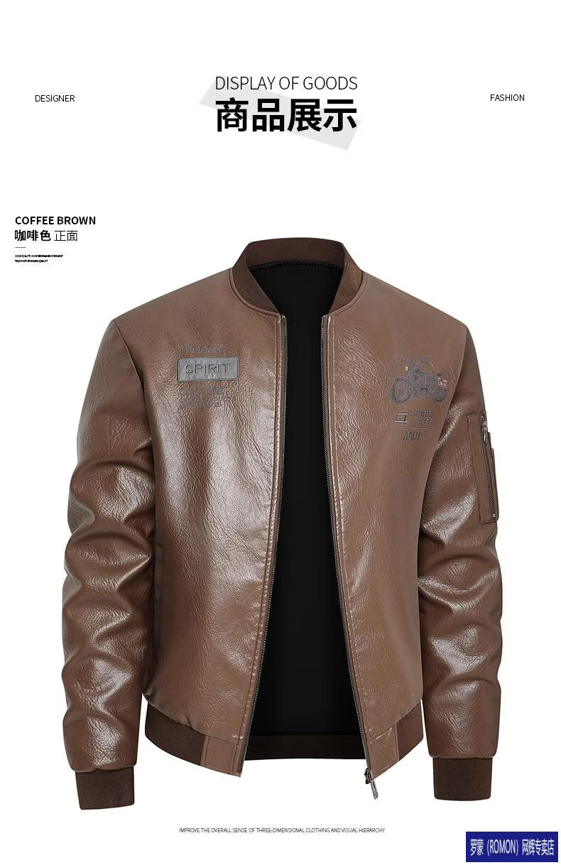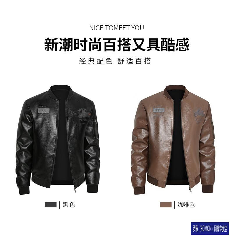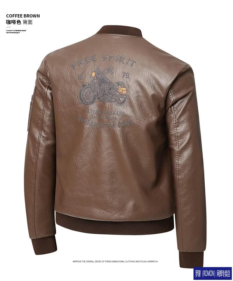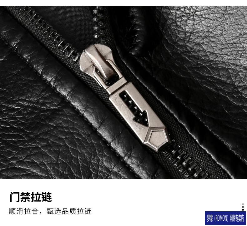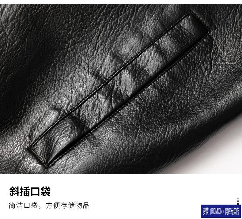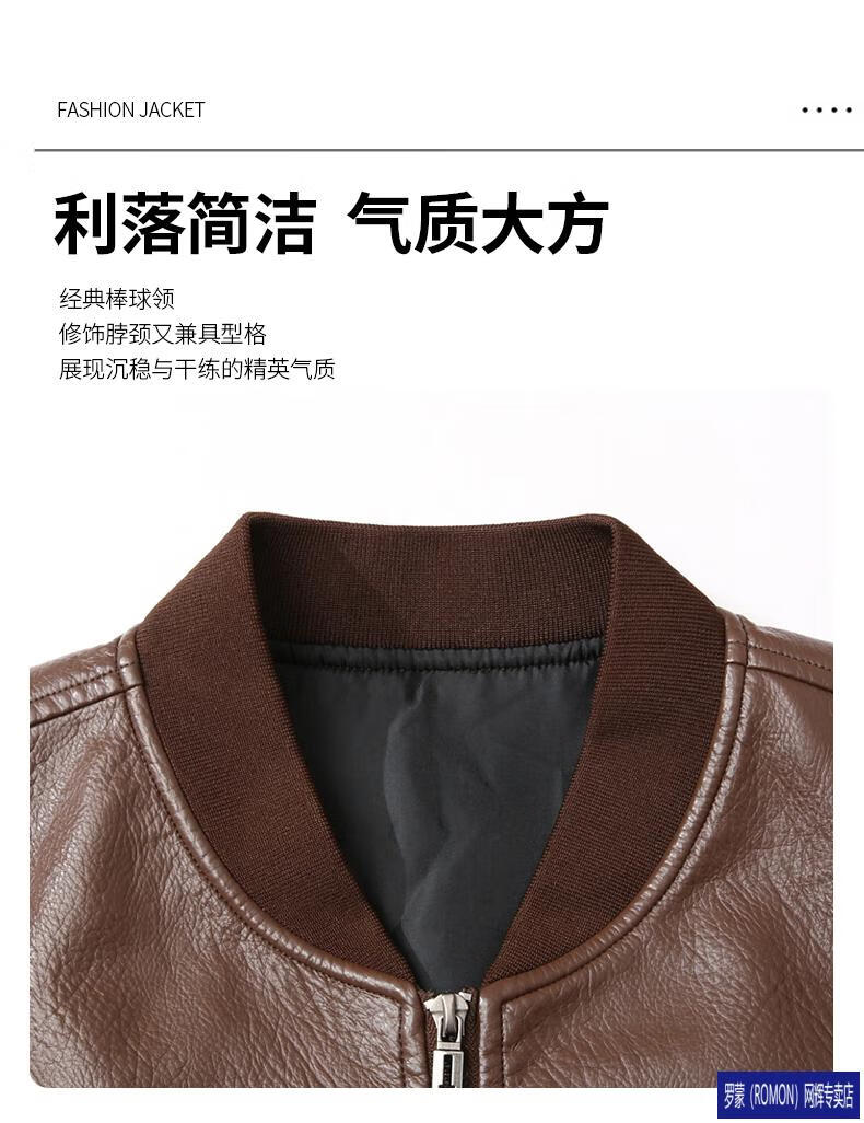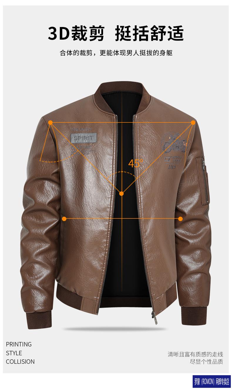 ROMON Leather Jacket Men's Baseball Collar Plus Velvet Thickening Loose Casual Trendy Handsome Leather Jacket Embroidered Motorcycle Jacket Black No Velvet 812X 6XL