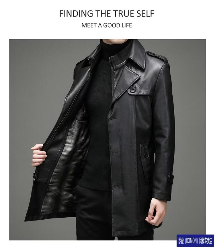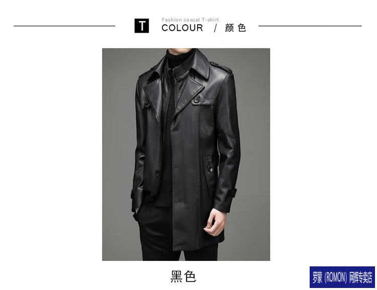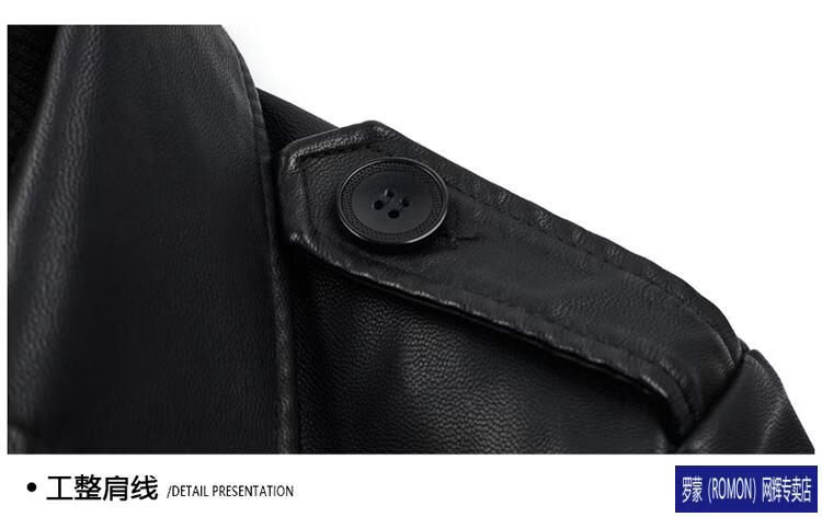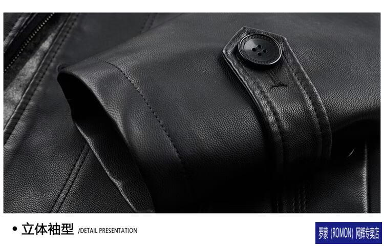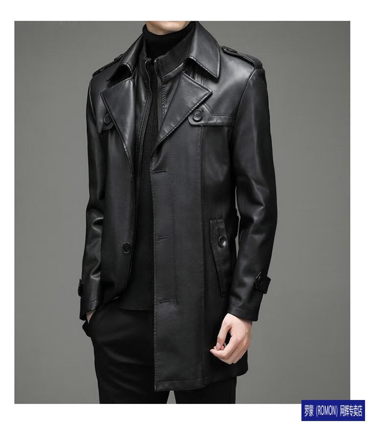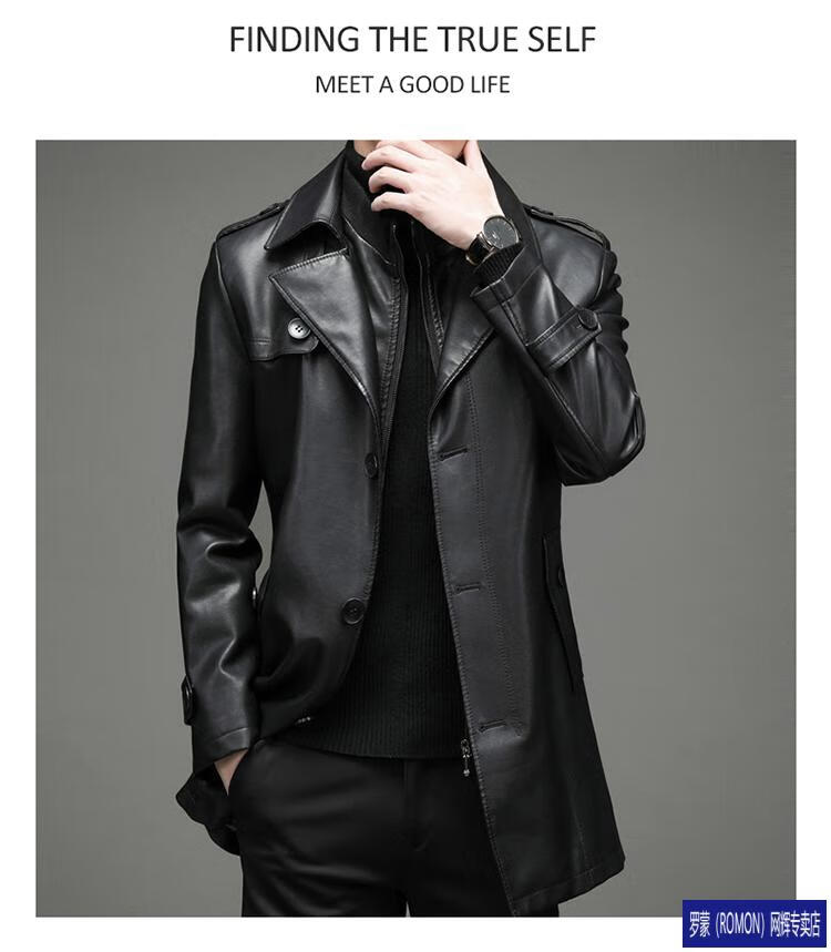 ROMON Haining Leather Men's Mid-Length Sheepskin Coat Haining Autumn and Winter New Style Suit Collar Windbreaker Leather Jacket Black Velvet 4XL 195