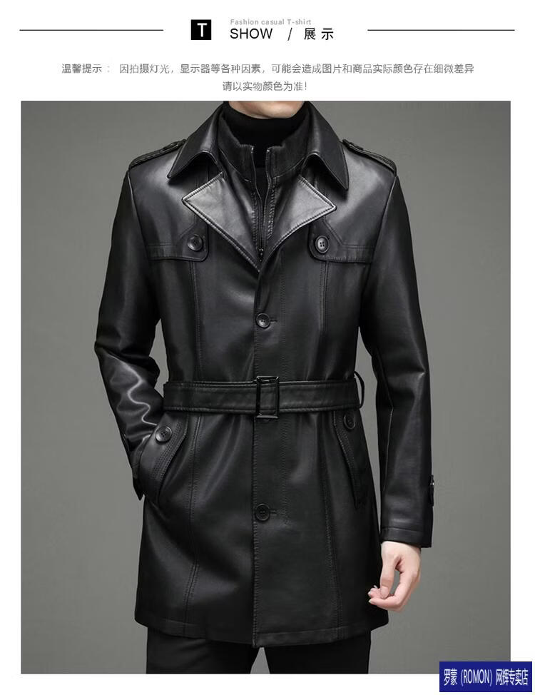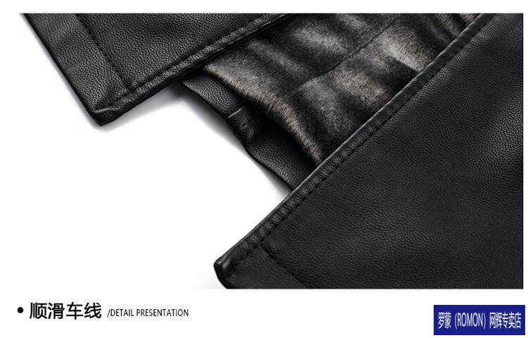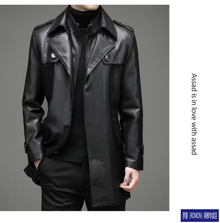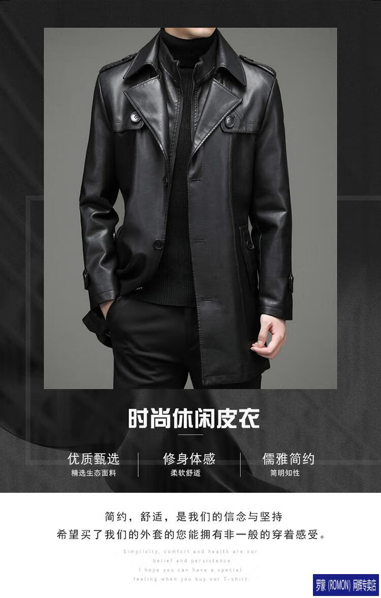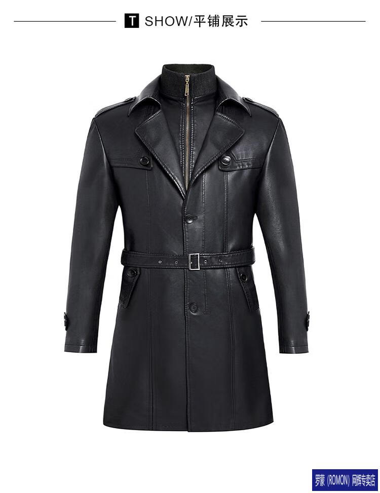 ROMON Haining Leather Men's Mid-Length Sheepskin Coat Haining Autumn and Winter New Style Suit Collar Windbreaker Leather Jacket Black Velvet 4XL 195
