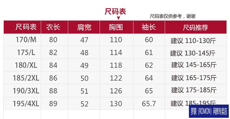 China (cm) 165 / 88-90 170 / 96-98 175 / 108-110 180 / 118-122 185 / 126-130