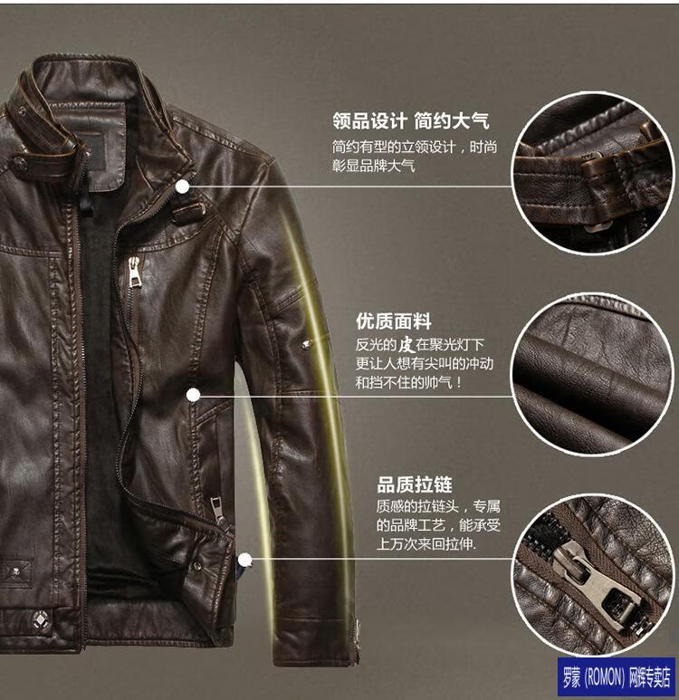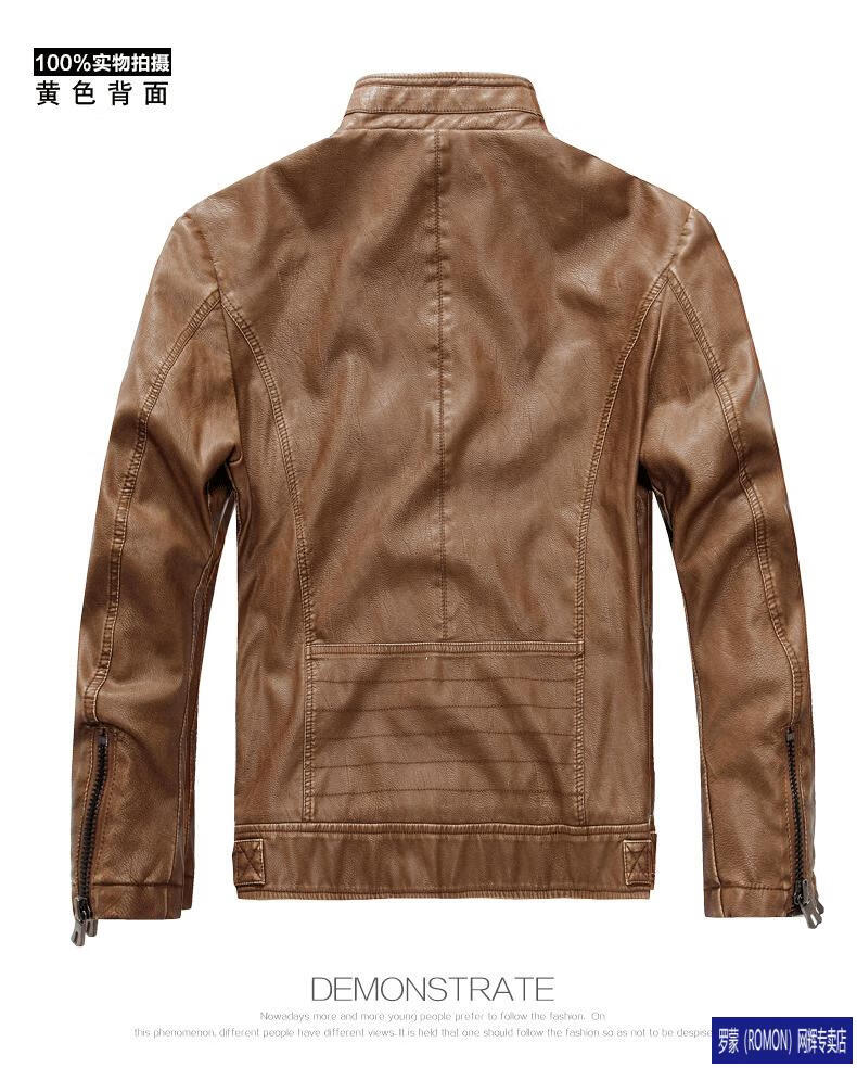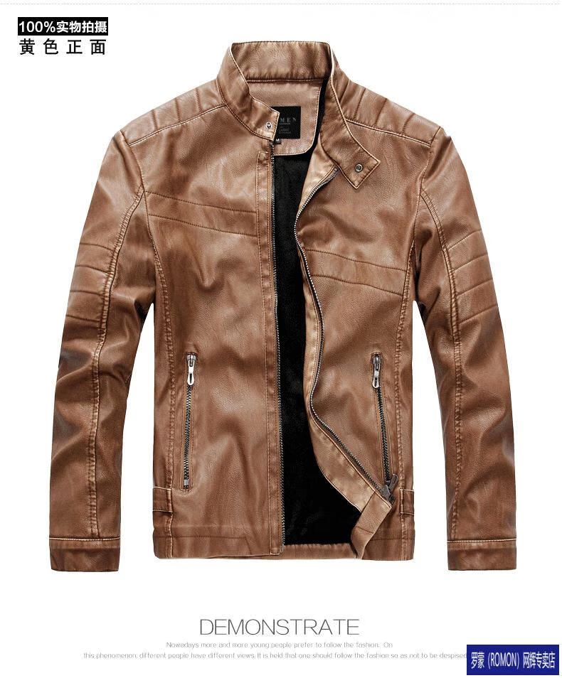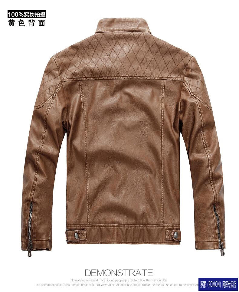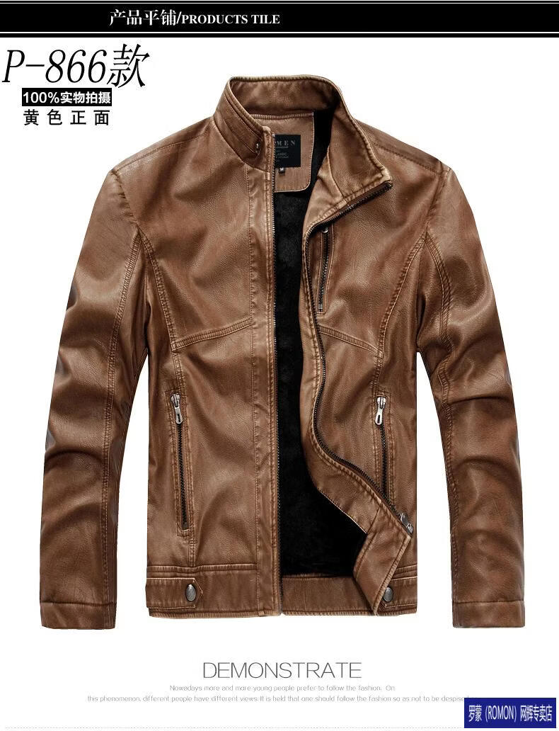 ROMON Men's Velvet Thickened Leather Jacket Trendy Korean Version 2026 Autumn and Winter New Handsome Casual Motorcycle PU Leather Jacket 805 Yellow L