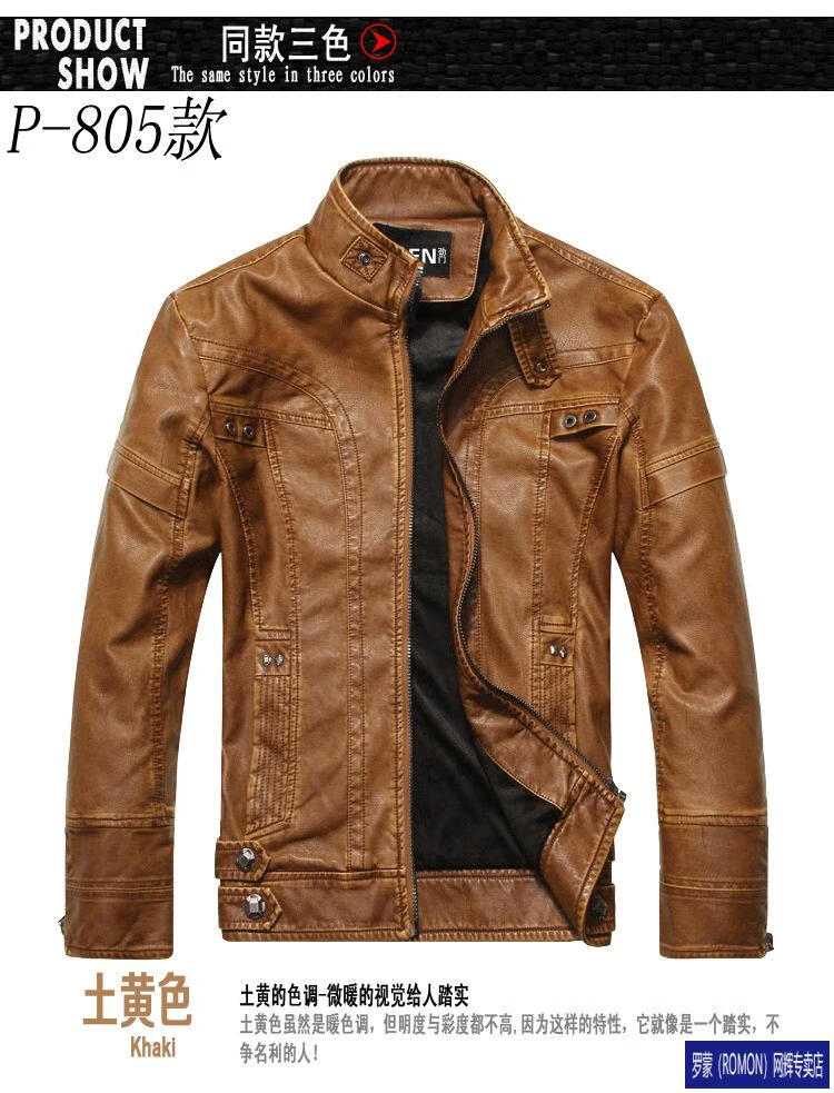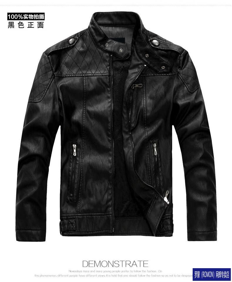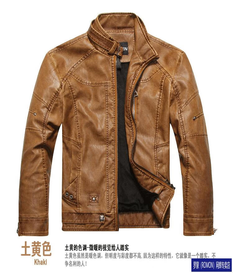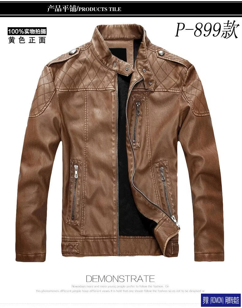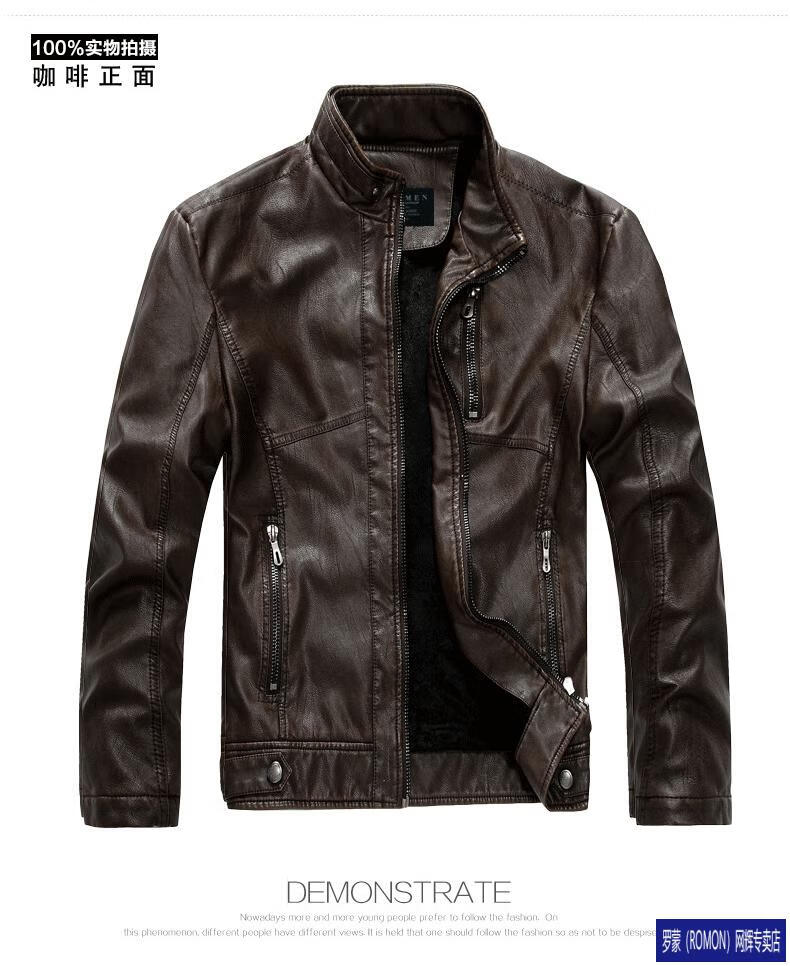 ROMON Men's Velvet Thickened Leather Jacket Trendy Korean Version 2026 Autumn and Winter New Handsome Casual Motorcycle PU Leather Jacket 805 Yellow L