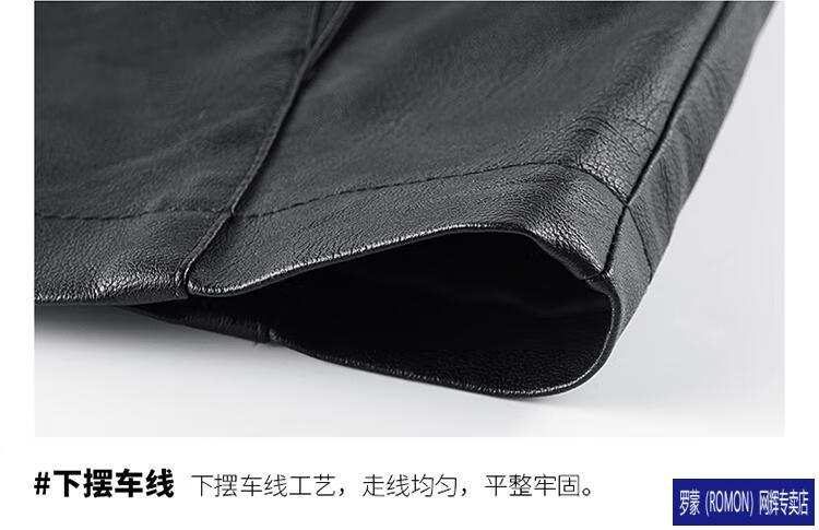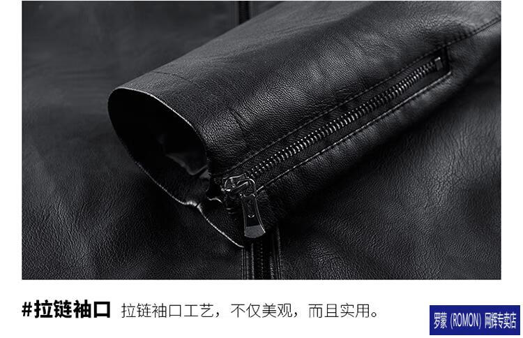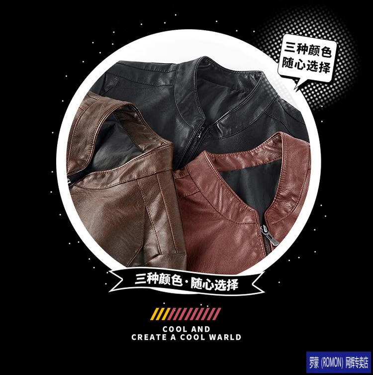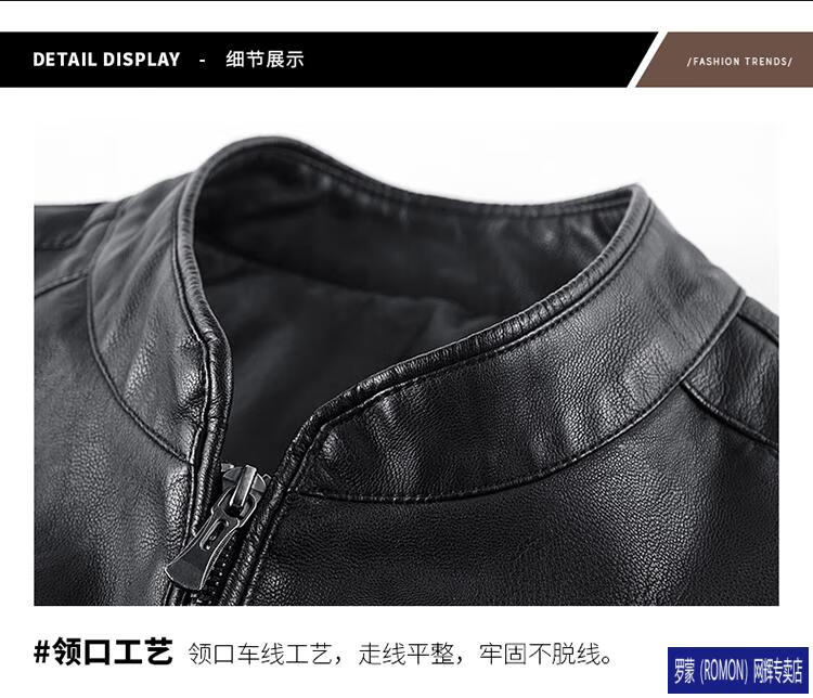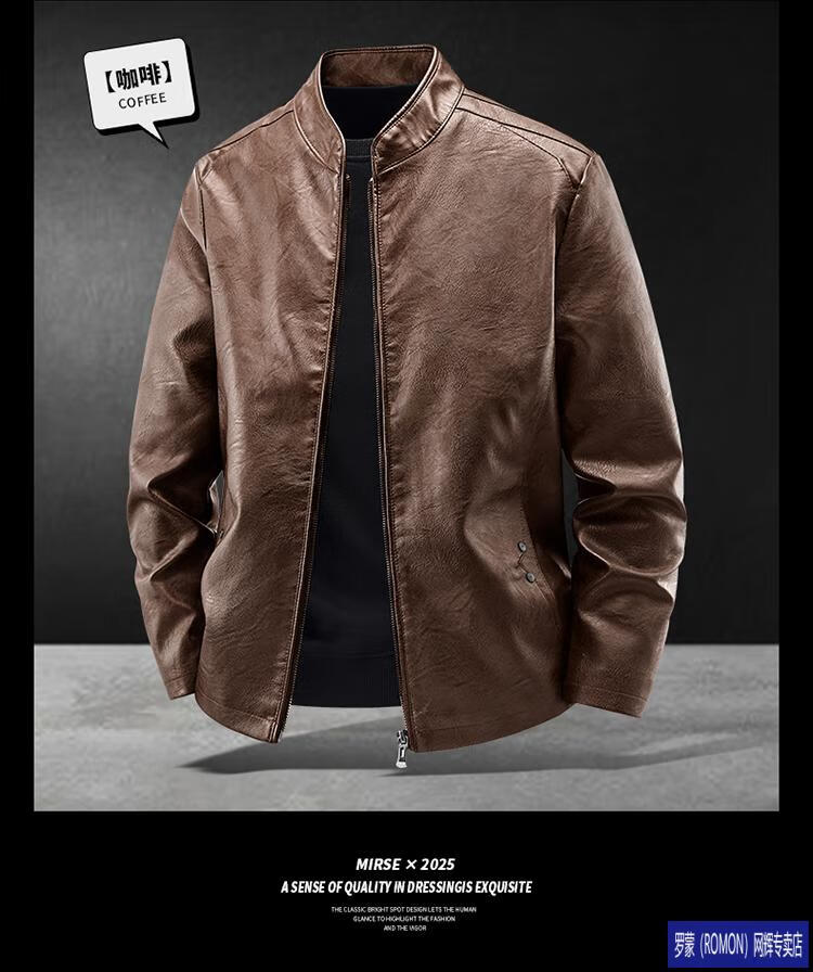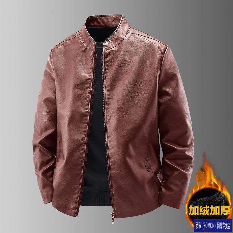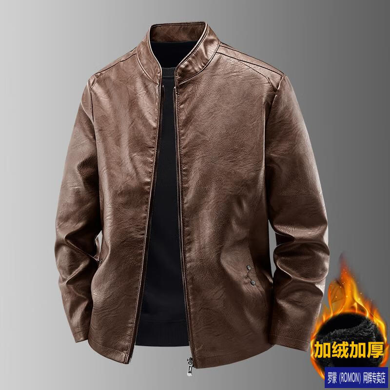 ROMON Haining imitation leather jacket men's stand-up collar plus velvet thickening slim casual trendy handsome leather jacket motorcycle jacket brown without velvet 923KX XL