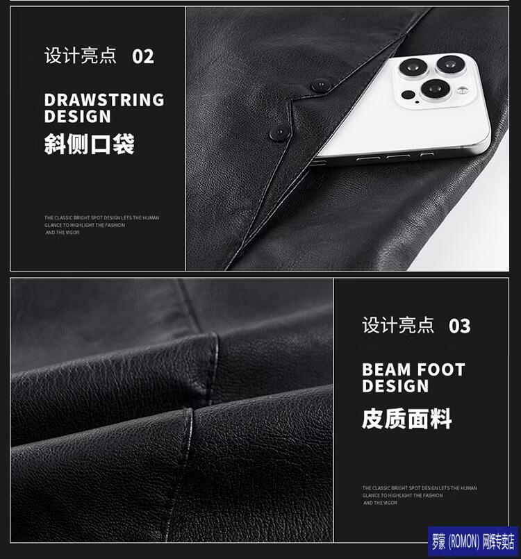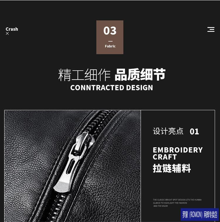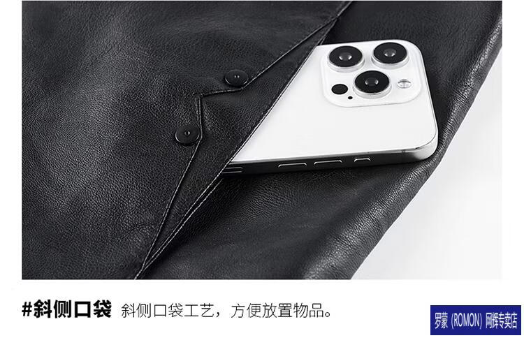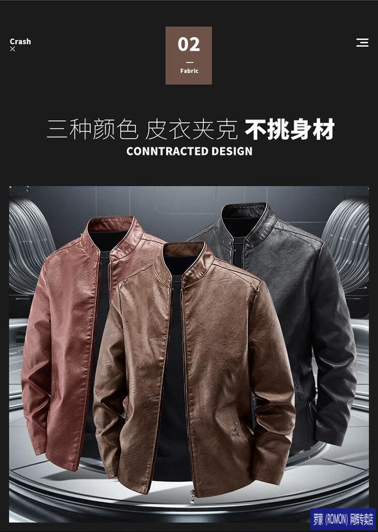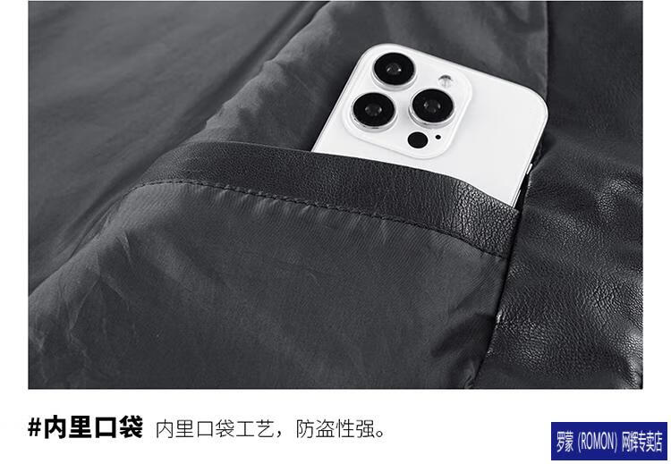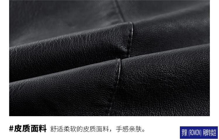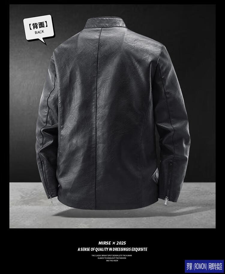 ROMON Haining imitation leather jacket men's stand-up collar plus velvet thickening slim casual trendy handsome leather jacket motorcycle jacket brown without velvet 923KX XL