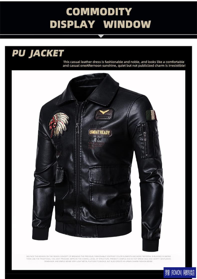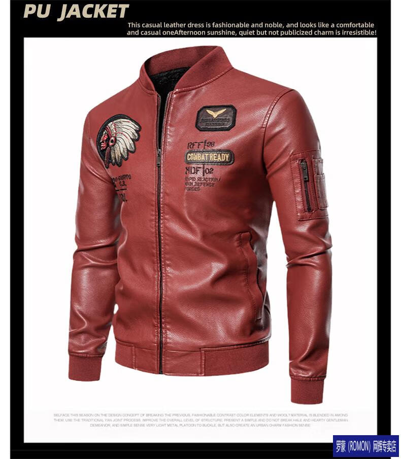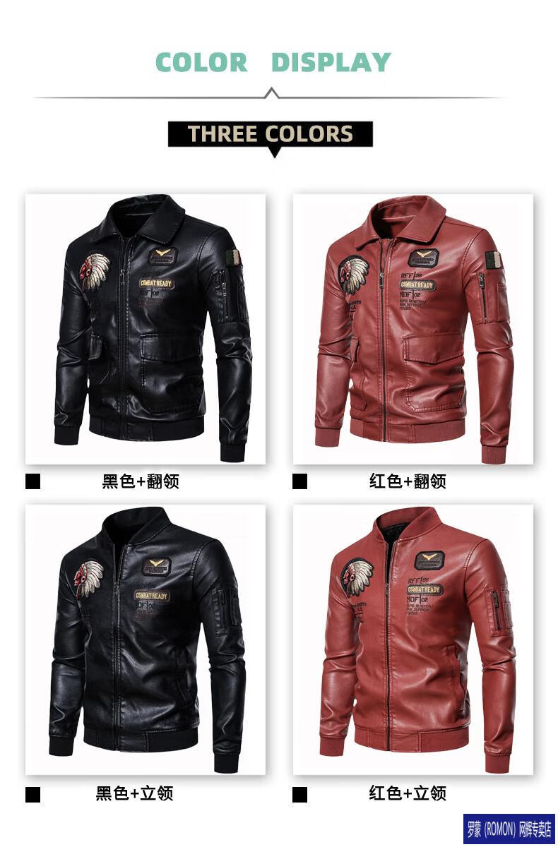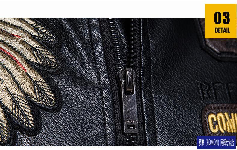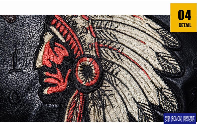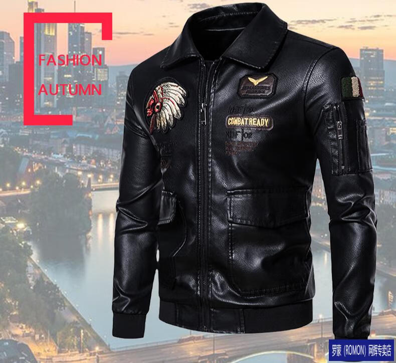 ROMON winter embroidered leather jacket men's winter clothing American handsome men's leather jacket motorcycle jacket plus velvet thickening autumn and winter black + baseball collar + no velvet L recommended 110-125 Jin Jin equals 0.5 kg