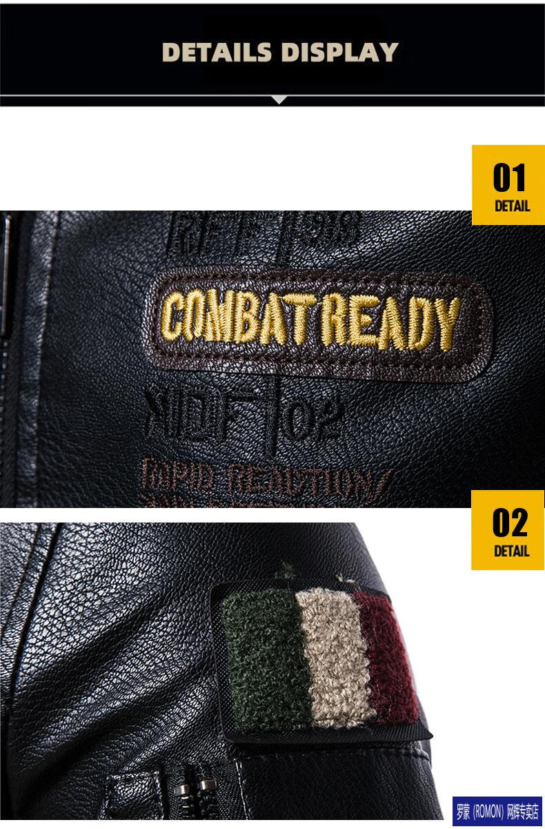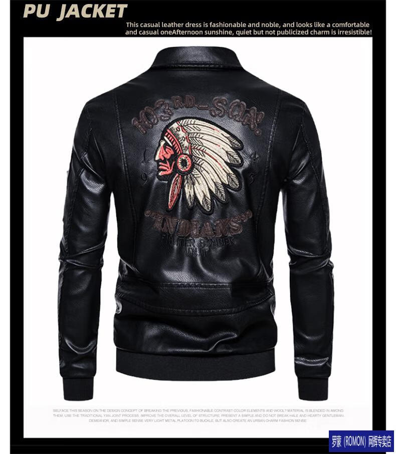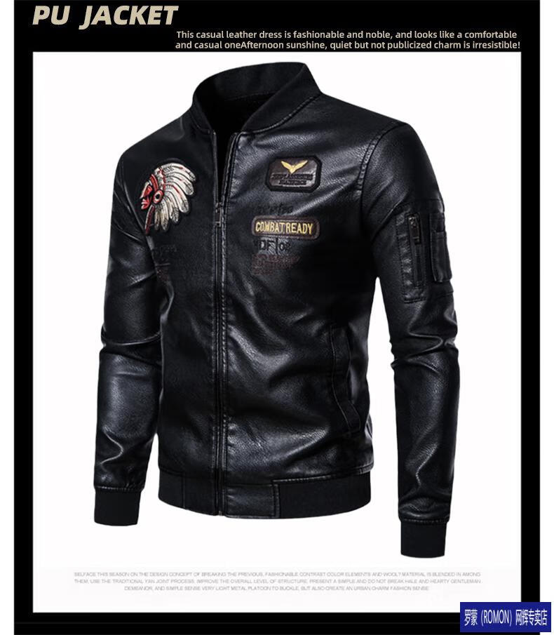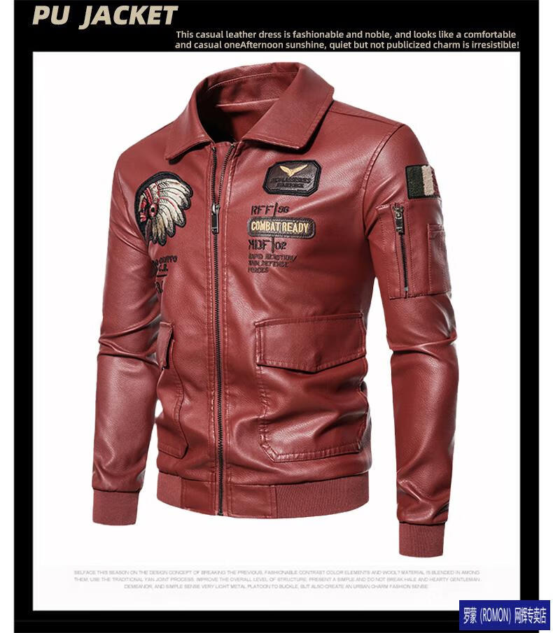 ROMON winter embroidered leather jacket men's winter clothing American handsome men's leather jacket motorcycle jacket plus velvet thickening autumn and winter black + baseball collar + no velvet L recommended 110-125 Jin Jin equals 0.5 kg