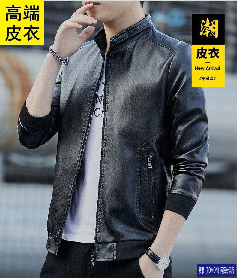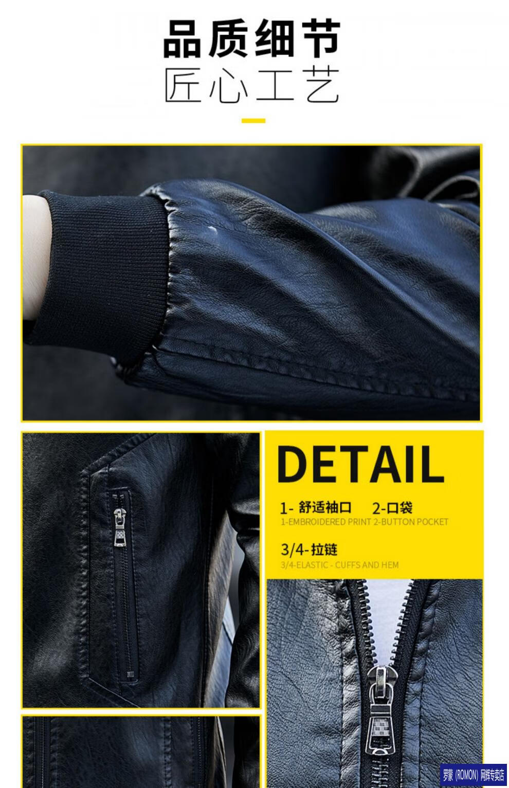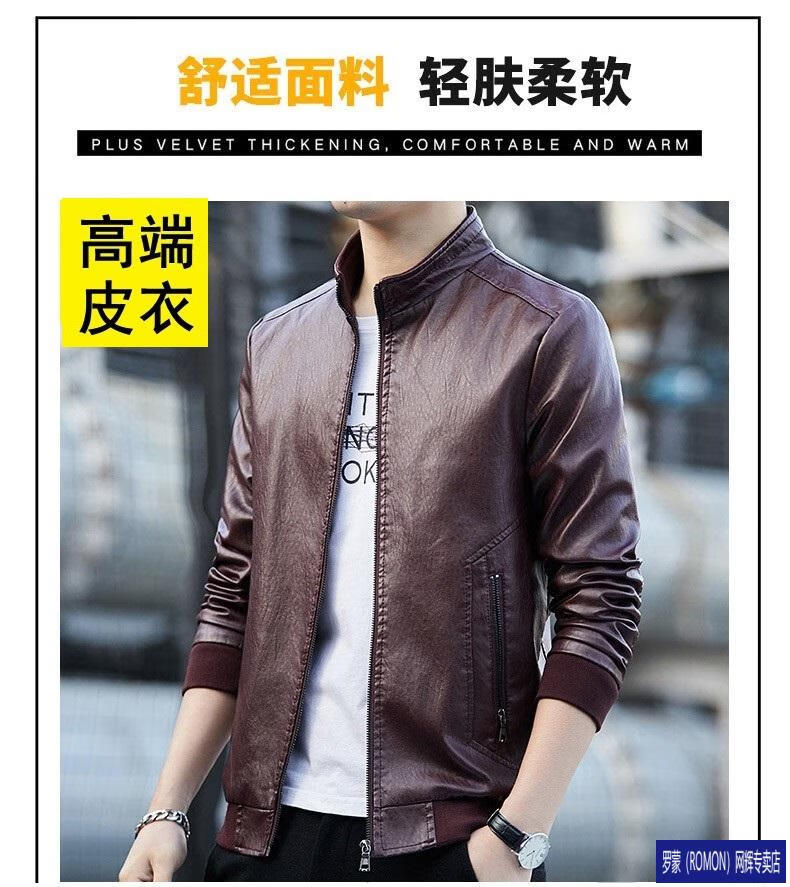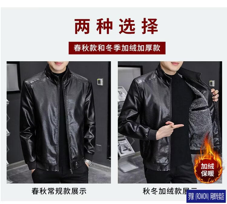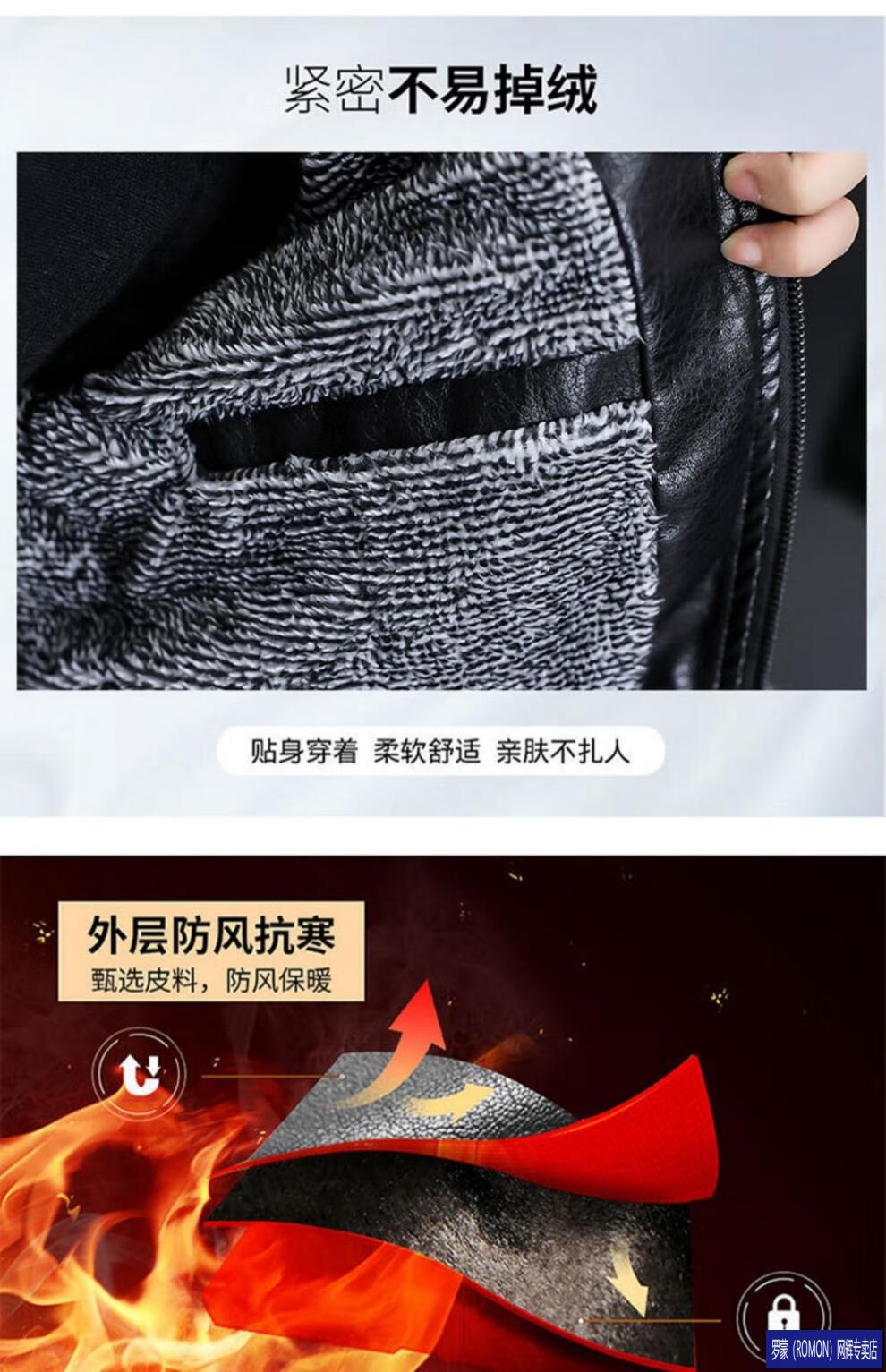 ROMON Leather Men's Jacket 2026 Autumn and Winter Korean Style Winter Clothes Velvet Thickened Soft Leather Jacket Motorcycle Trend 926 Black Regular M 90-108Jin Jin is equal to 0.5 kg