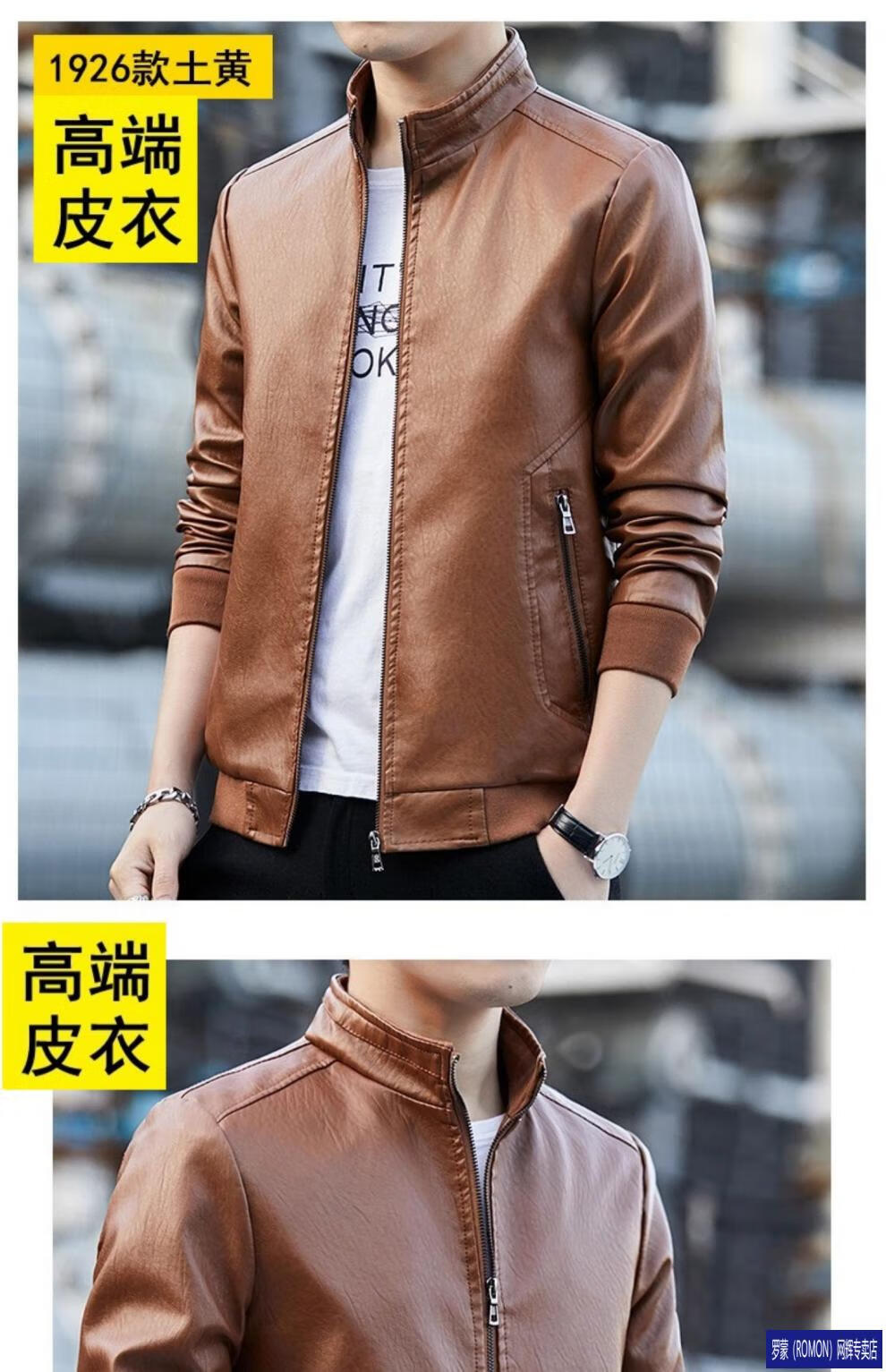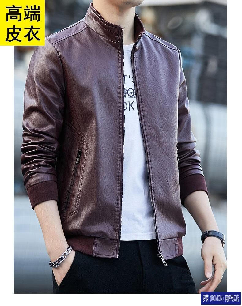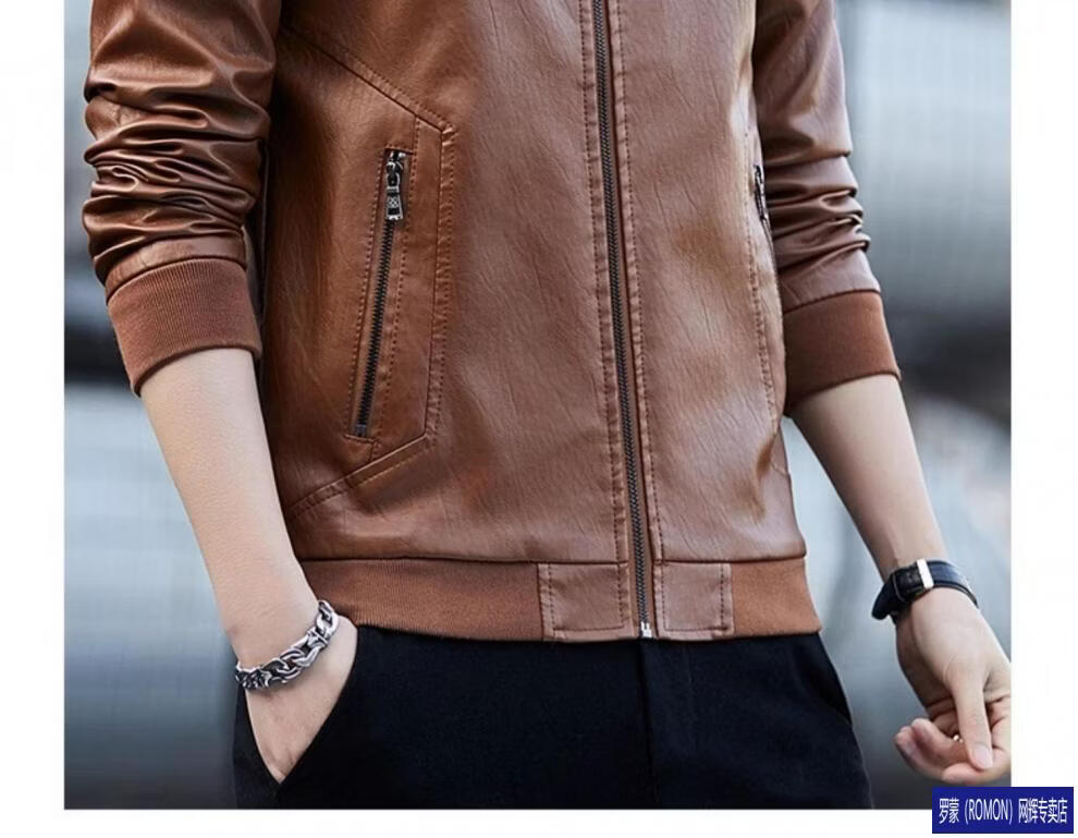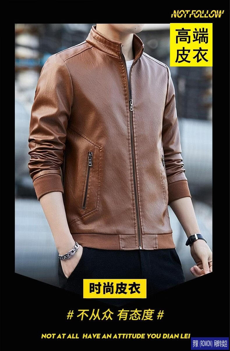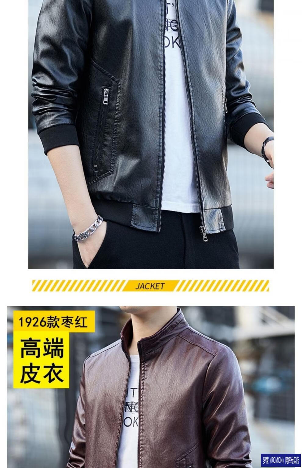 ROMON Leather Men's Jacket 2026 Autumn and Winter Korean Style Winter Clothes Velvet Thickened Soft Leather Jacket Motorcycle Trend 926 Black Regular M 90-108Jin Jin is equal to 0.5 kg