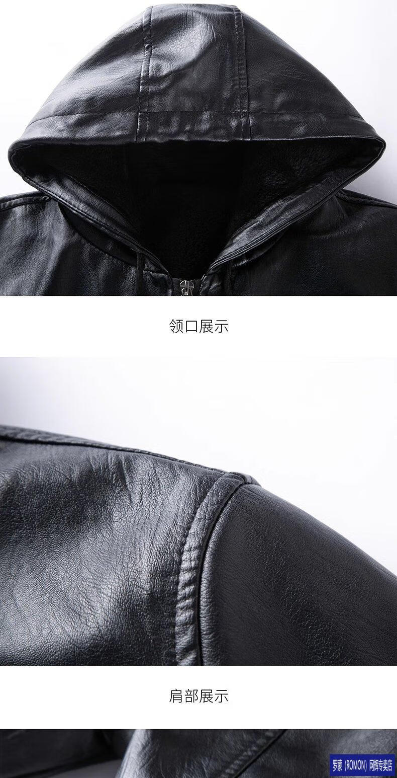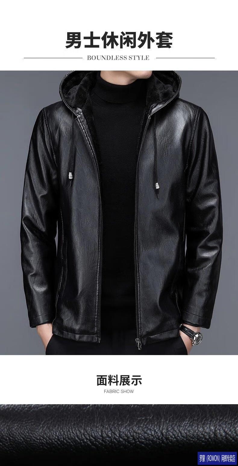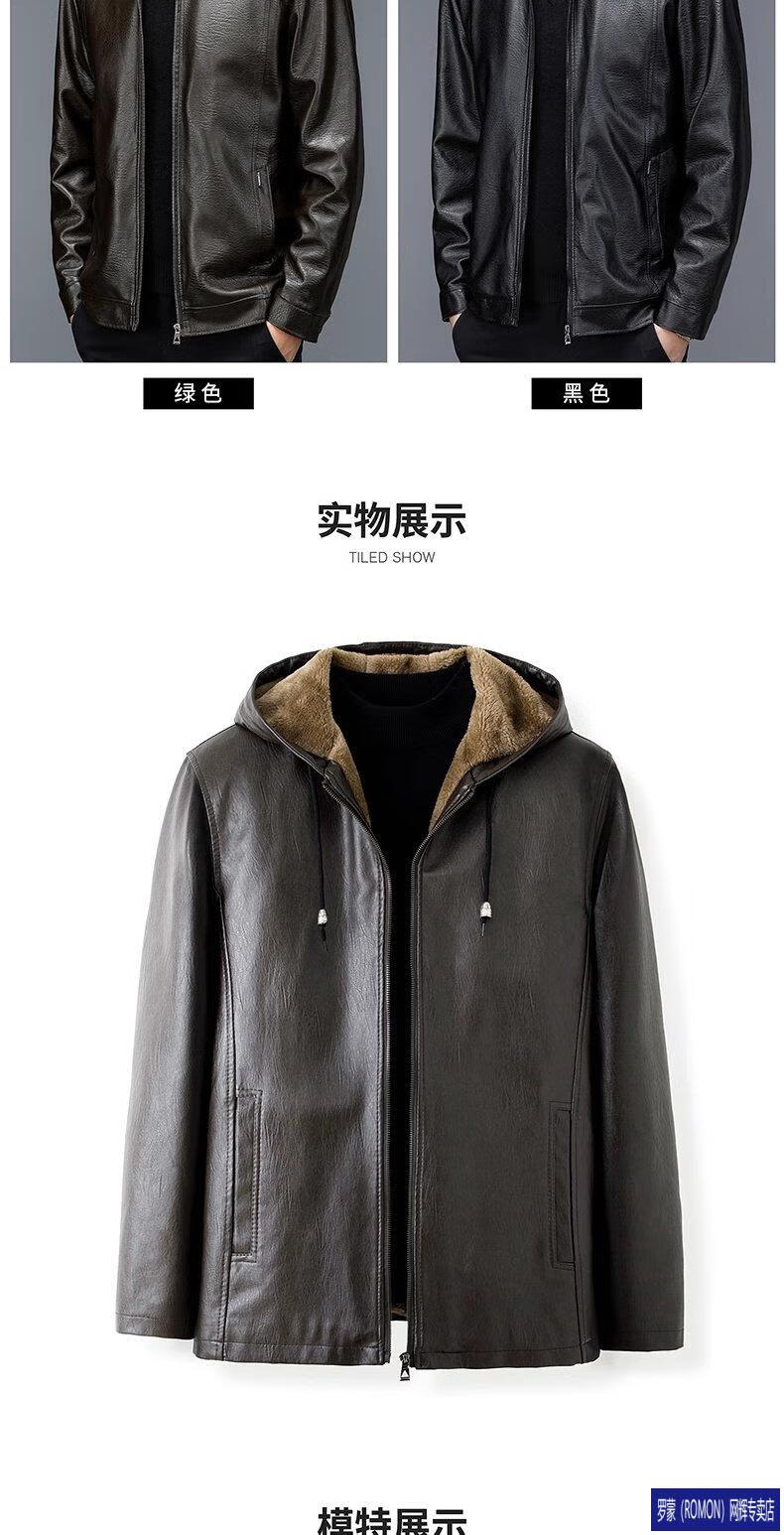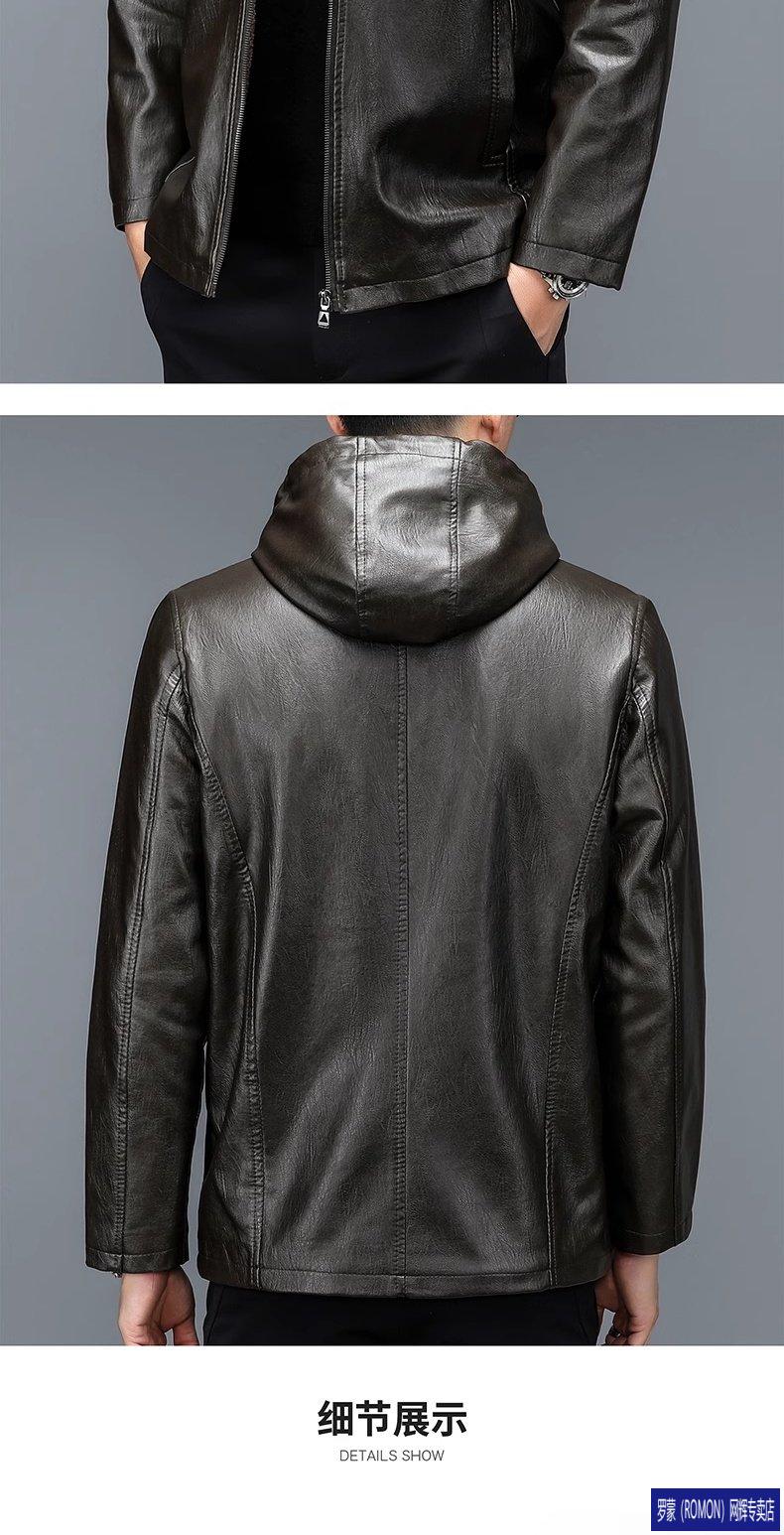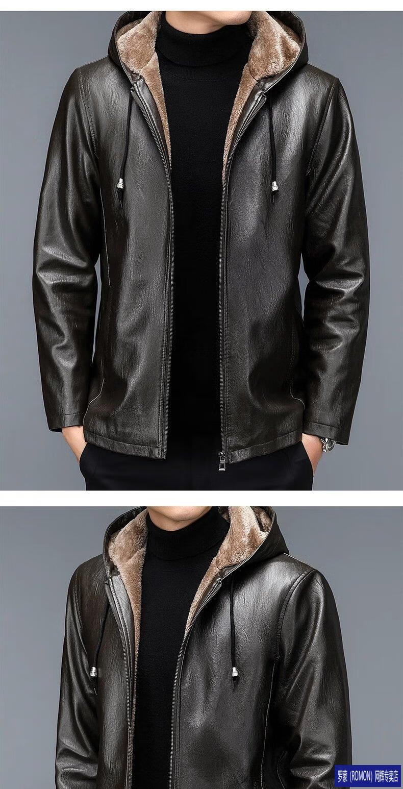 ROMON autumn and winter middle-aged and elderly leather jacket hooded men's leather jacket large size loose casual dad wear velvet thickened jacket 105 coffee color 4XL 190 190-220Jin Jin is equal to 0.5 kg