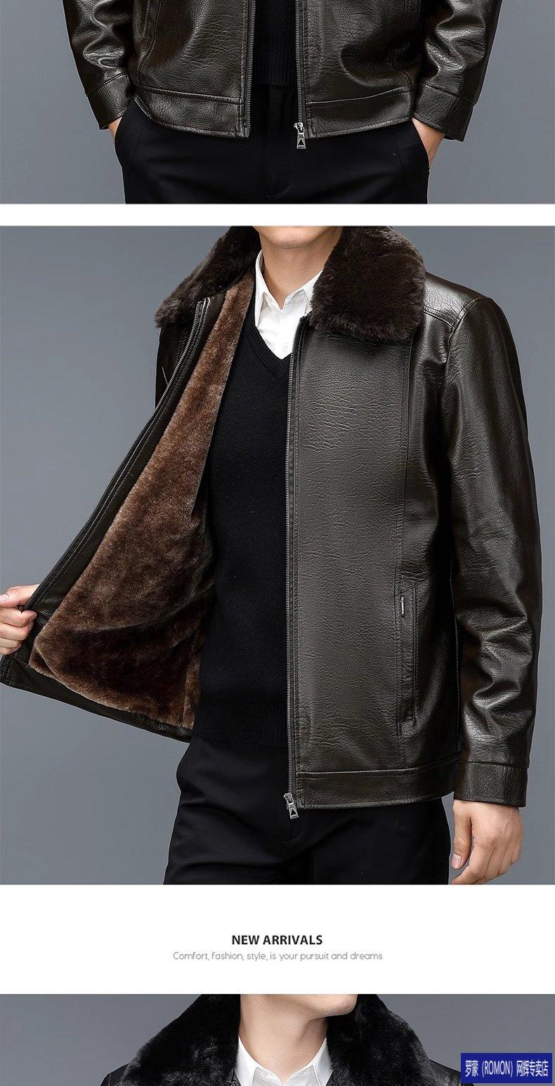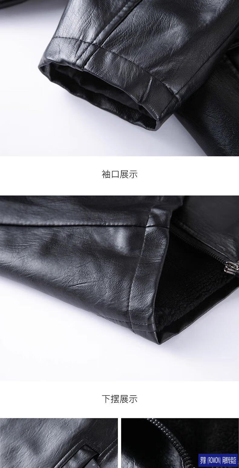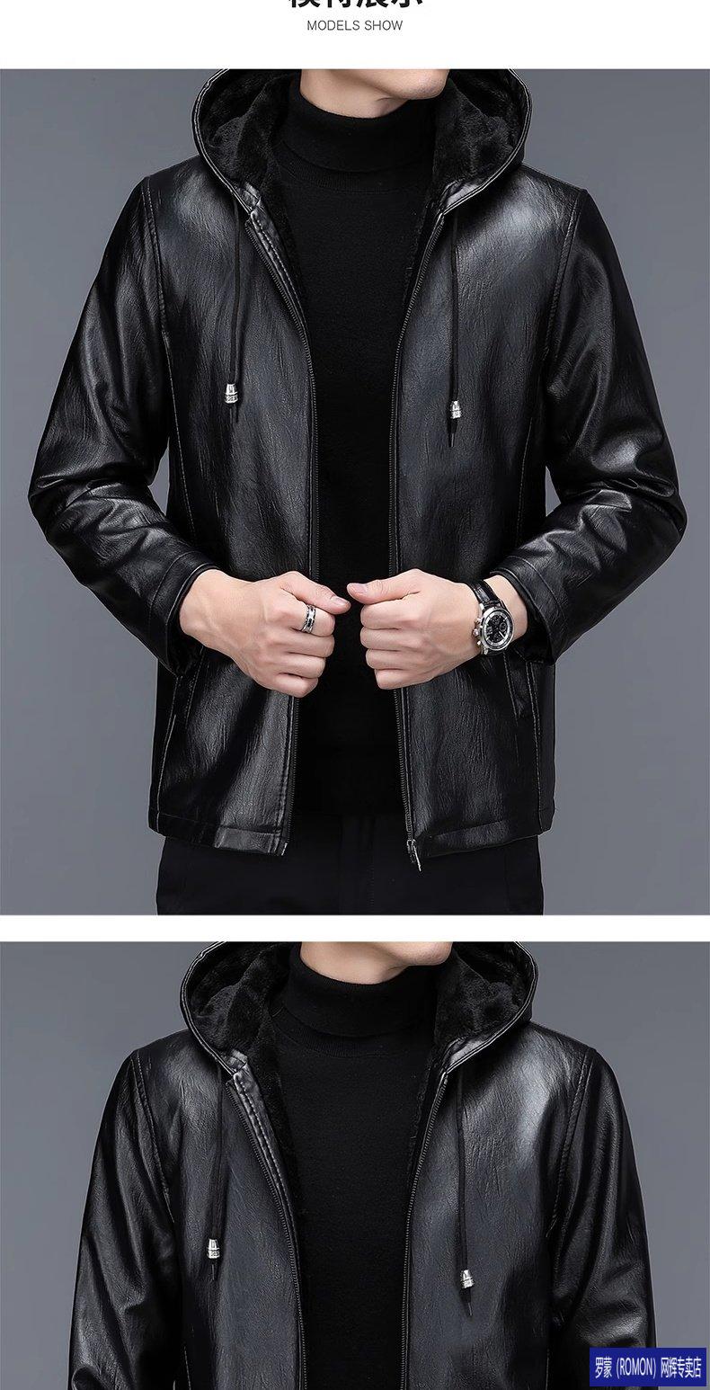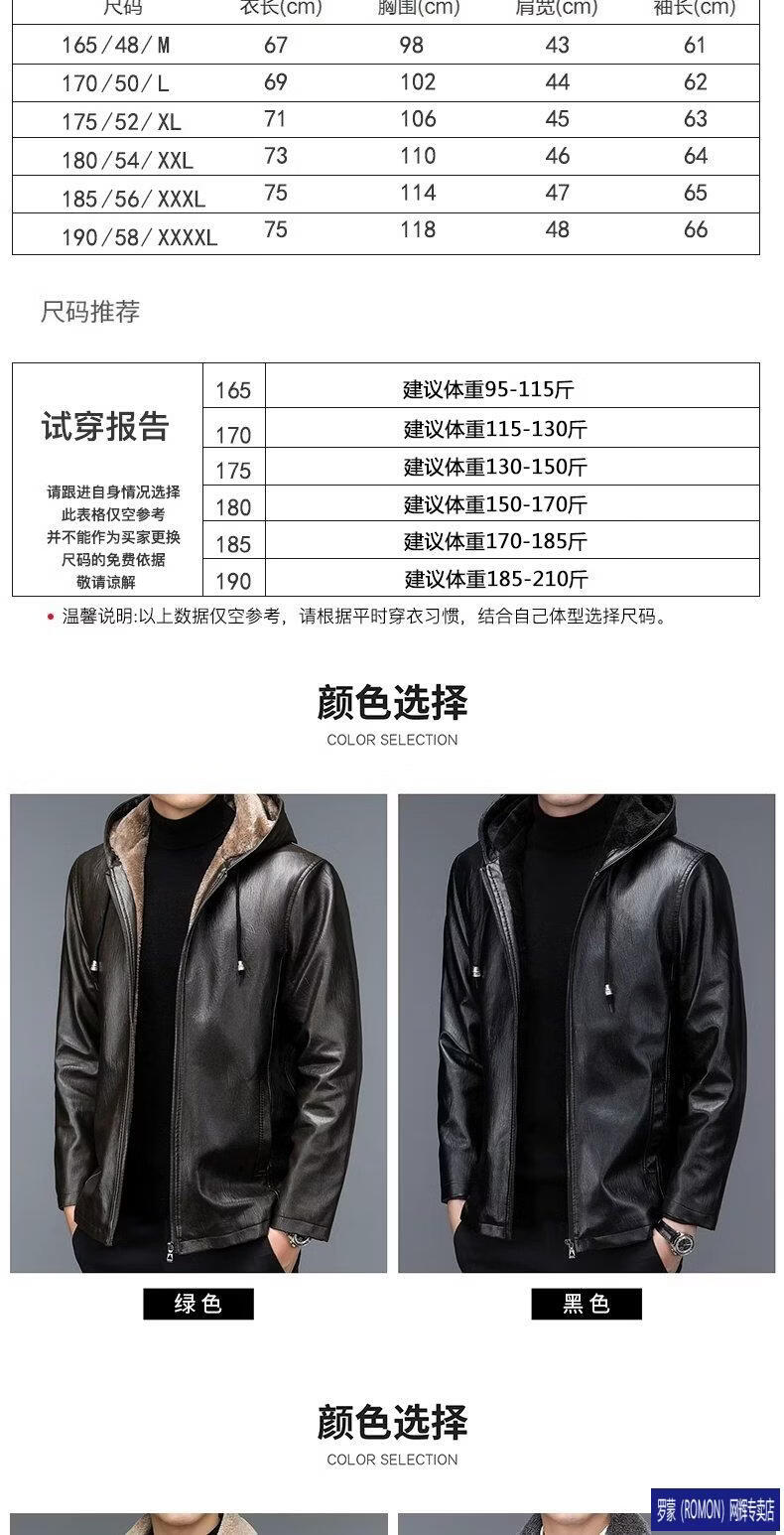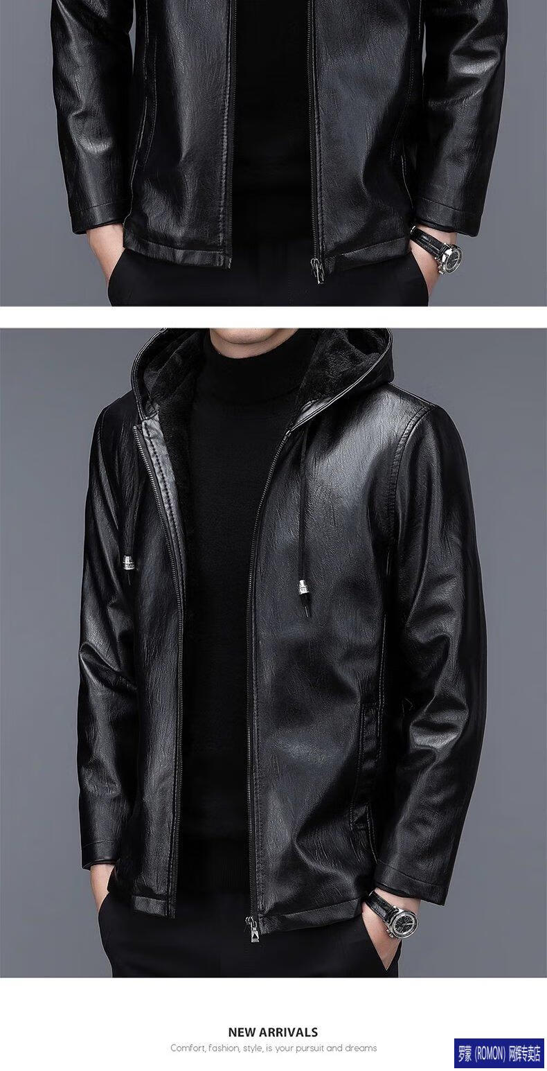 ROMON autumn and winter middle-aged and elderly leather jacket hooded men's leather jacket large size loose casual dad wear velvet thickened jacket 105 coffee color 4XL 190 190-220Jin Jin is equal to 0.5 kg