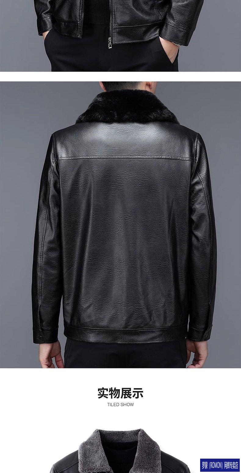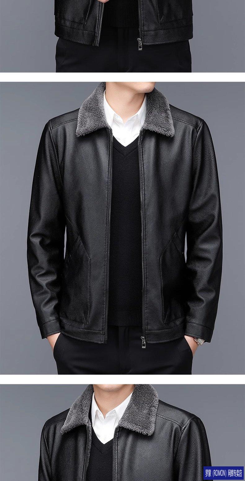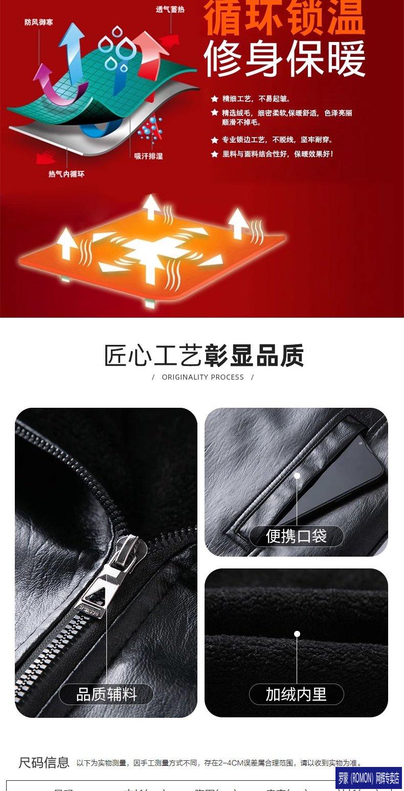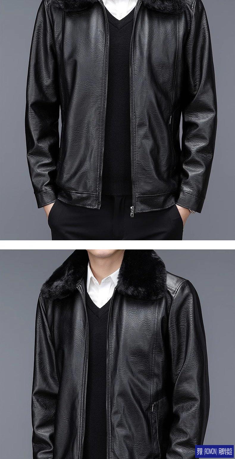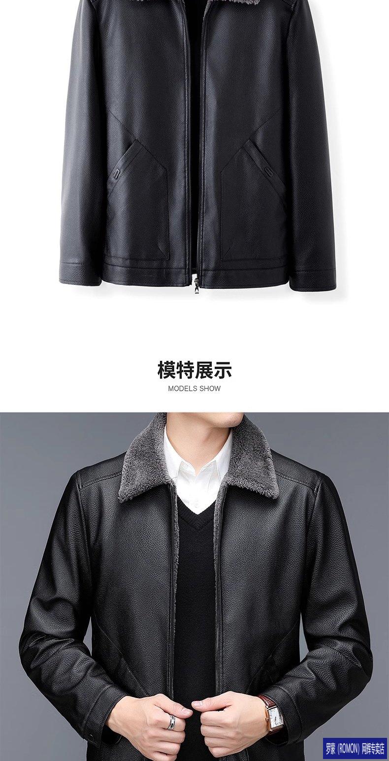 ROMON autumn and winter middle-aged and elderly leather jacket hooded men's leather jacket large size loose casual dad wear velvet thickened jacket 105 coffee color 4XL 190 190-220Jin Jin is equal to 0.5 kg