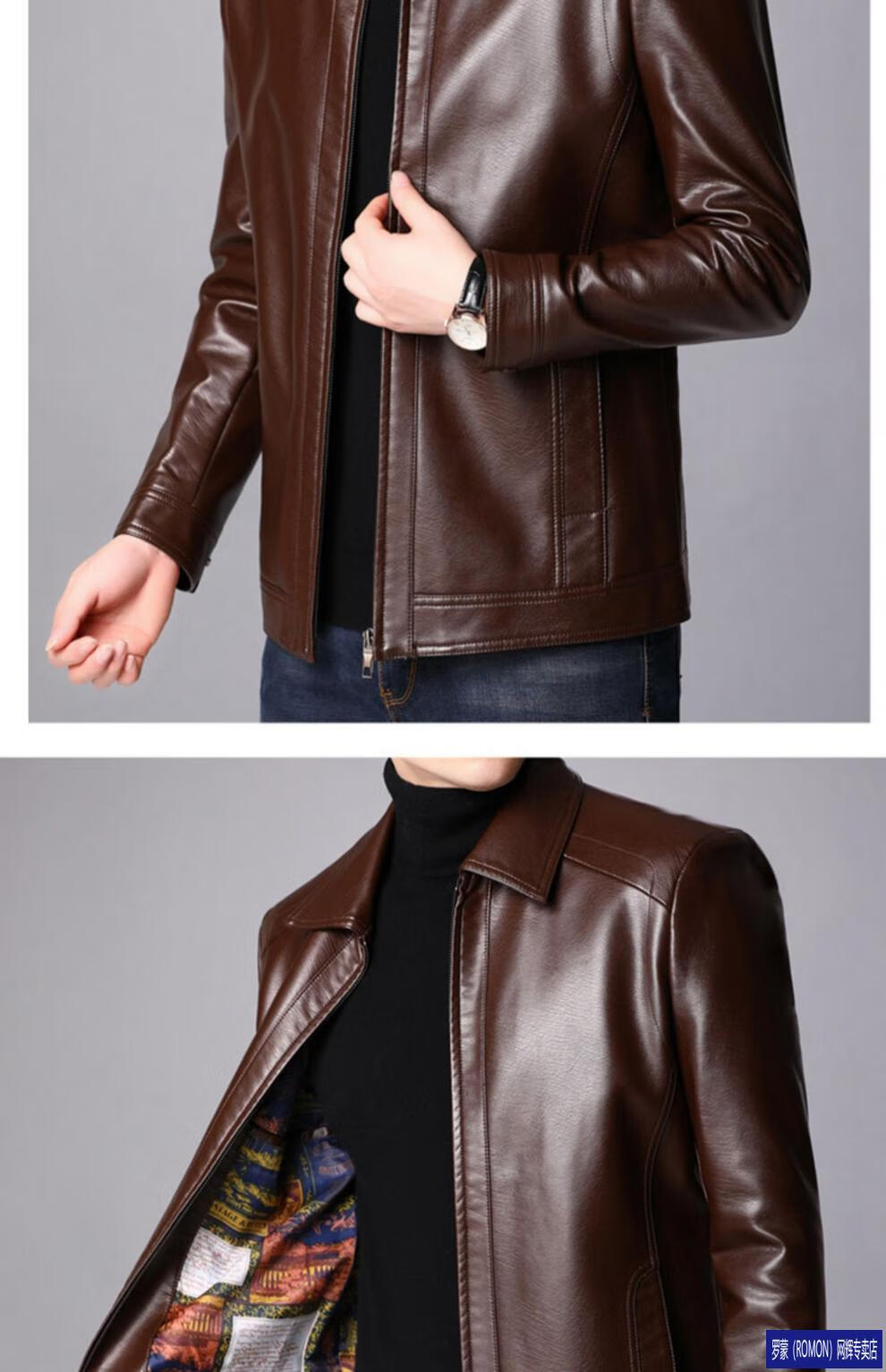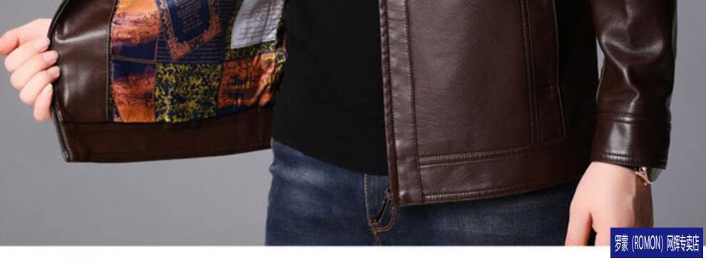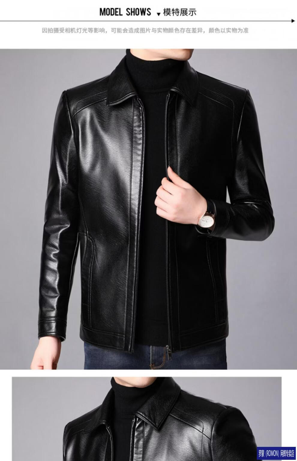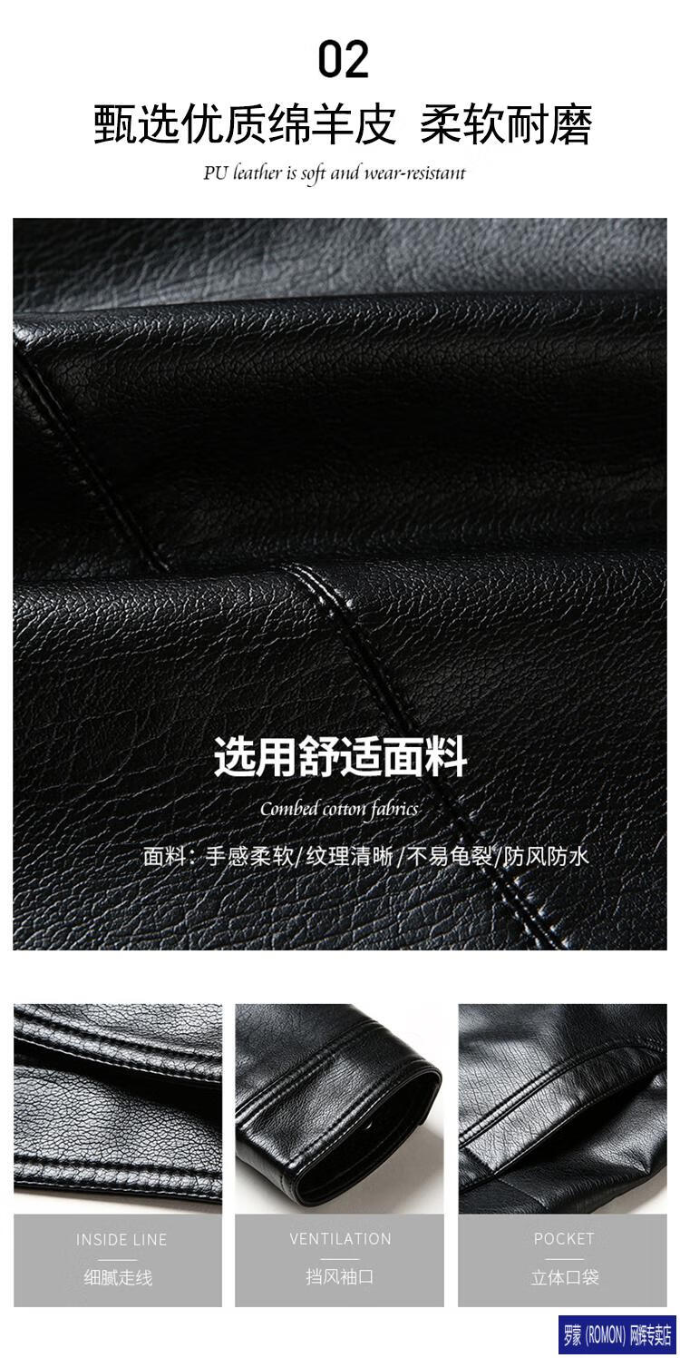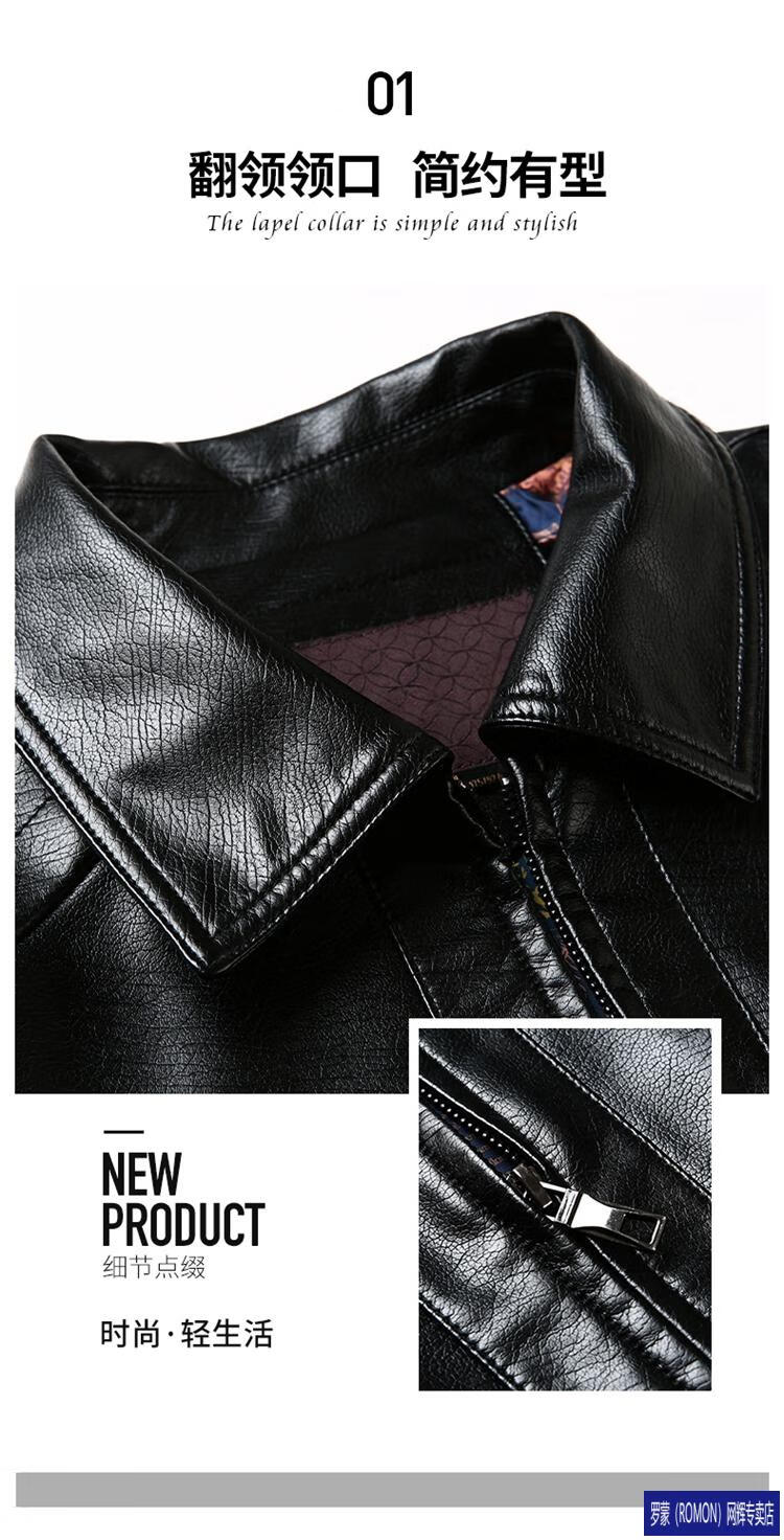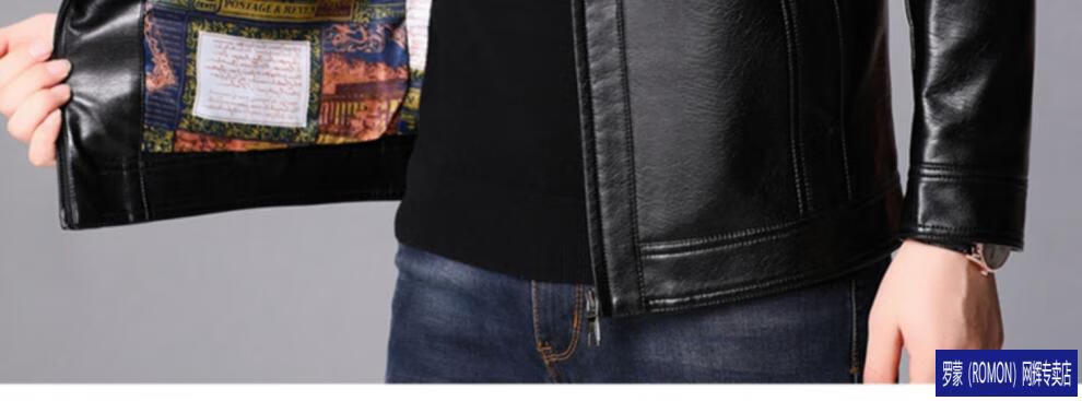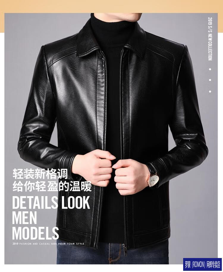 ROMON autumn and winter Haining leather jacket men's loose lapel plus velvet thickened sheepskin leather jacket men's leather jacket dad wear lapel black 3XL 190 180-200Jin Jin equals 0.5 kg