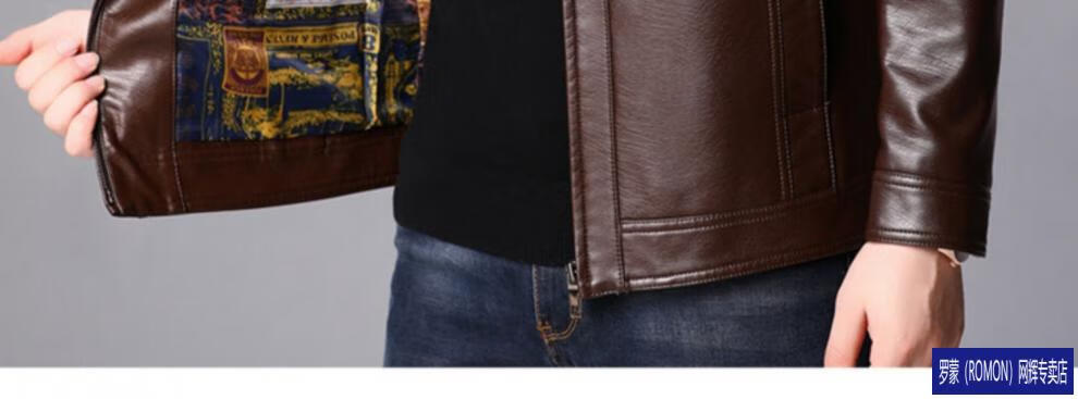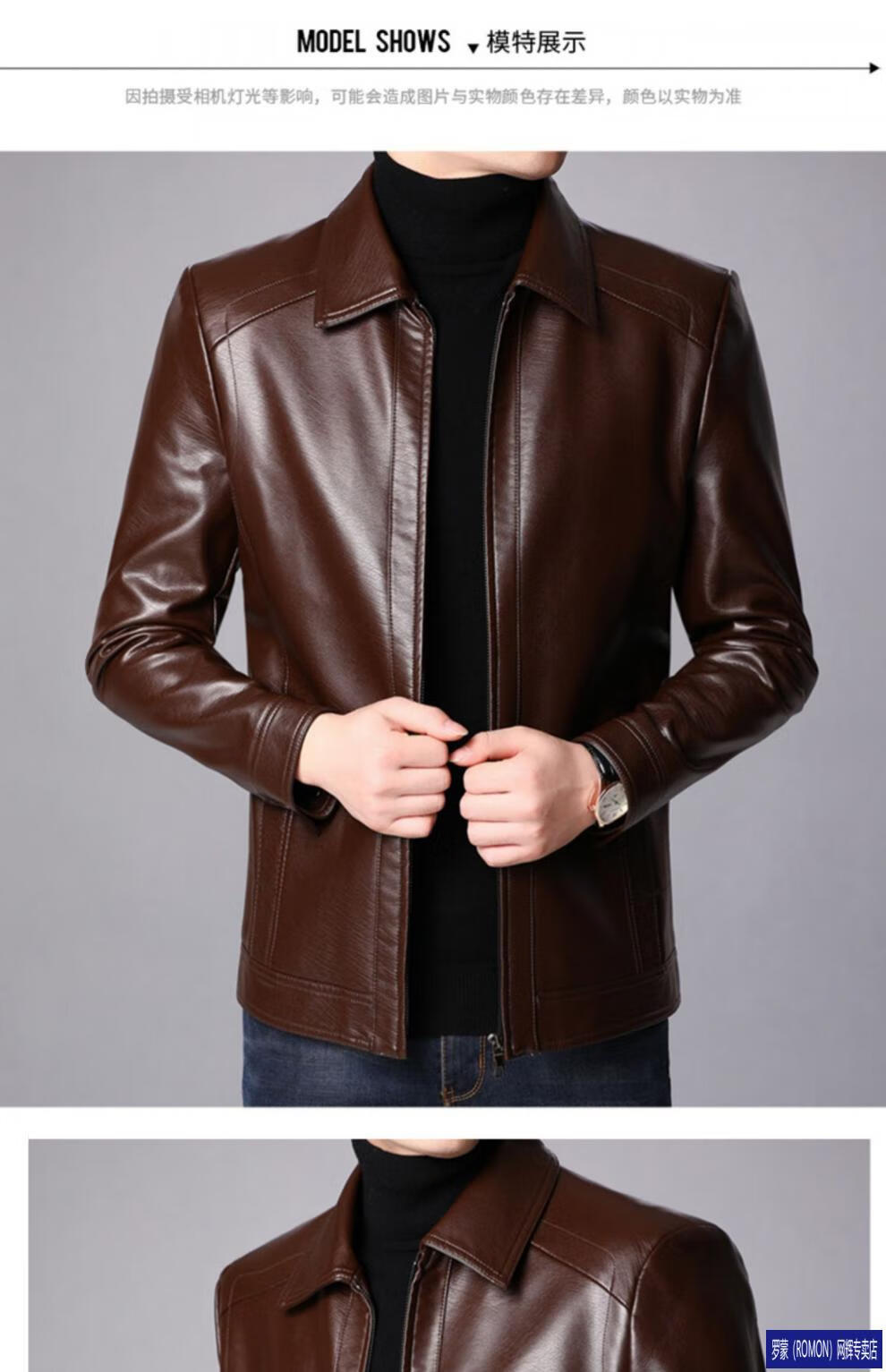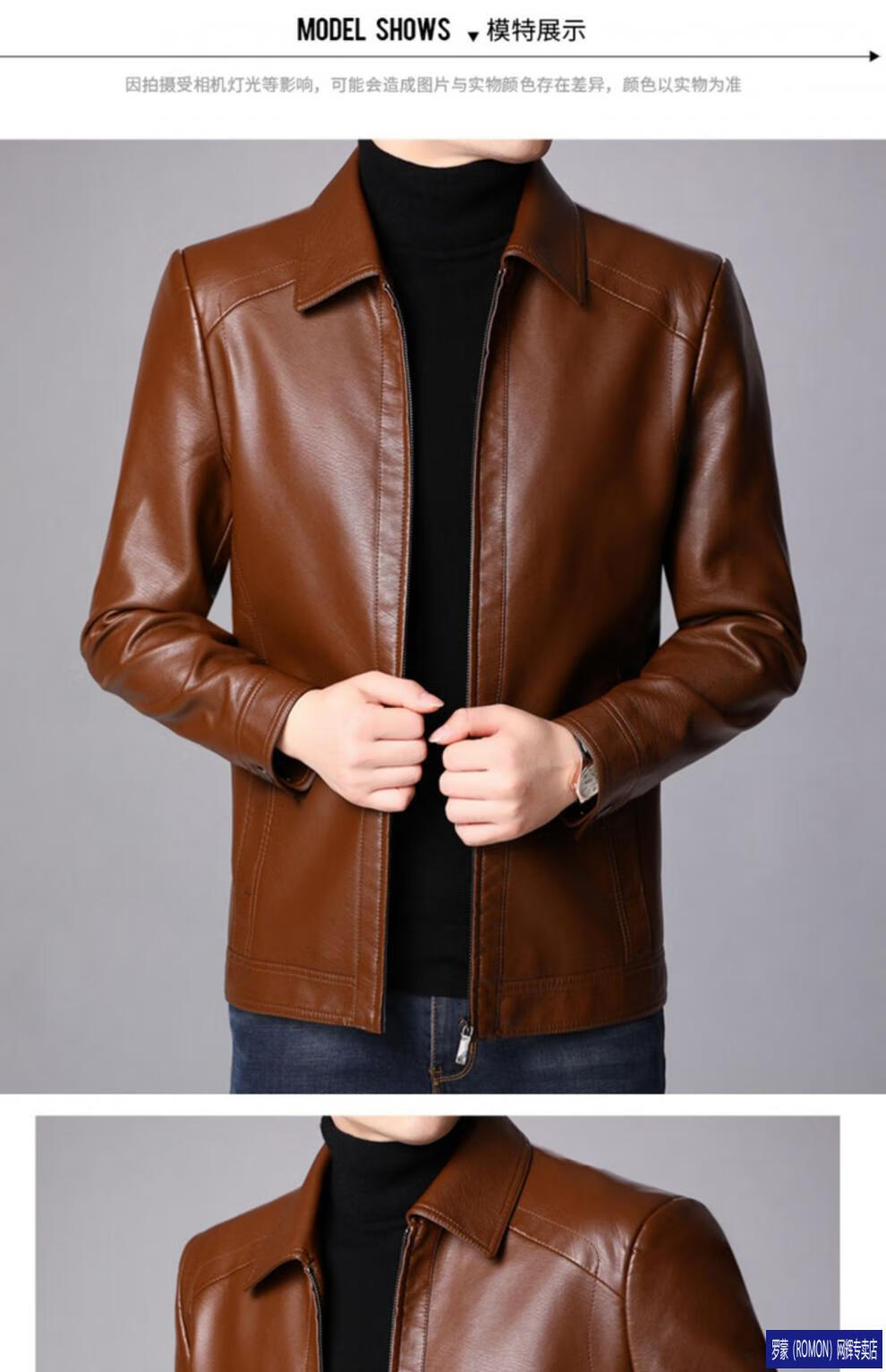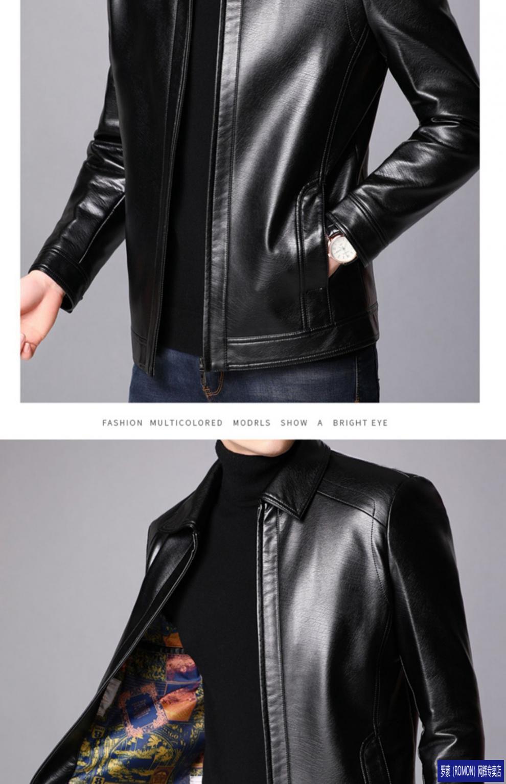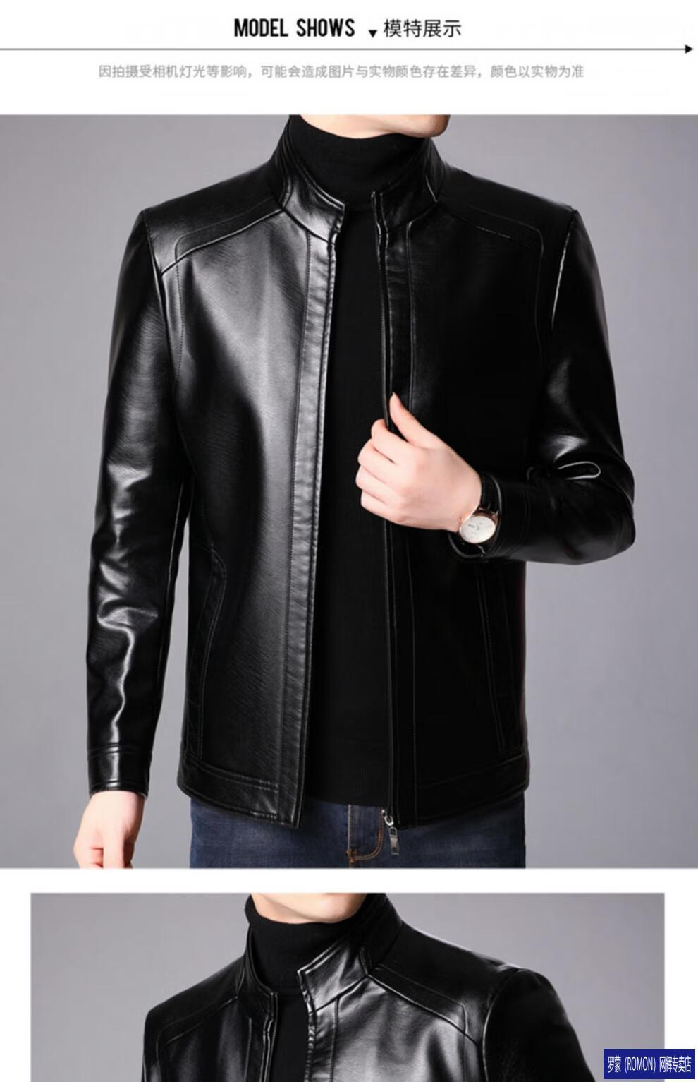 ROMON autumn and winter Haining leather jacket men's loose lapel plus velvet thickened sheepskin leather jacket men's leather jacket dad wear lapel black 3XL 190 180-200Jin Jin equals 0.5 kg