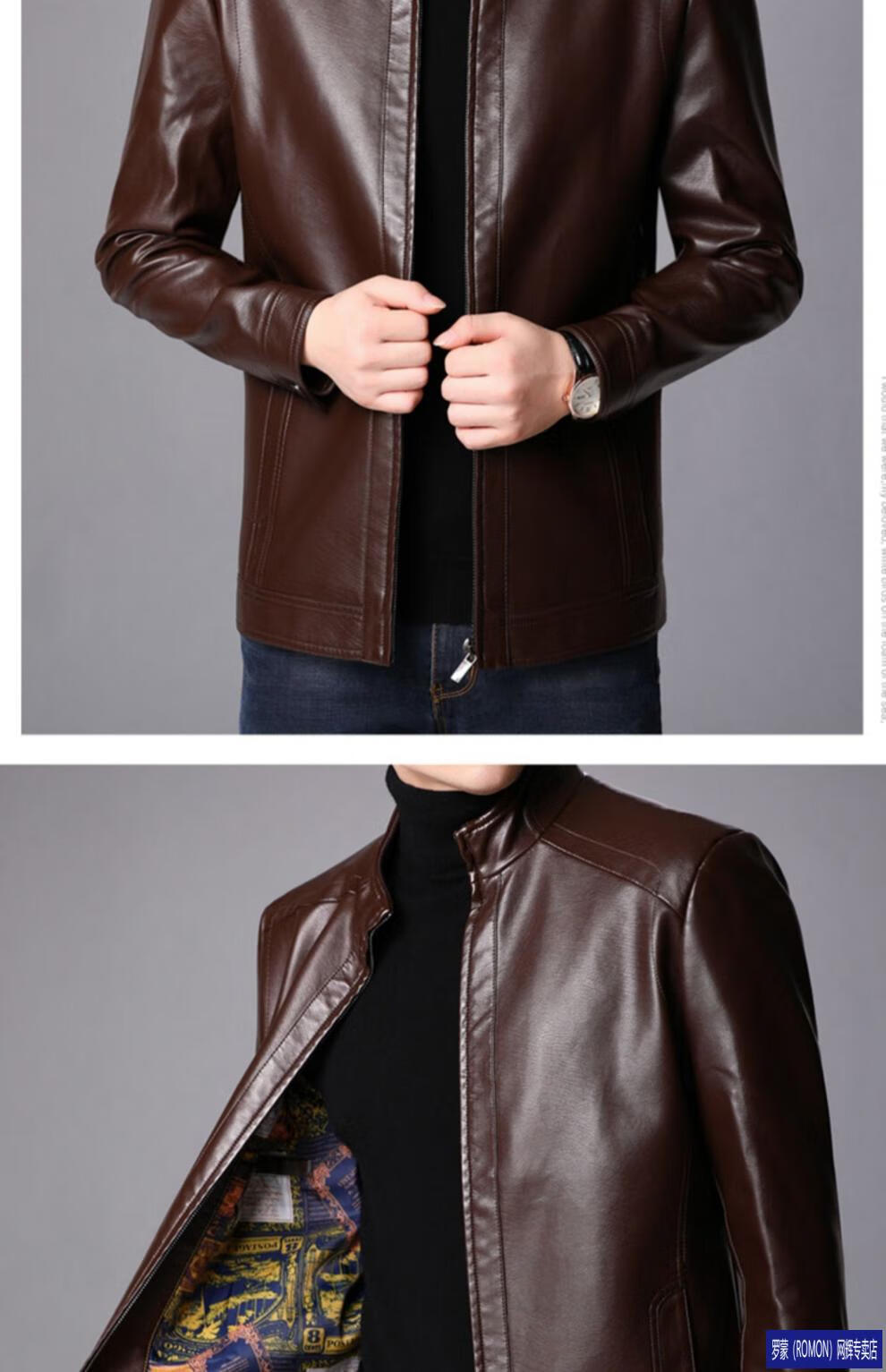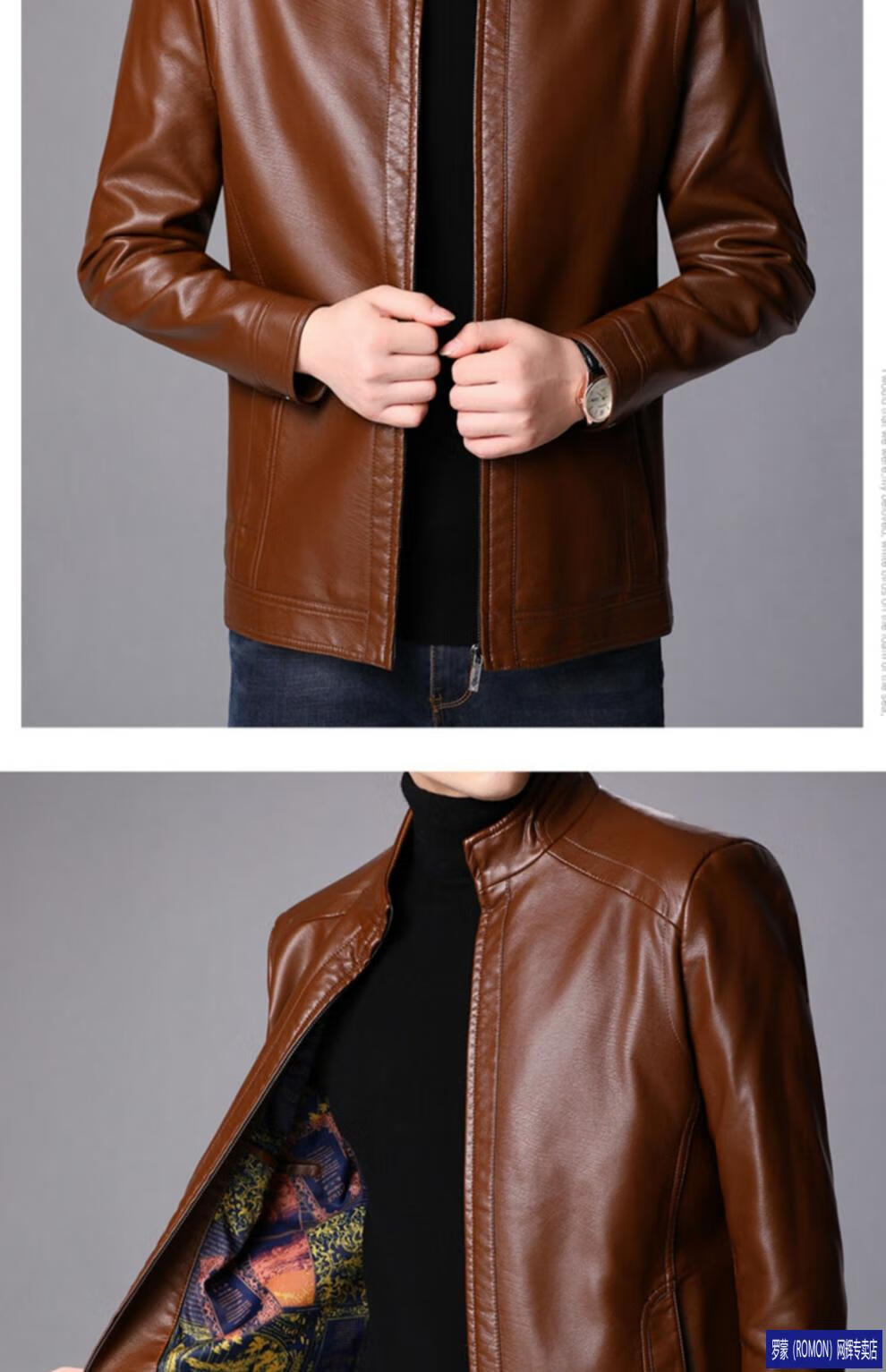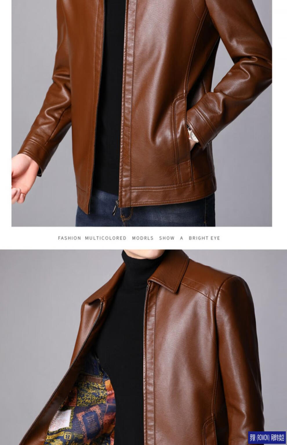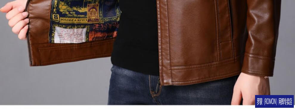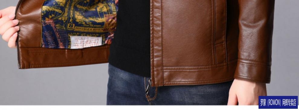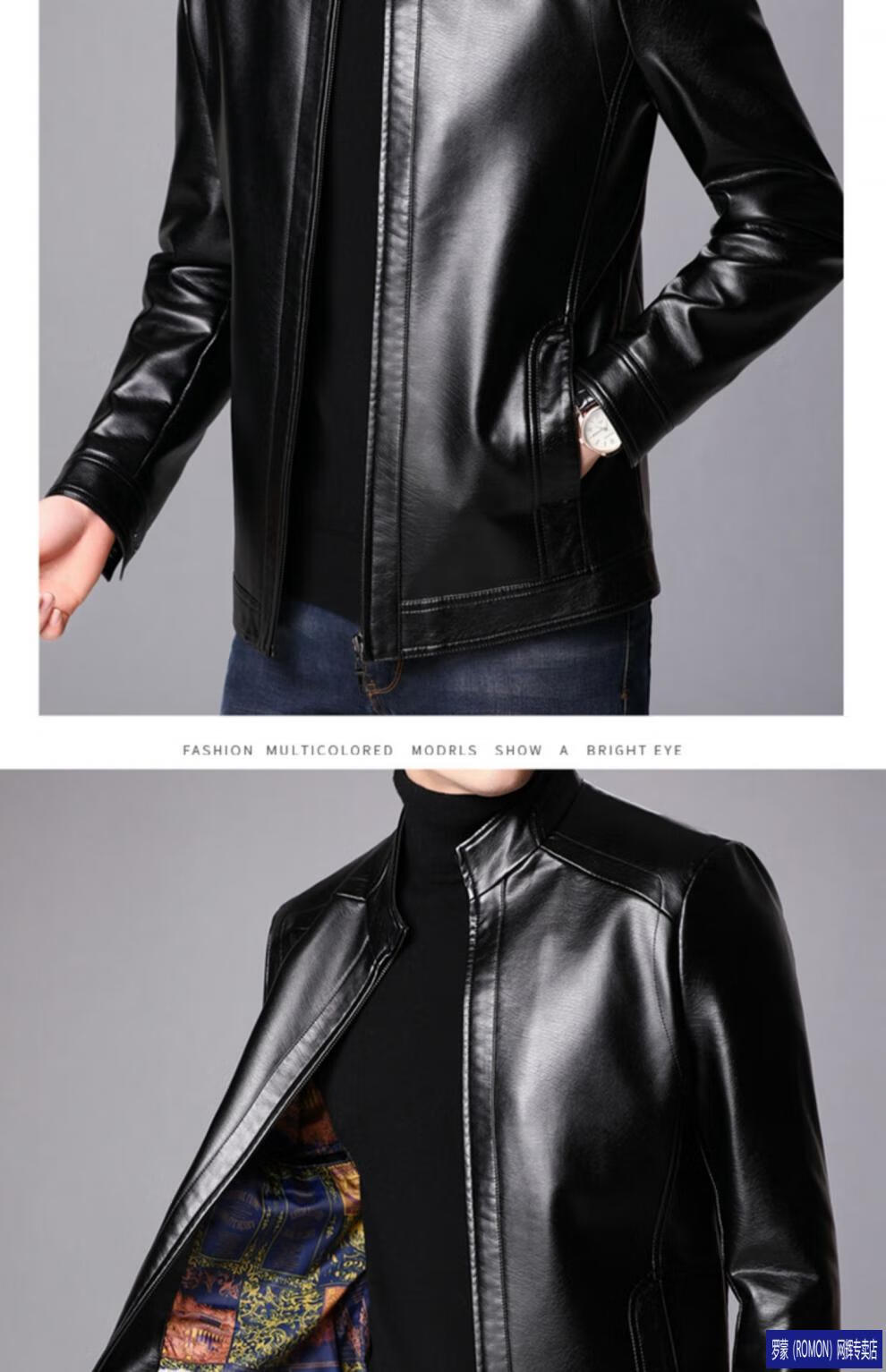 ROMON autumn and winter Haining leather jacket men's loose lapel plus velvet thickened sheepskin leather jacket men's leather jacket dad wear lapel black 3XL 190 180-200Jin Jin equals 0.5 kg