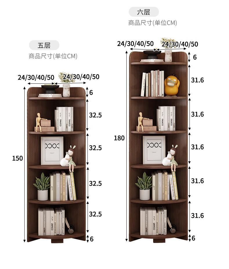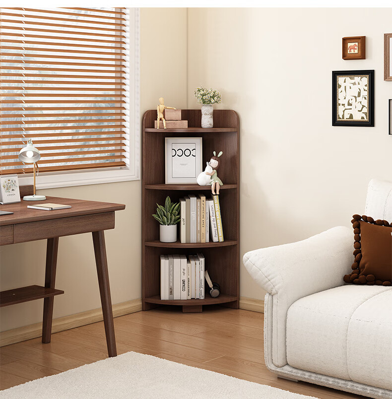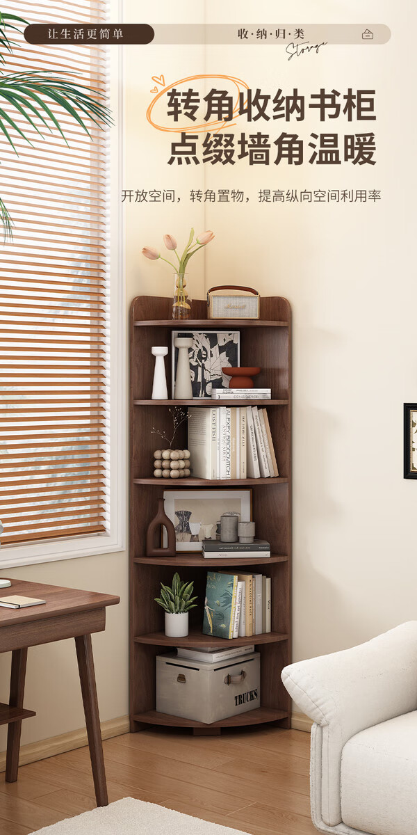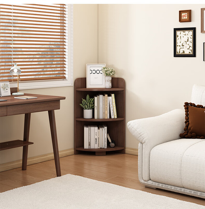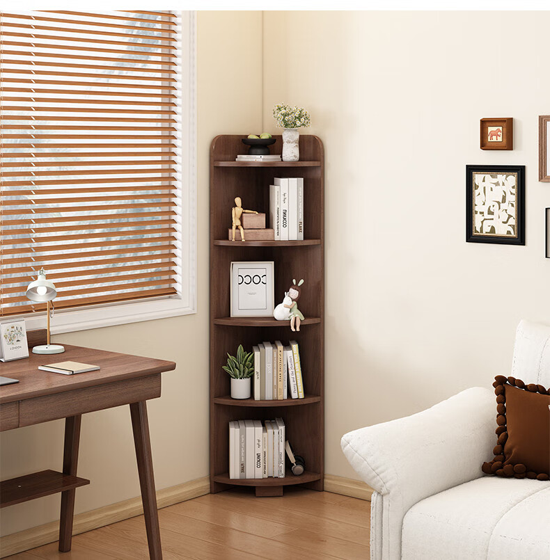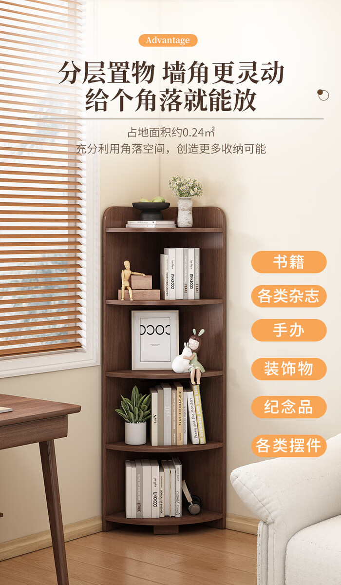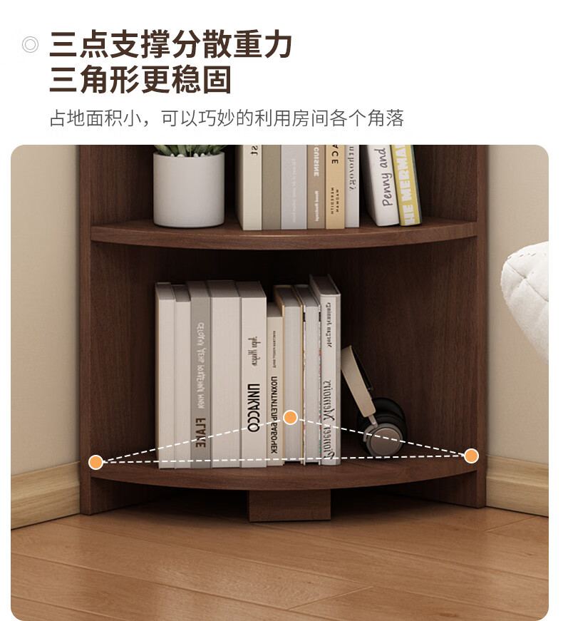 Fantasy corner cabinet corner storage rack against the wall triangular narrow cabinet bedroom storage cabinet fan-shaped corner floor-standing bookshelf thickened solid wood six-layer model 50x50x180cm walnut
