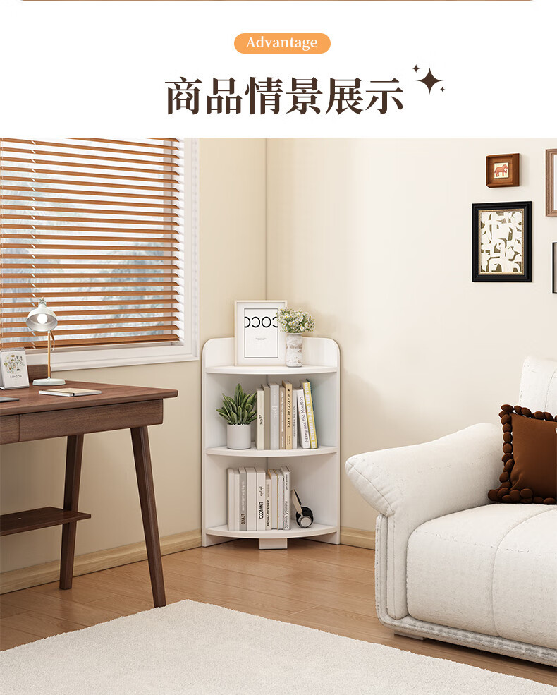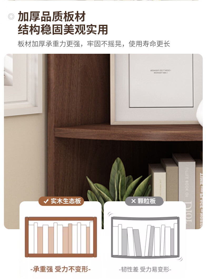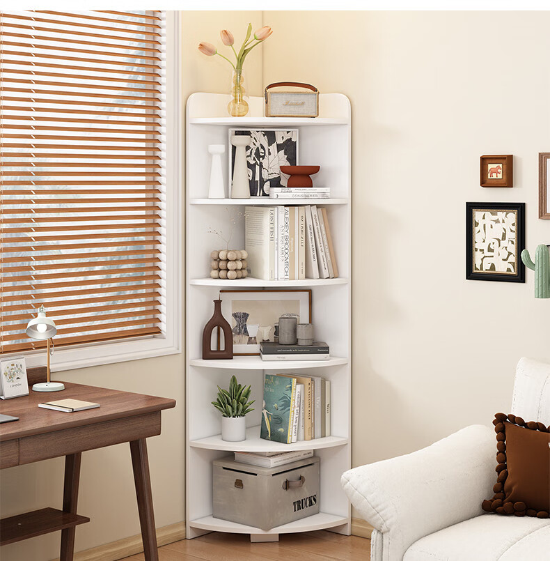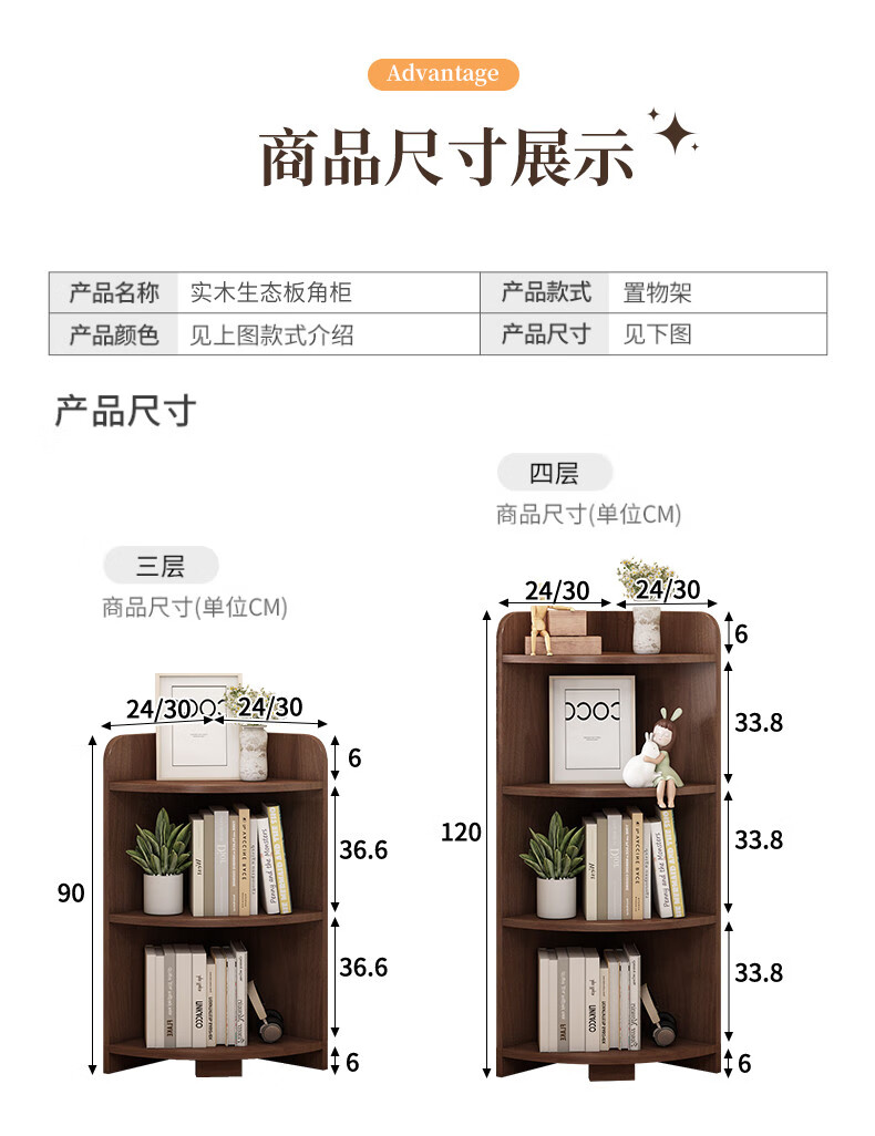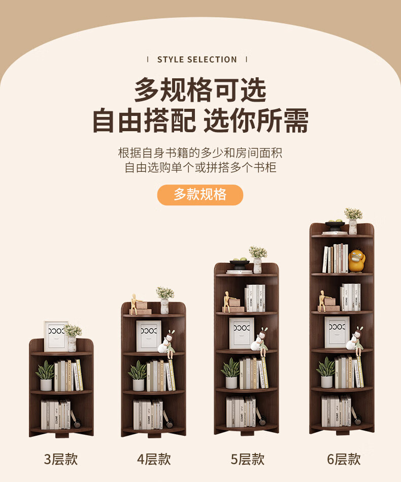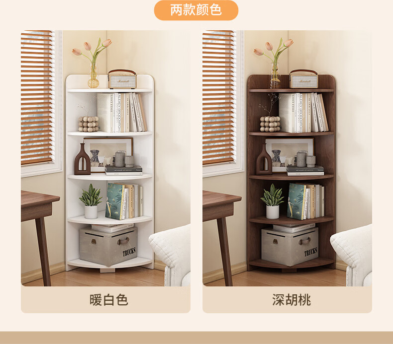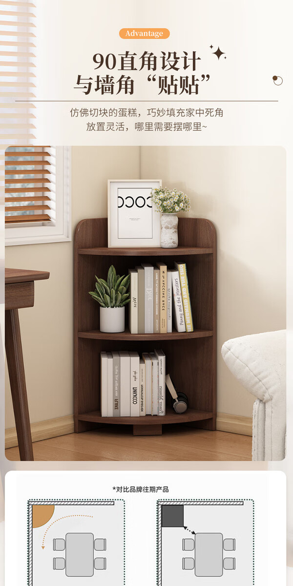 Fantasy corner cabinet corner storage rack against the wall triangular narrow cabinet bedroom storage cabinet fan-shaped corner floor-standing bookshelf thickened solid wood six-layer model 50x50x180cm walnut