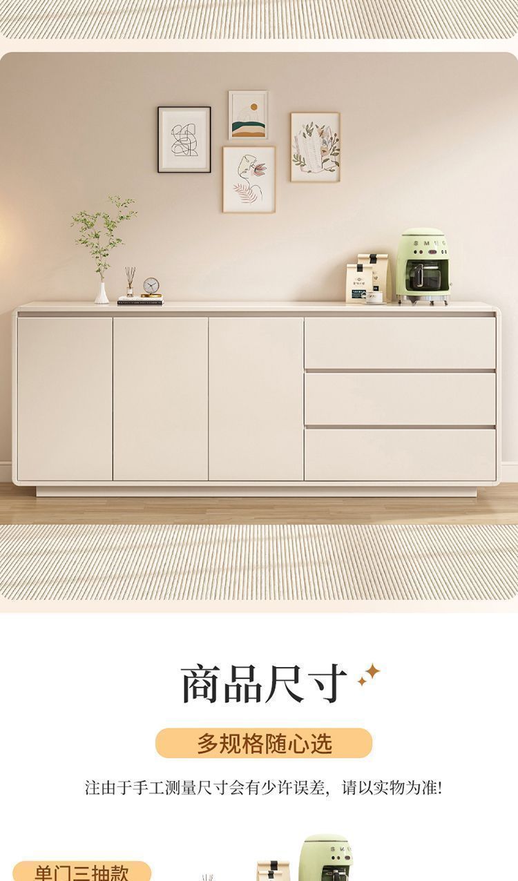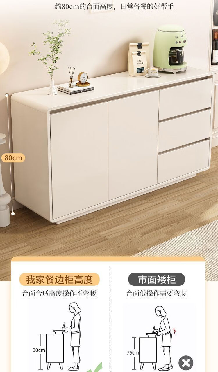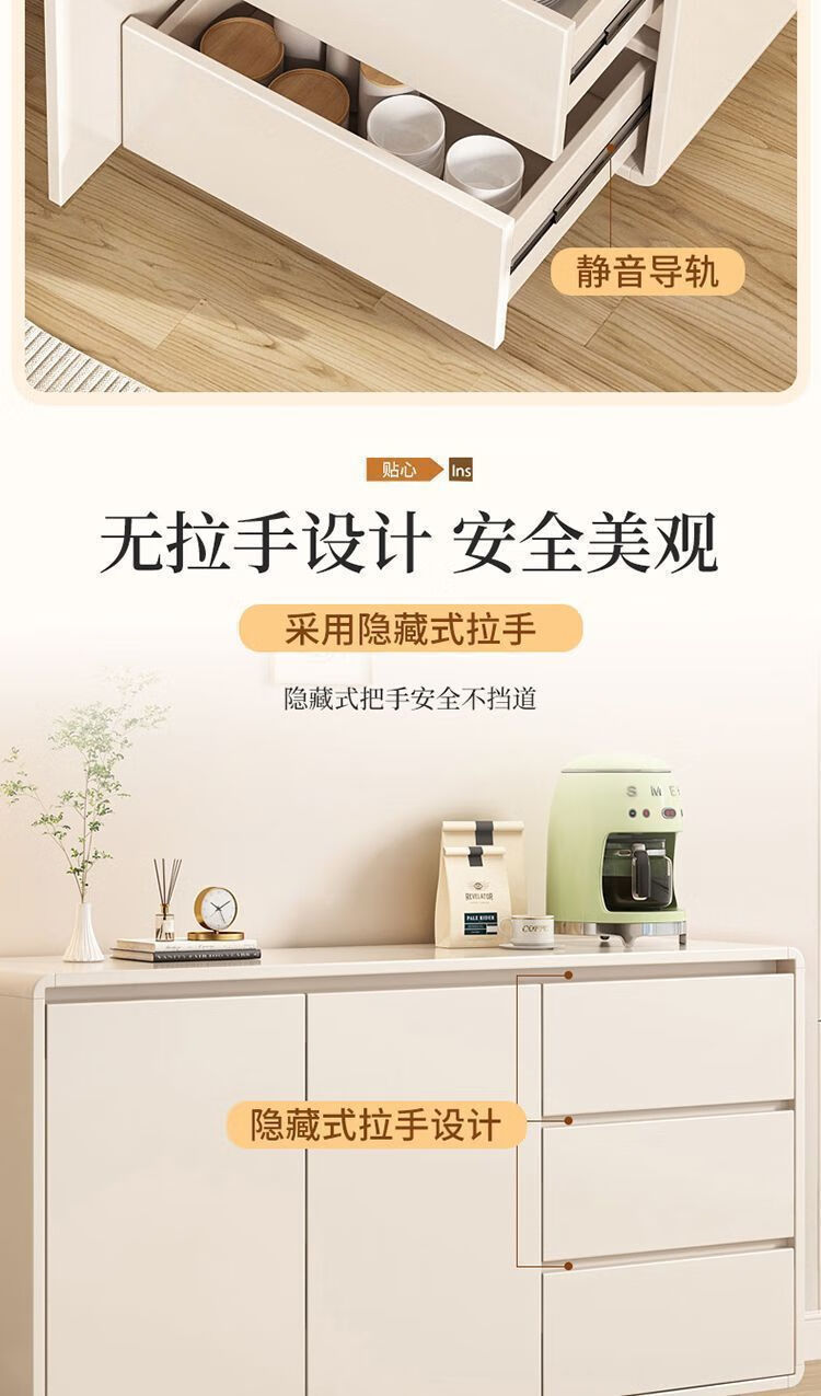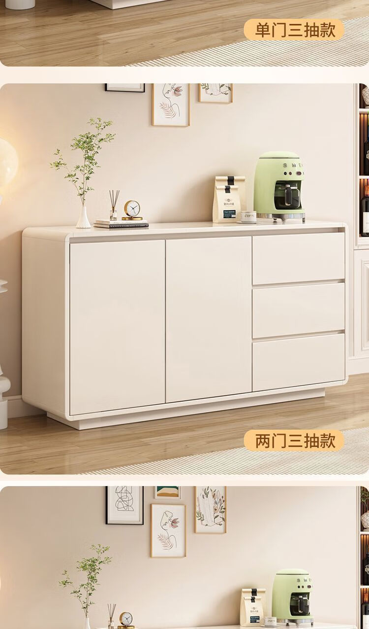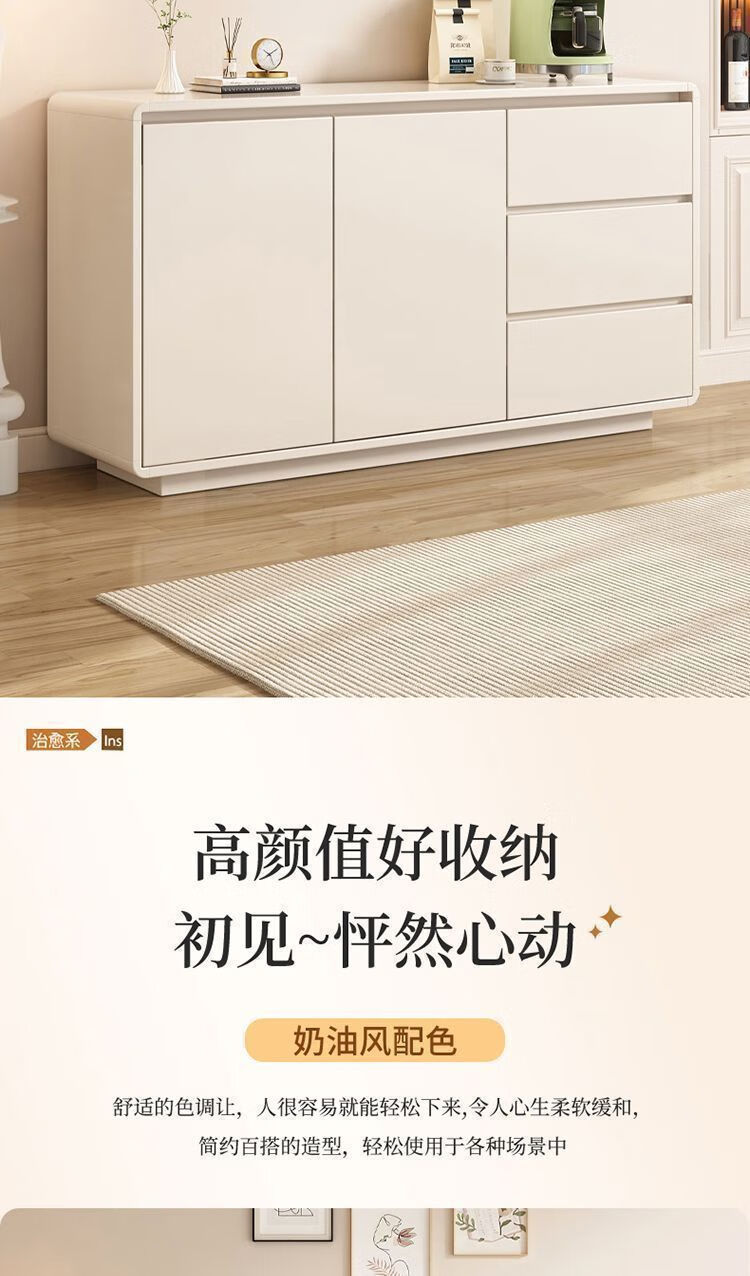 Yong Huan all solid wood cream style sideboard against the wall one-piece modern simple drawer cabinet living room storage cabinet new kitchen cabinet 100x40x80CM# solid wood ecological board thickened backboard anti-collision curved sideboard self-installation