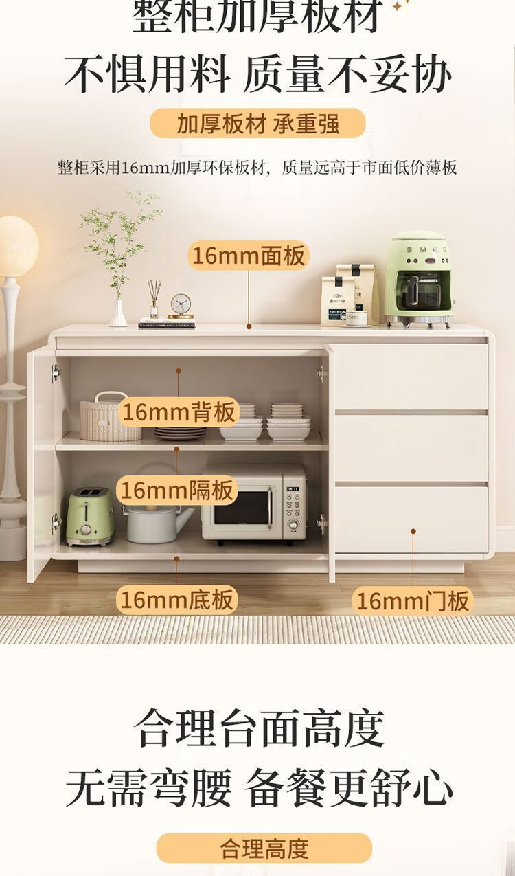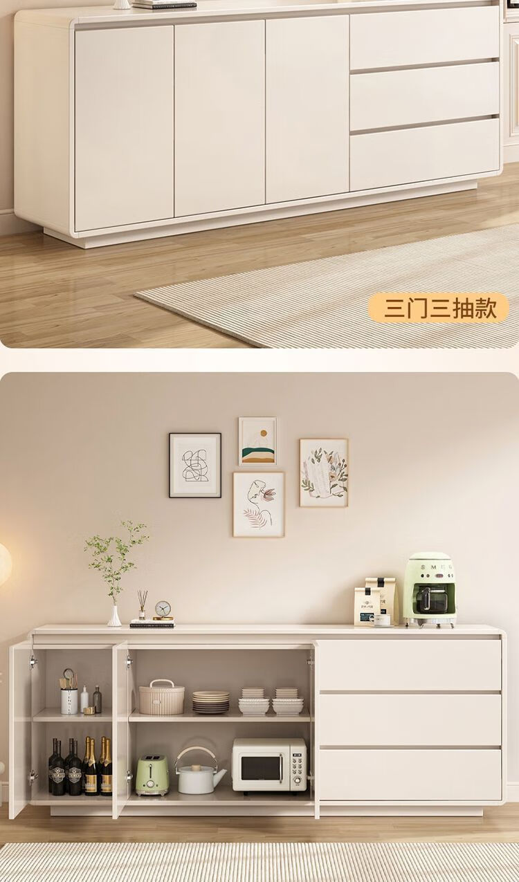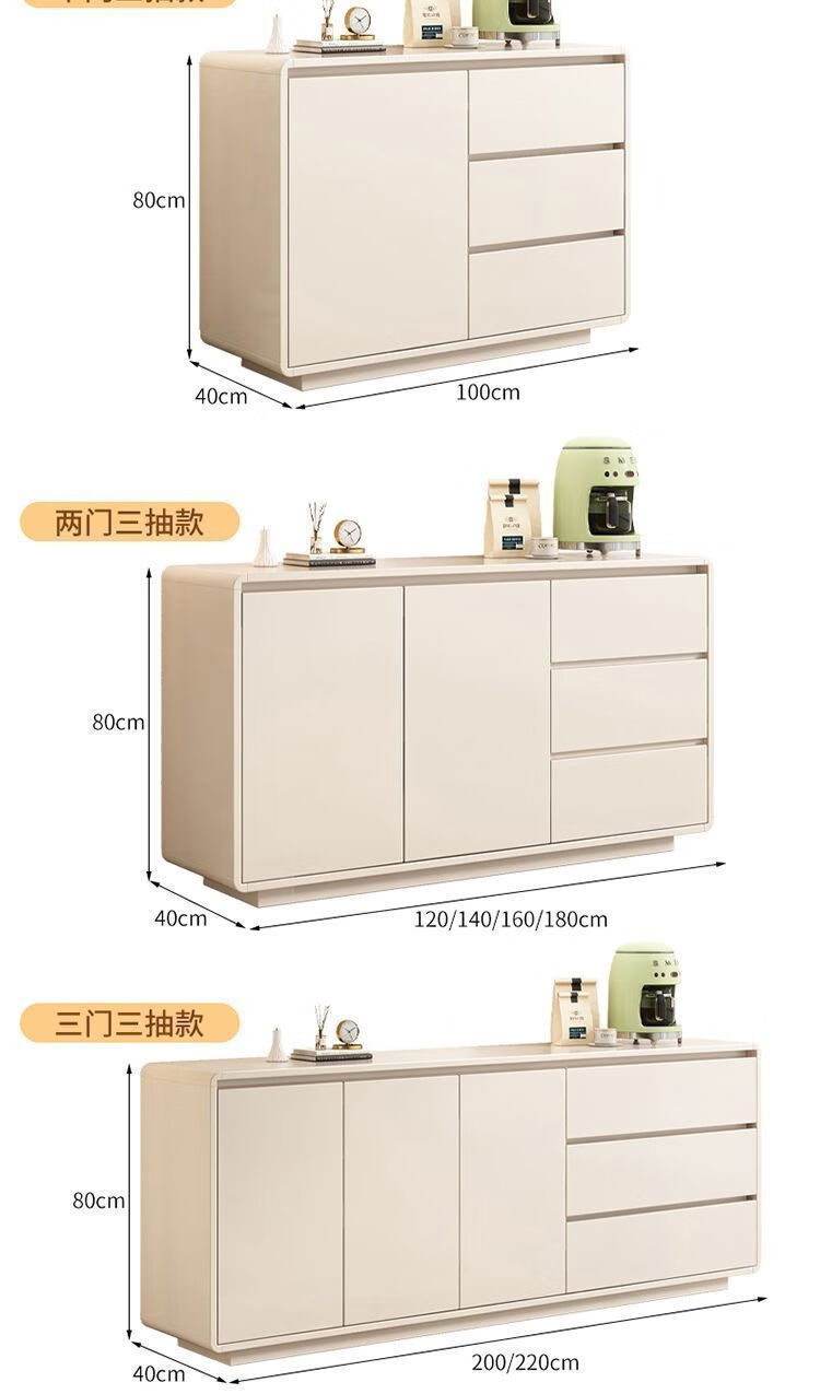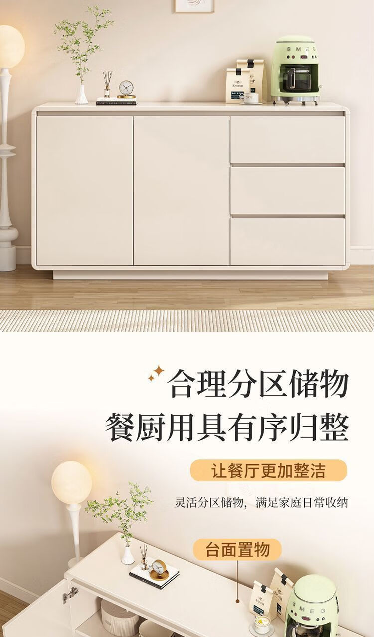 Yong Huan all solid wood cream style sideboard against the wall one-piece modern simple drawer cabinet living room storage cabinet new kitchen cabinet 100x40x80CM# solid wood ecological board thickened backboard anti-collision curved sideboard self-installation