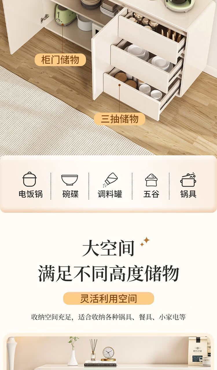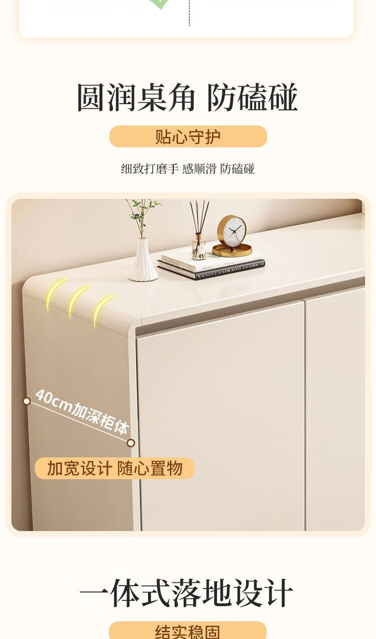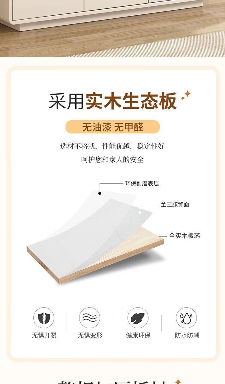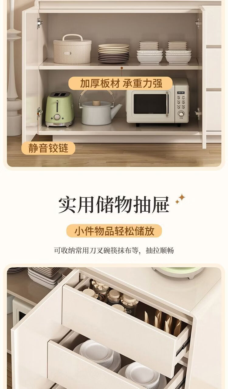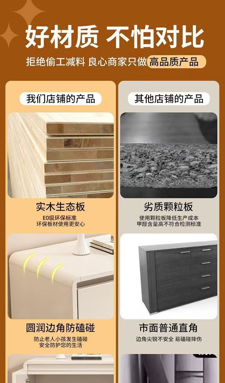 Yong Huan all solid wood cream style sideboard against the wall one-piece modern simple drawer cabinet living room storage cabinet new kitchen cabinet 100x40x80CM# solid wood ecological board thickened backboard anti-collision curved sideboard self-installation