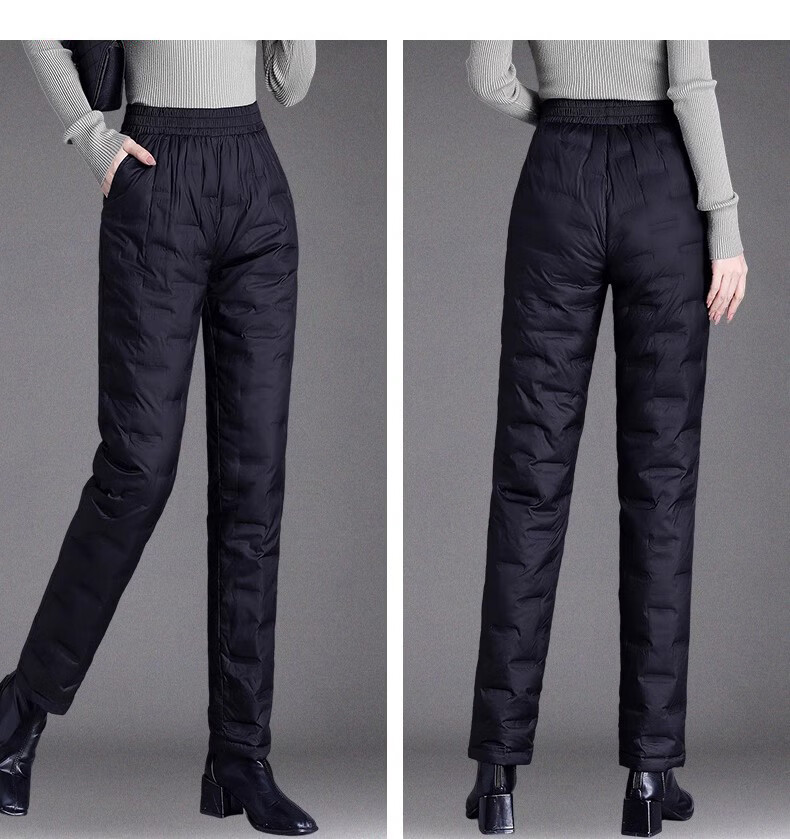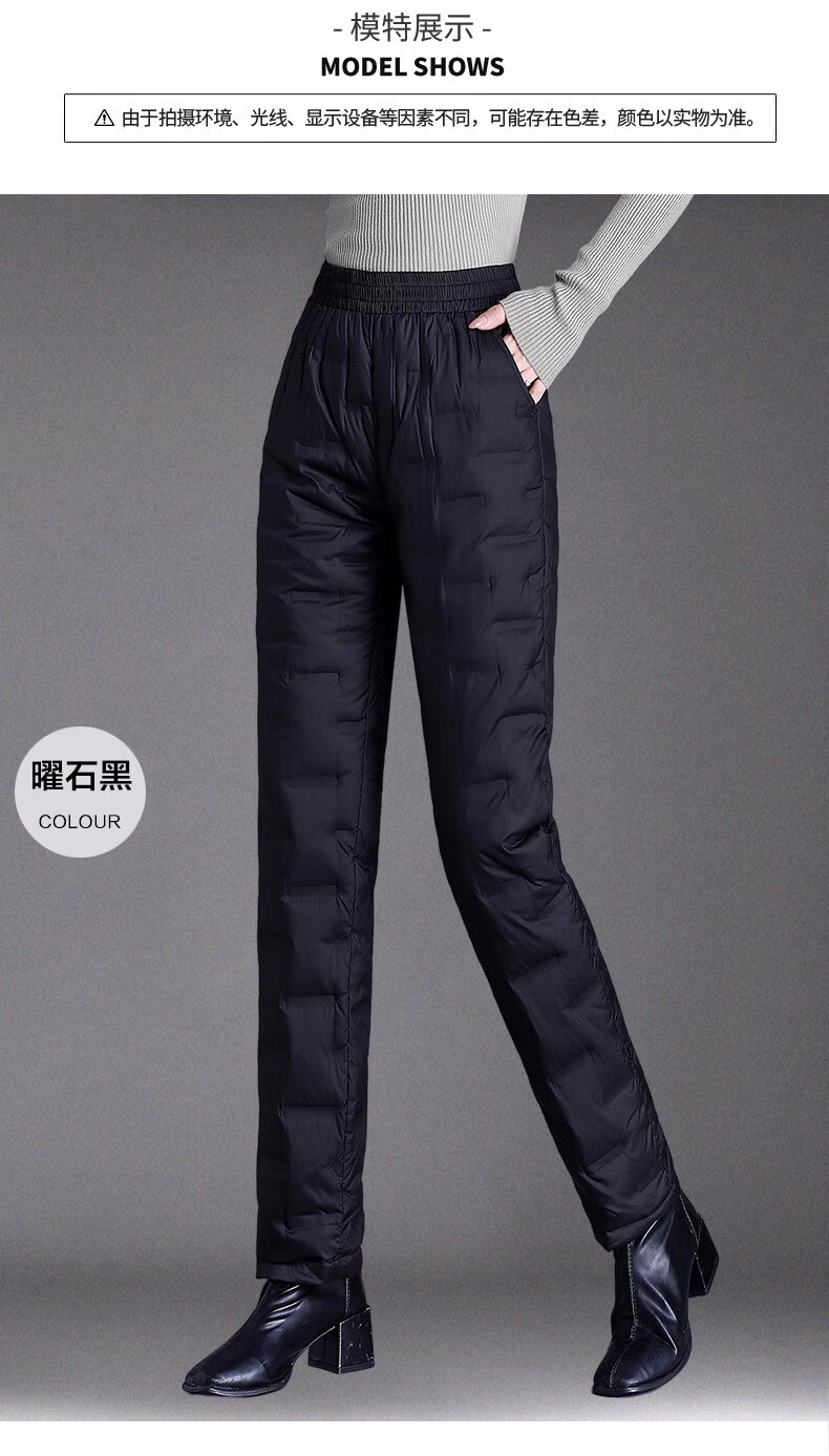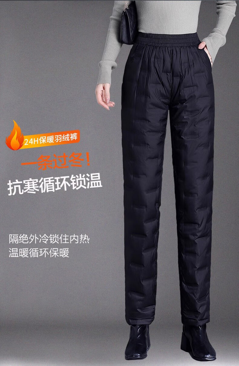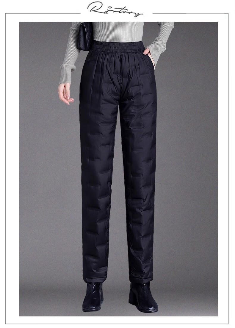 LIIS International Light Luxury High-end Down Pants Middle-aged and Old Down Pants Women's Outerwear High-waisted Loose Thickened Mother's Style Straight Cotton Pants Obsidian Black (Down Pants) 2XL Recommended 135-150Jin Jin equals 0.5kg e