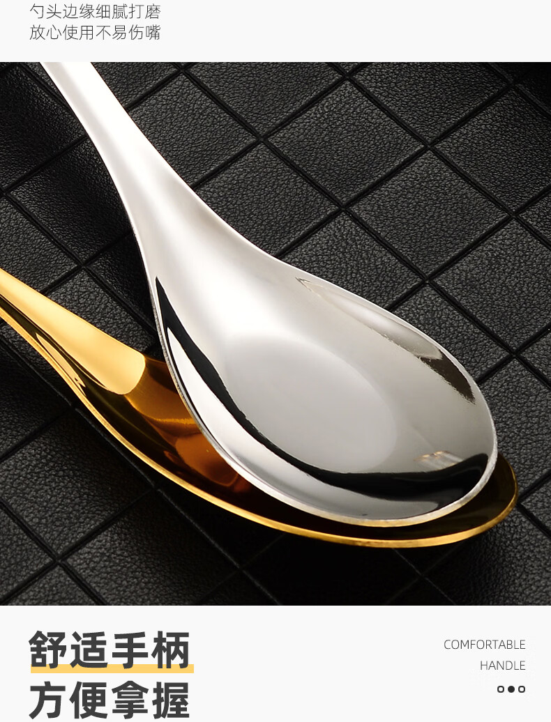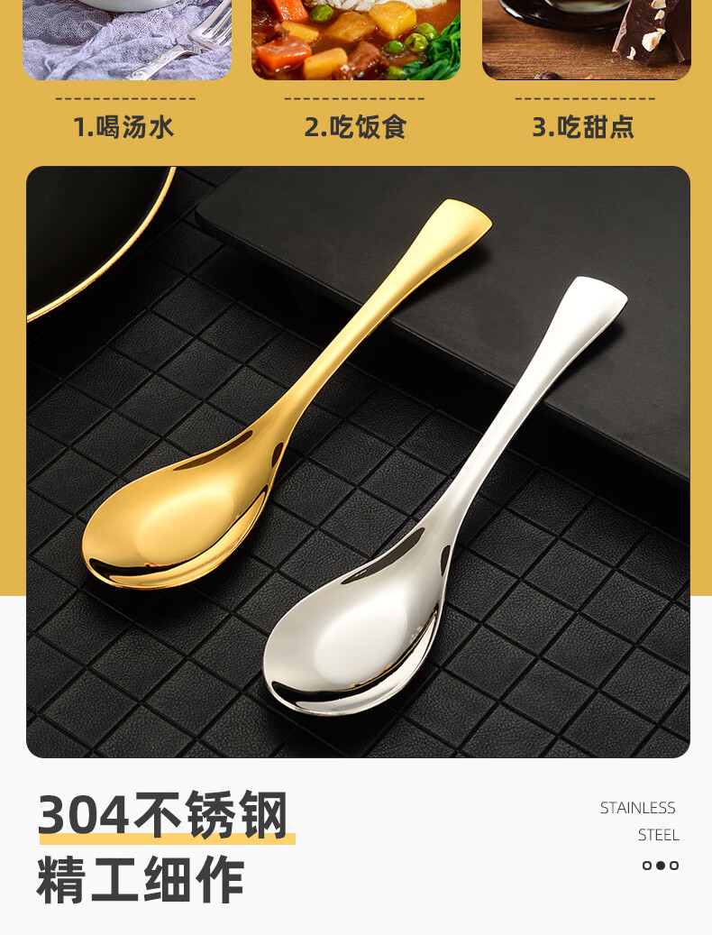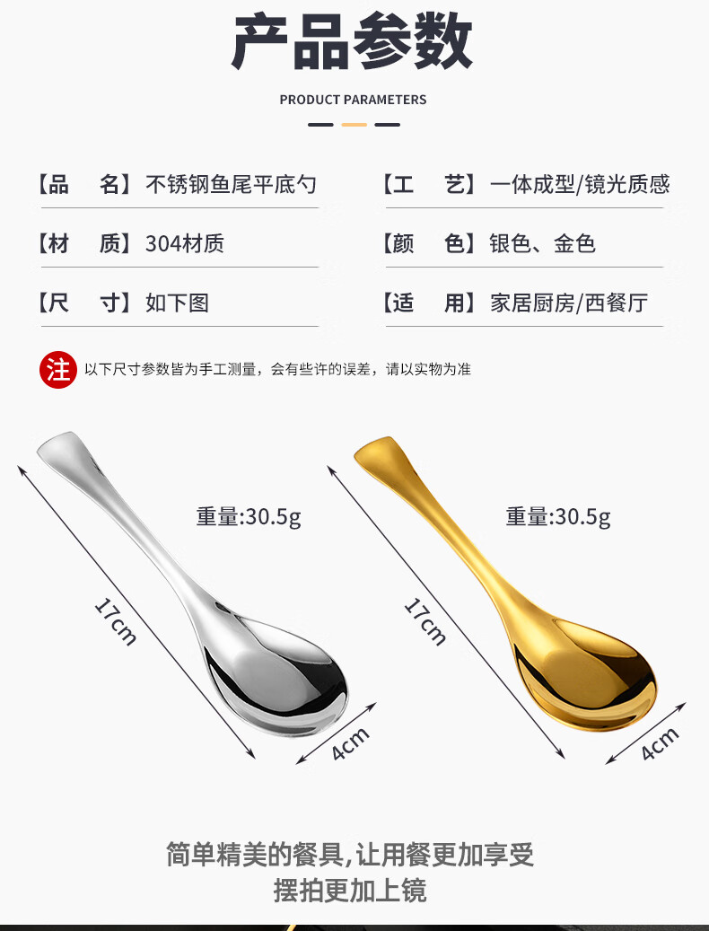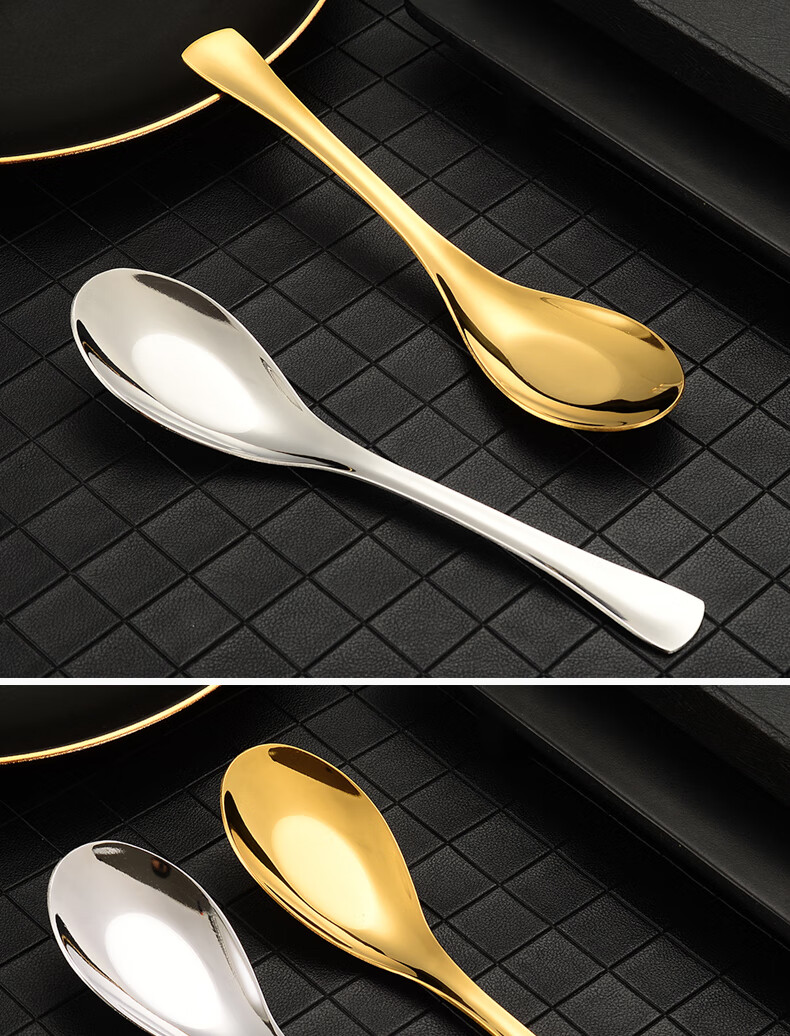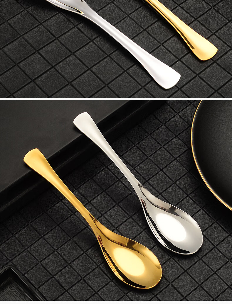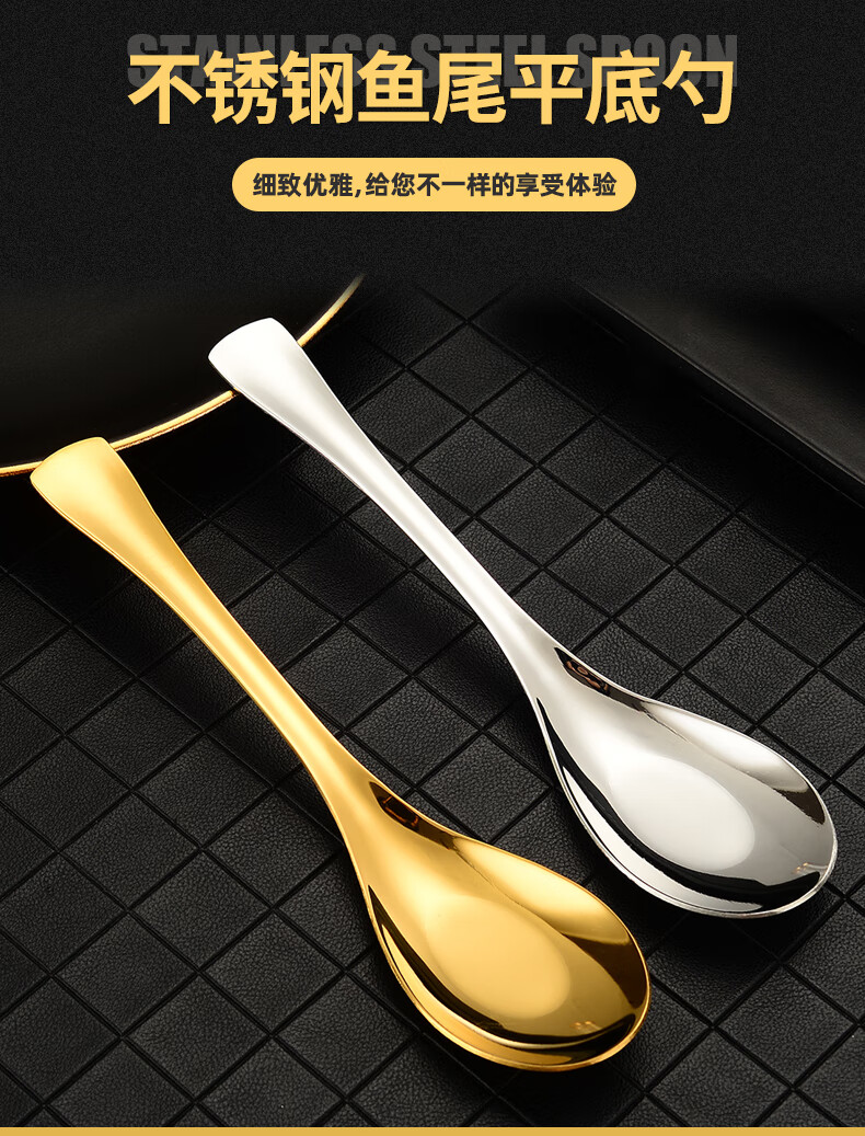 Food-grade 304 stainless steel thickened Korean-style household fish-tail spoon, high-looking internet celebrity drinking soup, students eating, high-quality fish-tail ingot spoon, gold 1 piece