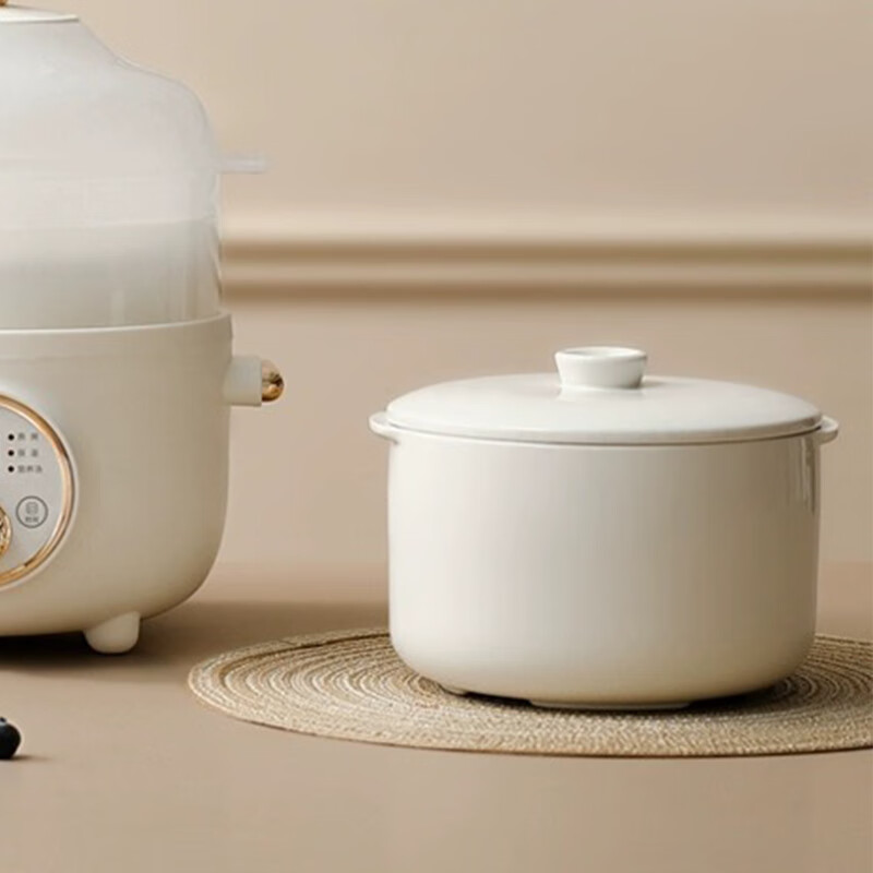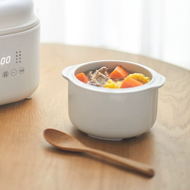 WCZ quality same style ceramic white porcelain water-proof stew pot bird's nest household soup cup binaural dessert BB nutrition cup electric rice cooker black brown 0.35L stew pot + lid