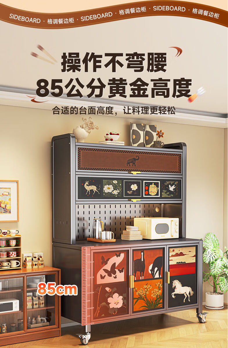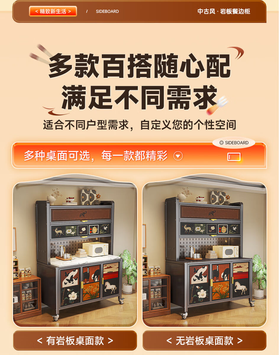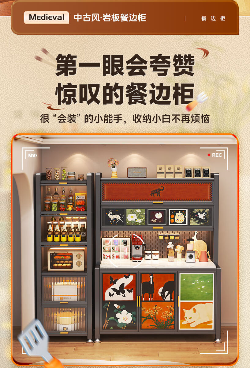 Fantasy kitchen shelf against the wall integrated sideboard style coffee corner storage cabinet storage cabinet Yunxihe hidden gray 5 layers length 90x height 158CM extra thick snow mountain rock