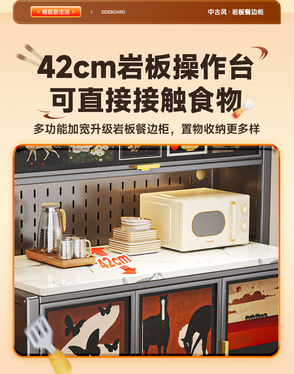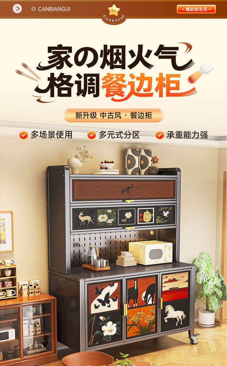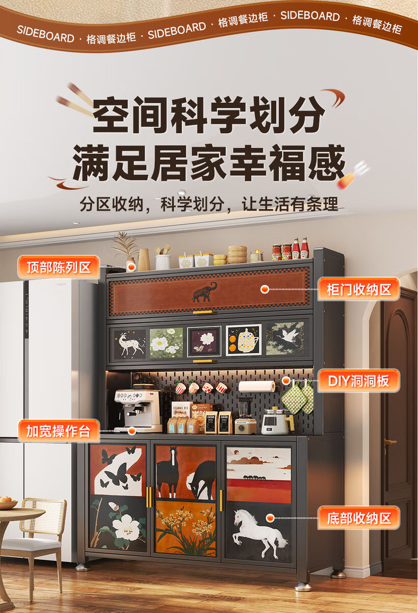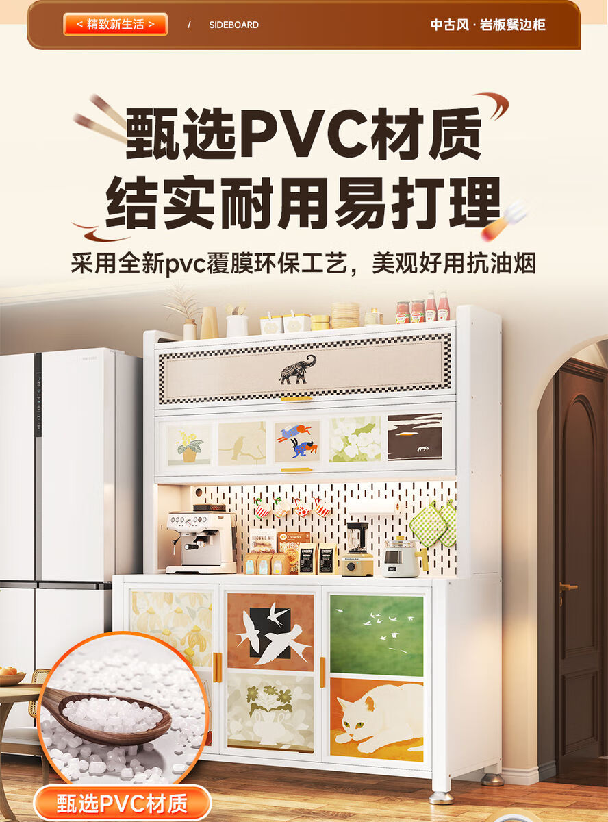 Fantasy kitchen shelf against the wall integrated sideboard style coffee corner storage cabinet storage cabinet Yunxihe hidden gray 5 layers length 90x height 158CM extra thick snow mountain rock