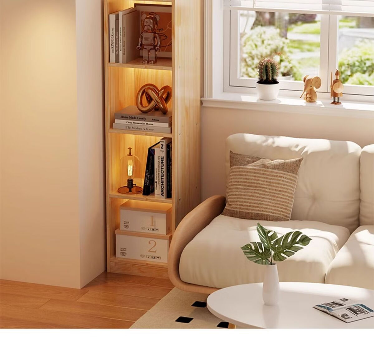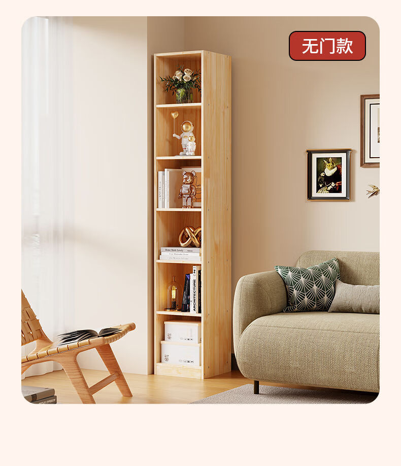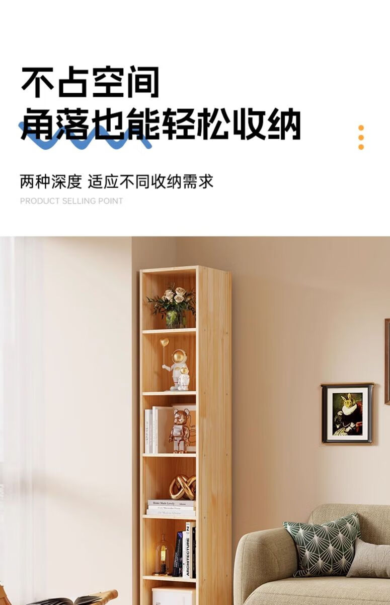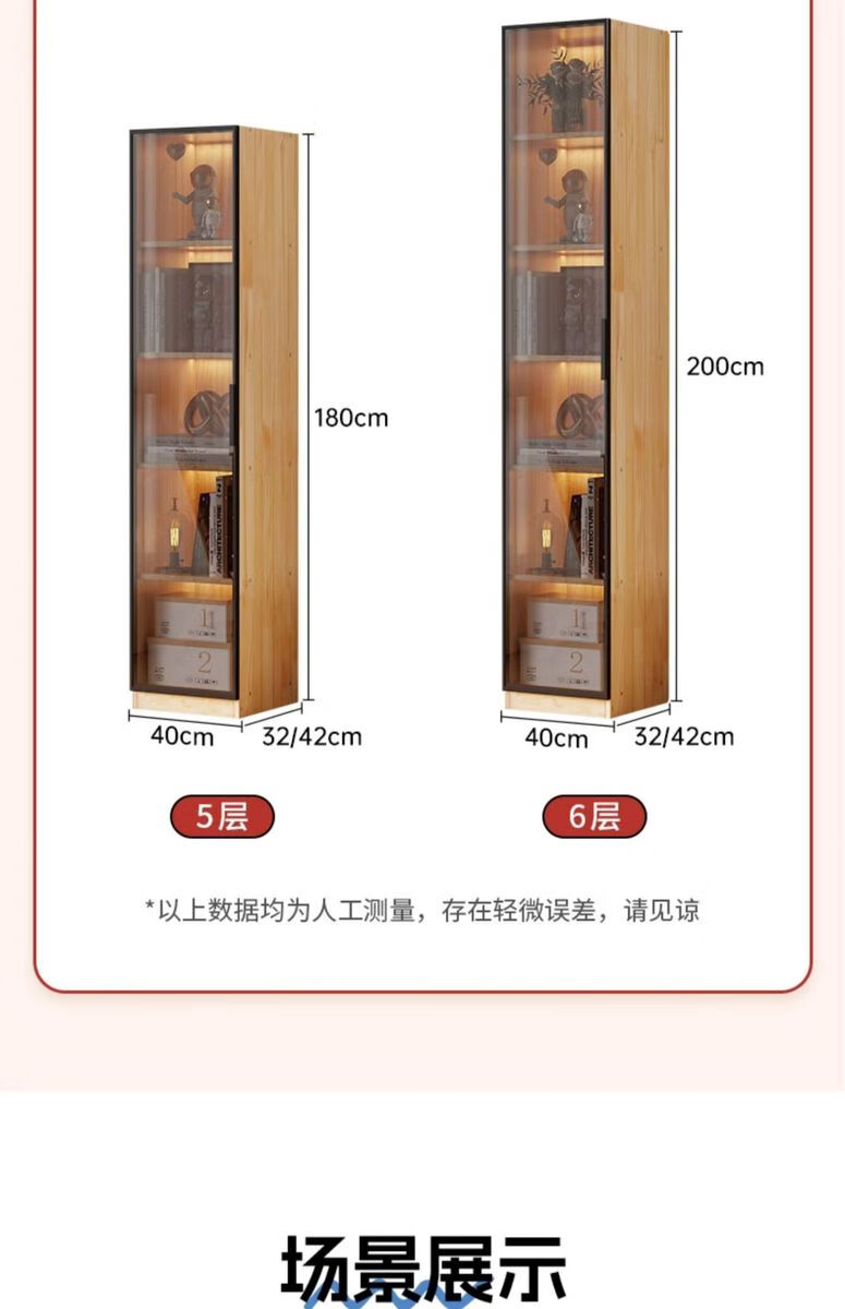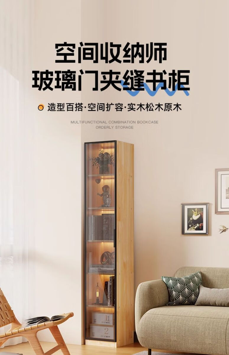 Fantasy floor-standing crevice bookshelf simple living room space-saving small bookcase simple multi-layer wall narrow gap storage rack storage rack solid wood 6-story height 200x length 40x depth 40x glass door