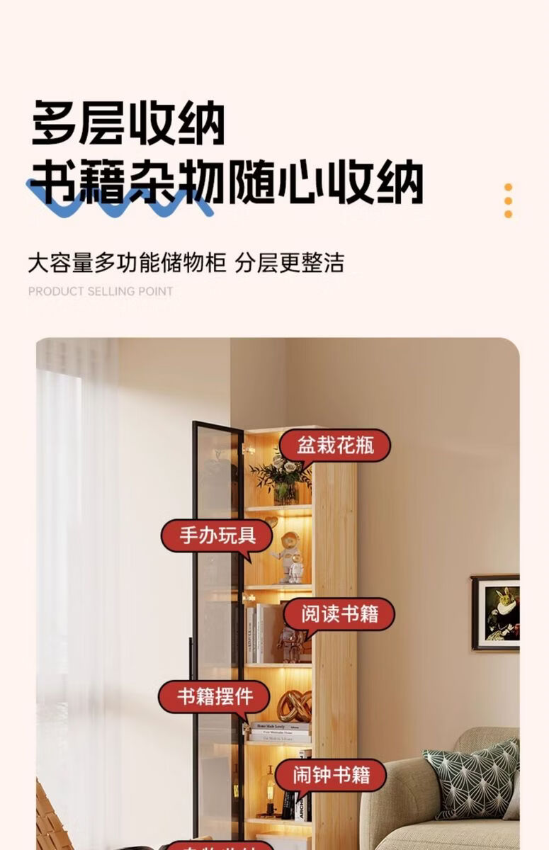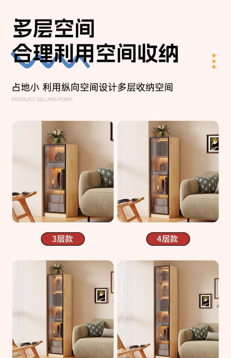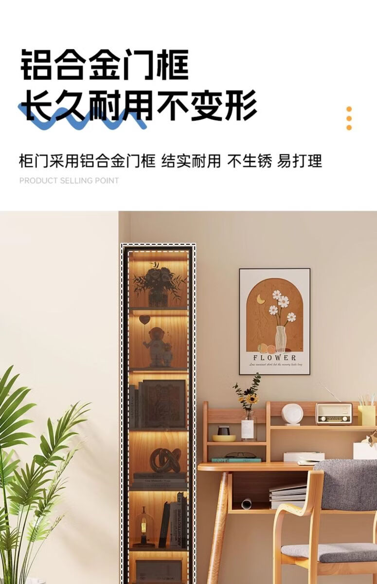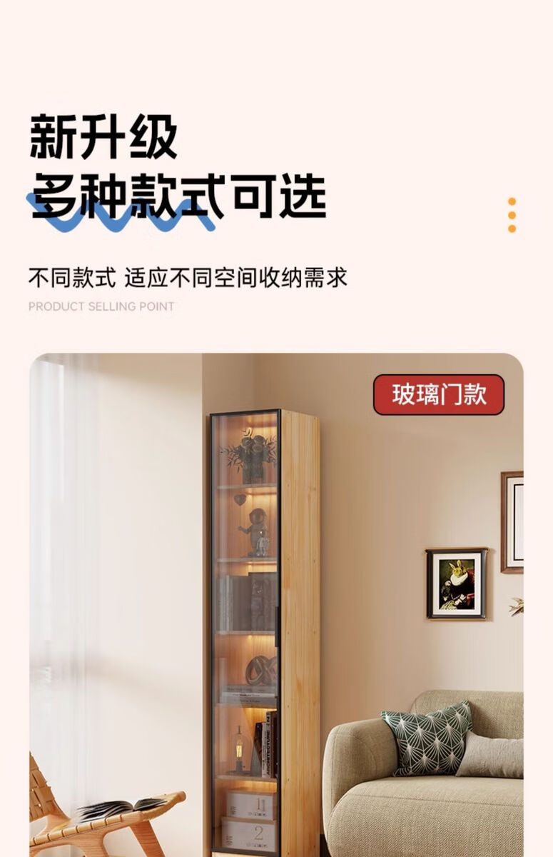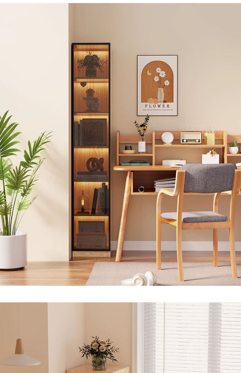 Fantasy floor-standing crevice bookshelf simple living room space-saving small bookcase simple multi-layer wall narrow gap storage rack storage rack solid wood 6-story height 200x length 40x depth 40x glass door
