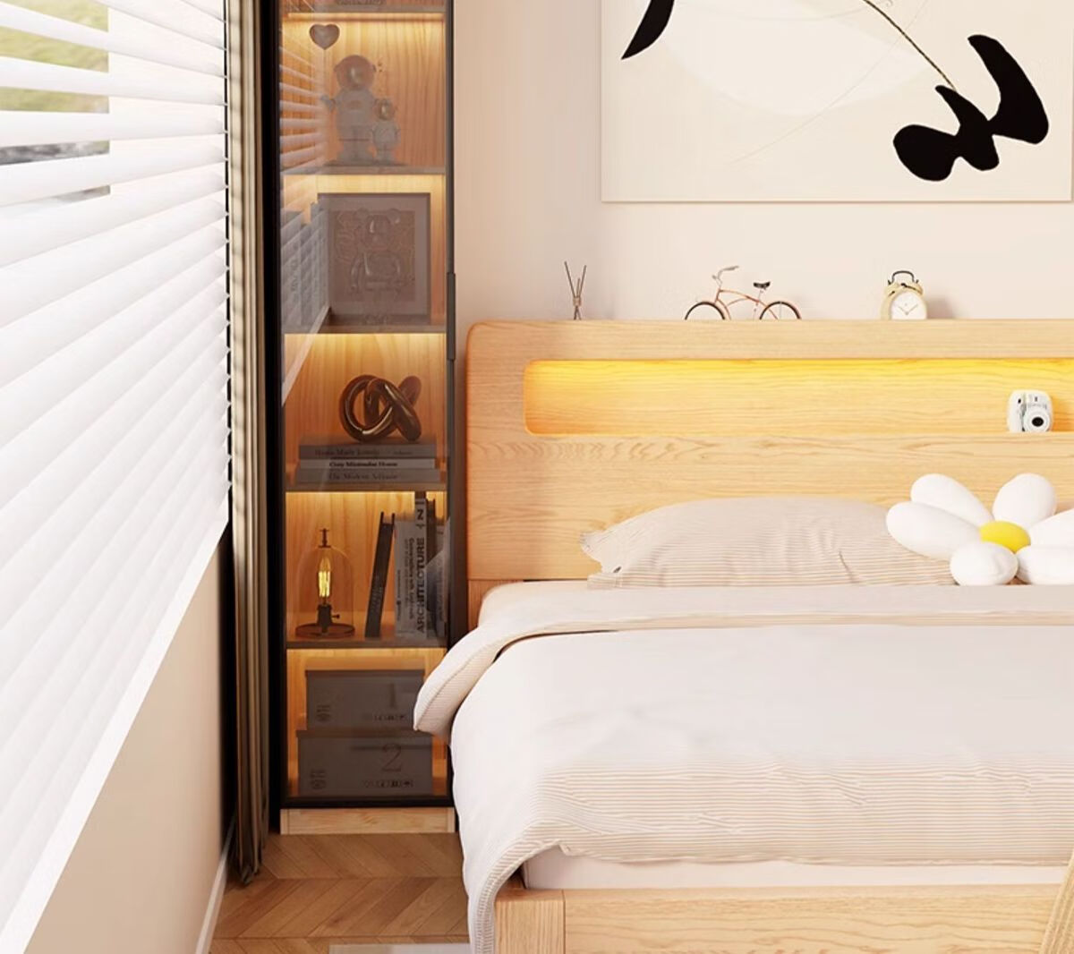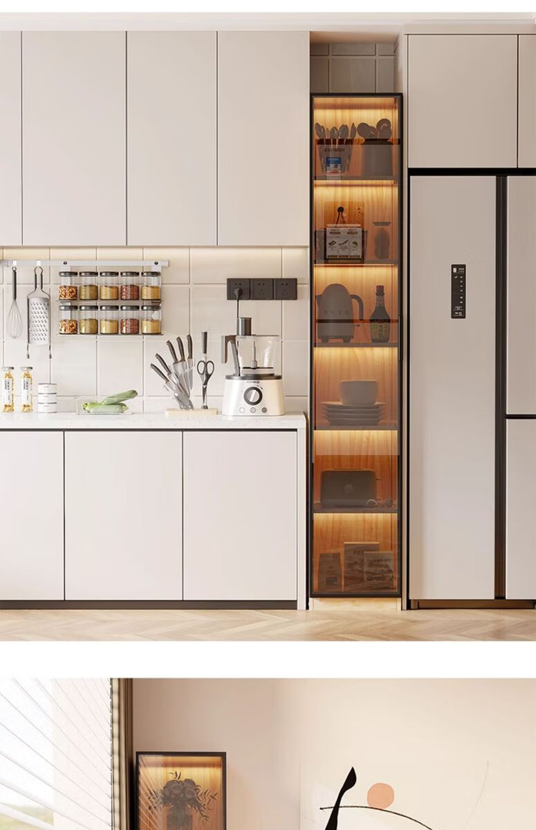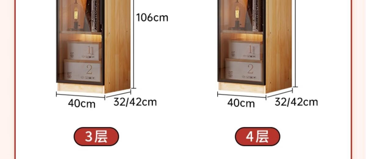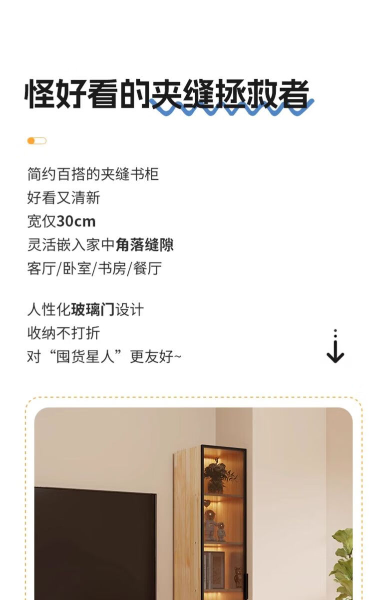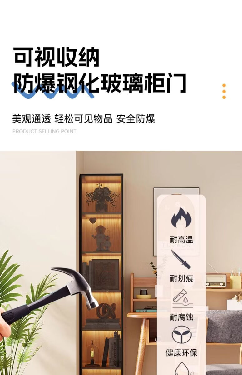 Fantasy floor-standing crevice bookshelf simple living room space-saving small bookcase simple multi-layer wall narrow gap storage rack storage rack solid wood 6-story height 200x length 40x depth 40x glass door