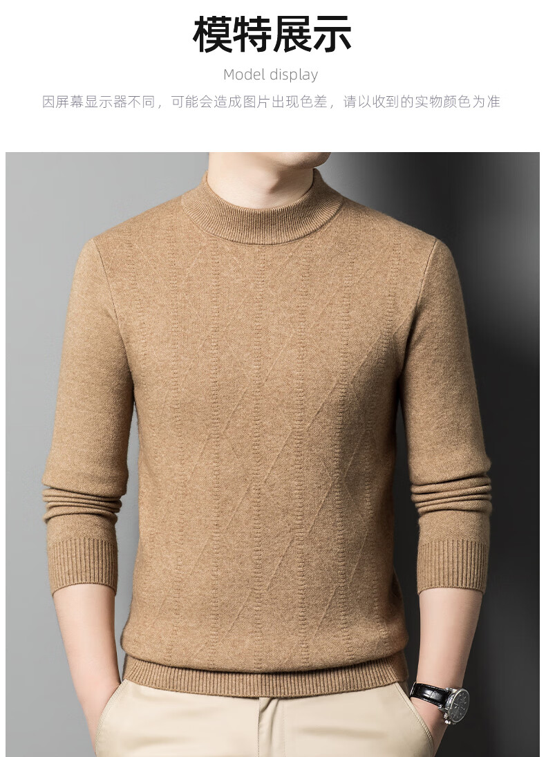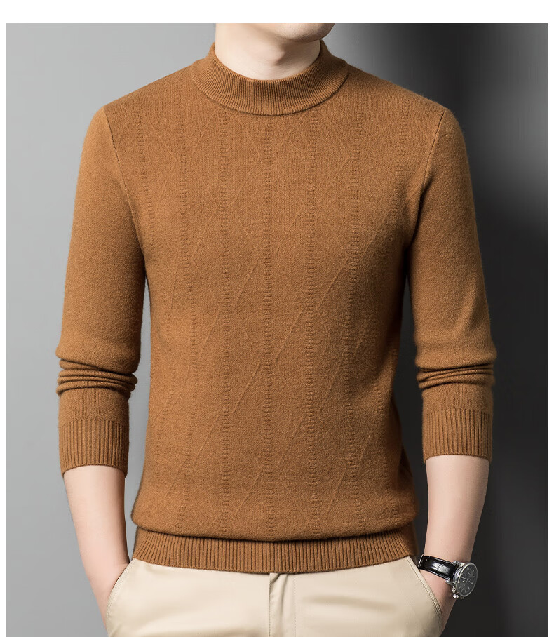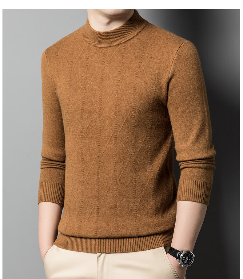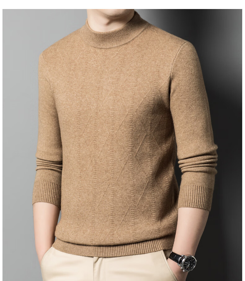 International Milan Ordos city-produced 100% wool sweater for men in winter thickened warm base shirt half turtleneck sheepskin sweater clip-on camel high-end special grade non-pilling 2025 autumn and winter new model XL 175 recommended weight 135-155 Jin Jin is equal to 0.5 kg