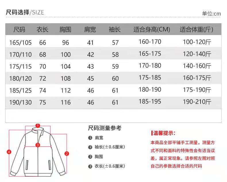 China (cm) 165 / 88-90 170 / 96-98 175 / 108-110 180 / 118-122 185 / 126-130