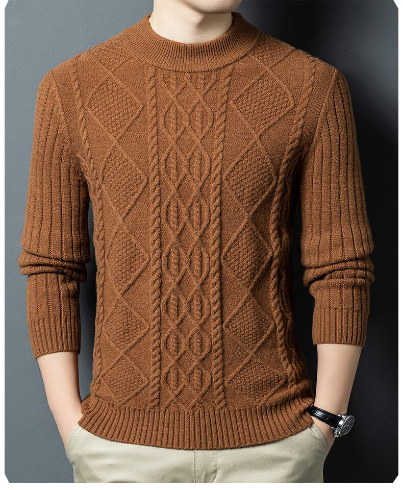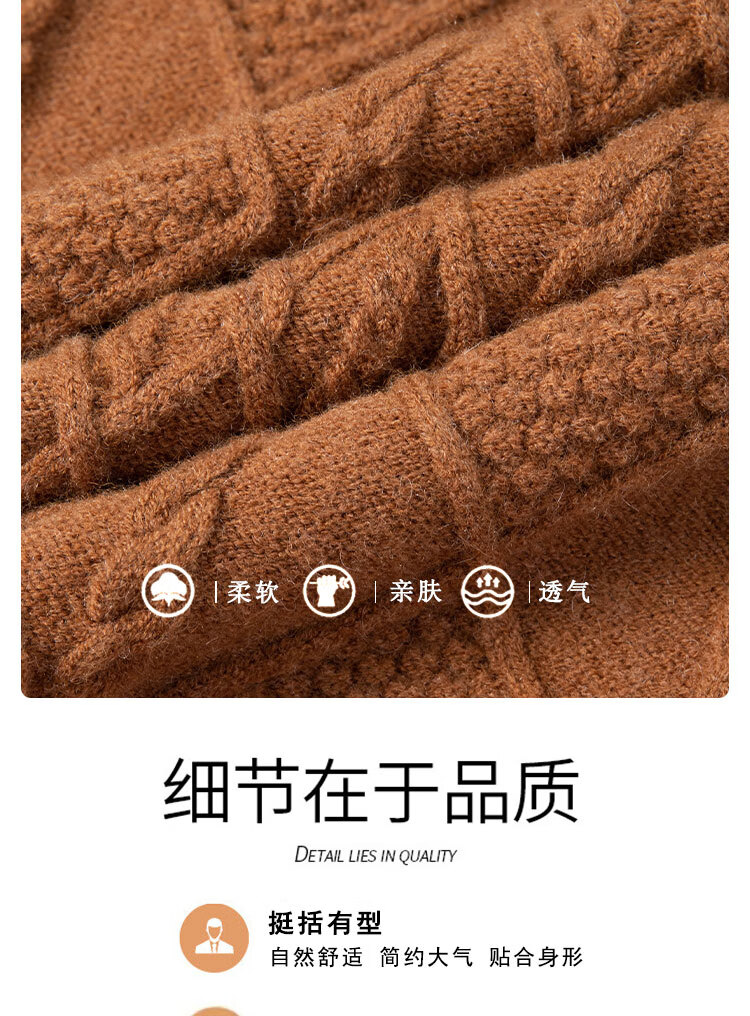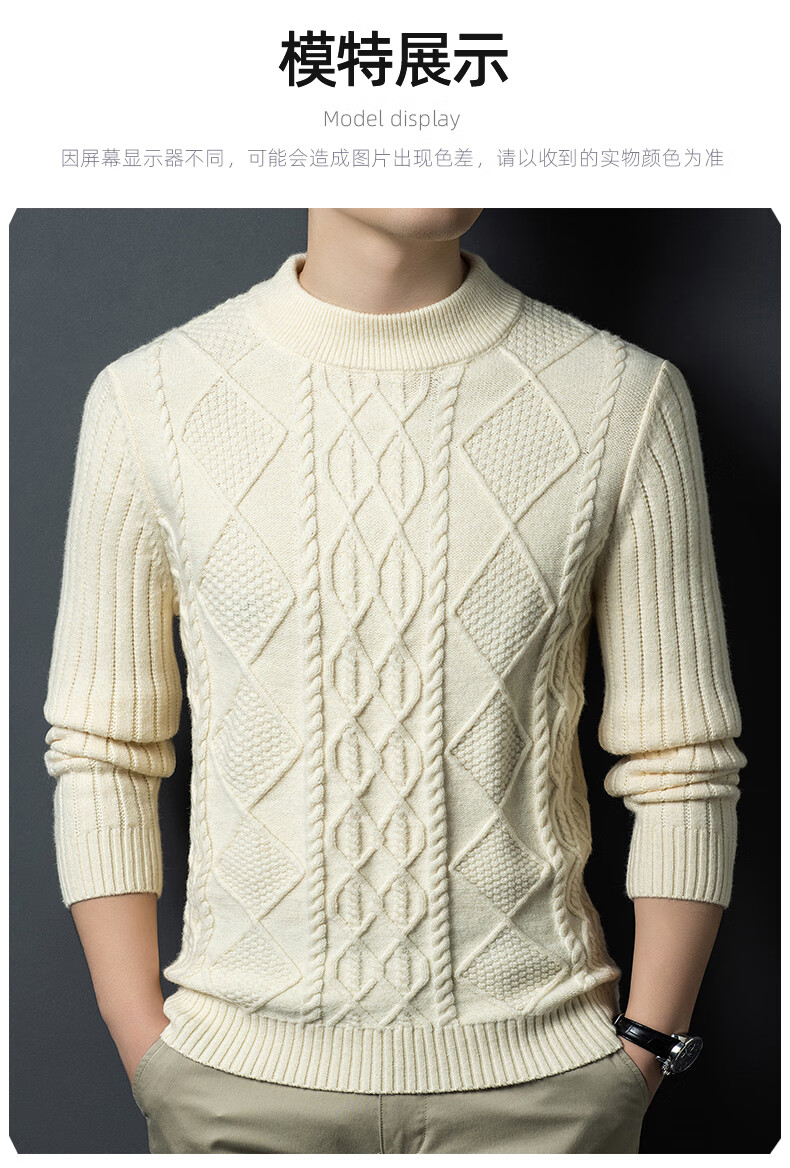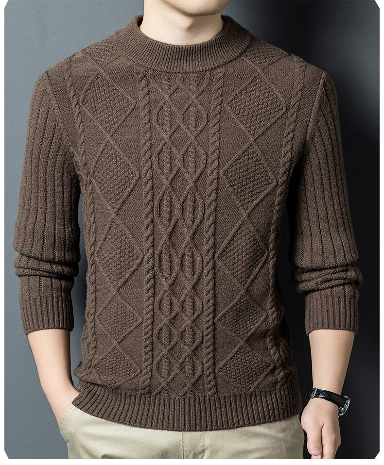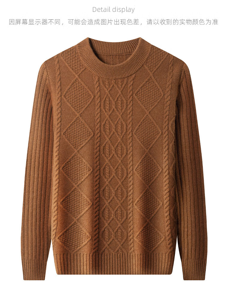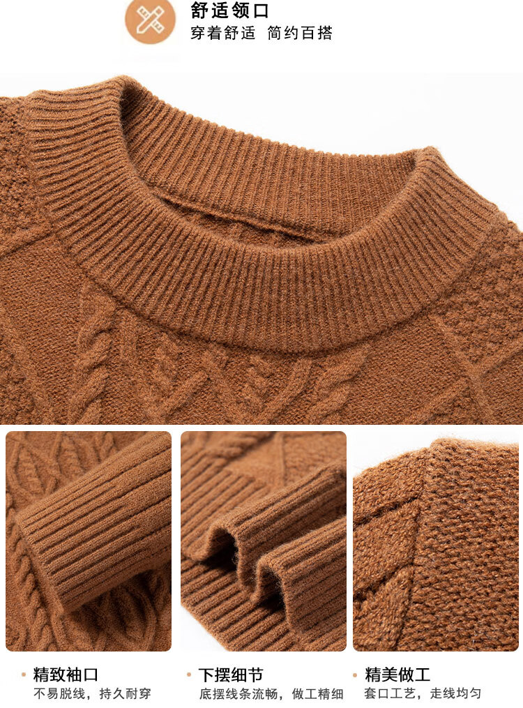 国际米澜鄂尔多斯市产100%羊毛衫男士冬季长袖毛衣新款加厚打底衫羊.绒衫 驼咖 【高档特级不起球2025秋冬新款】 XL 175【适合体重140-155斤】
