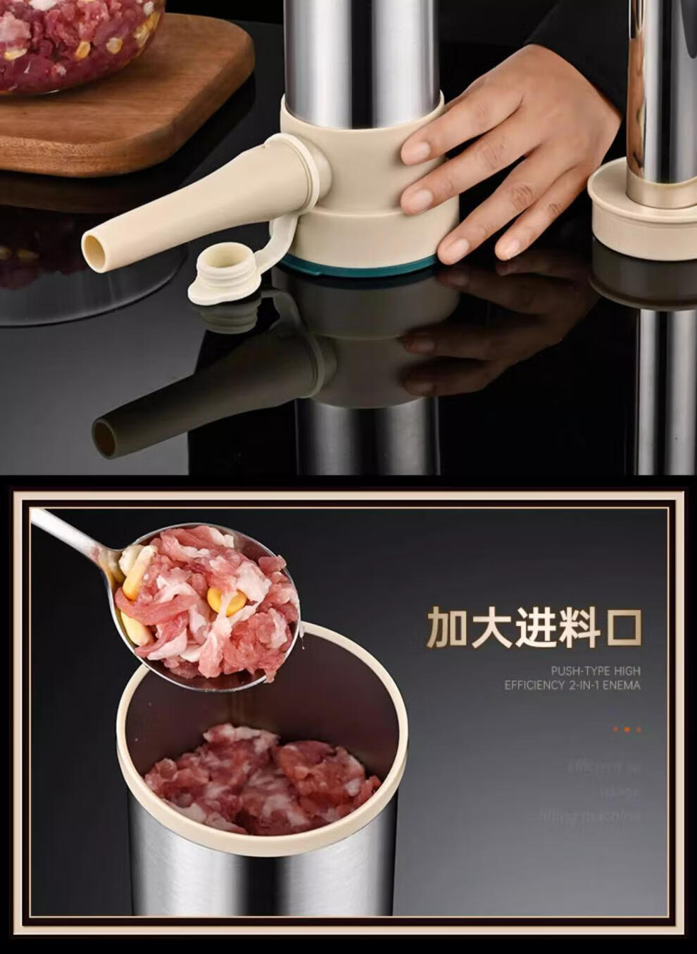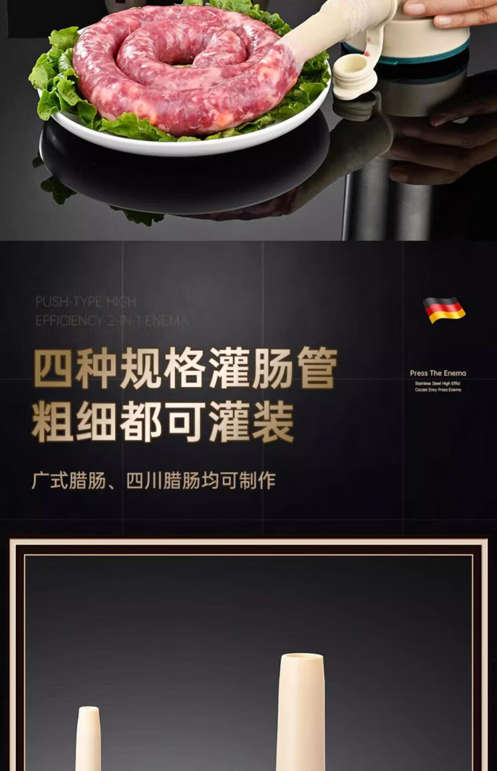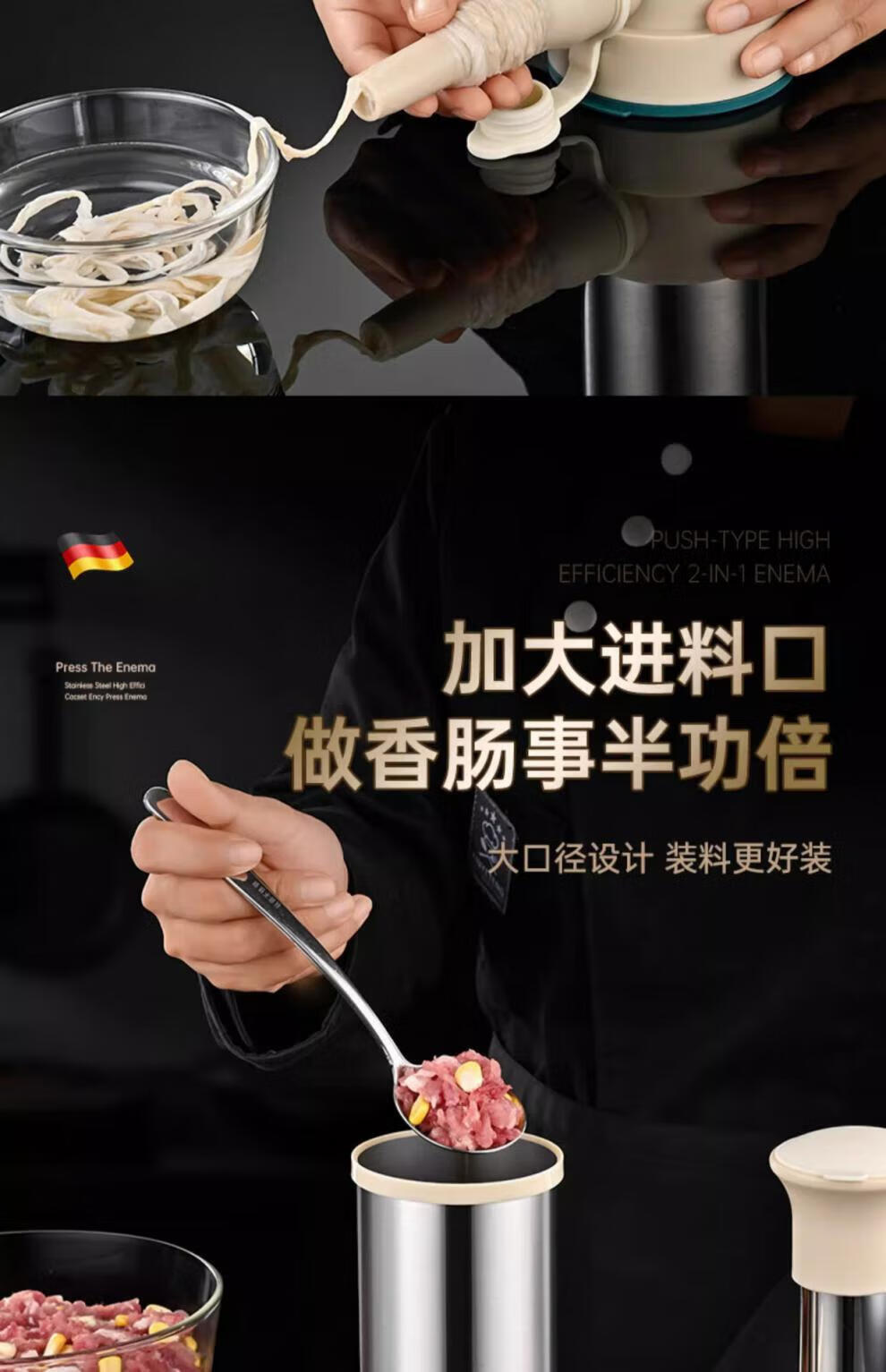 Sailoto quality sausage stuffer machine, household sausage stuffer, manual sausage stuffing machine, sausage stuffing machine, enlarged stainless steel barrel + 3 packs of casings