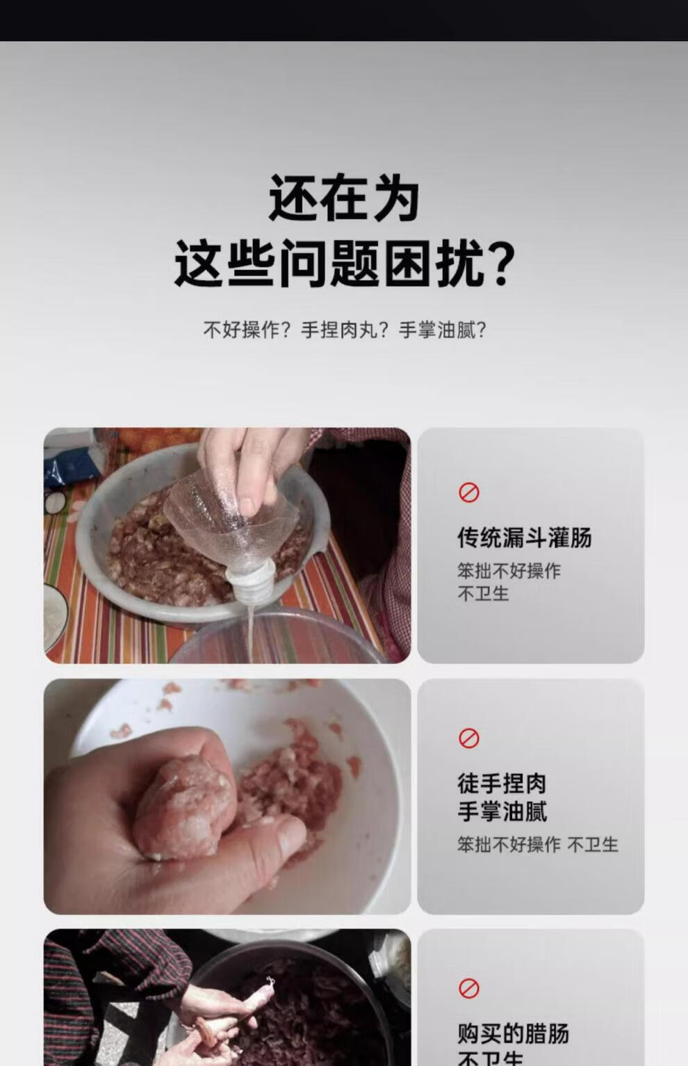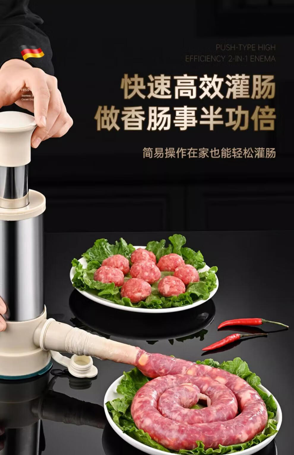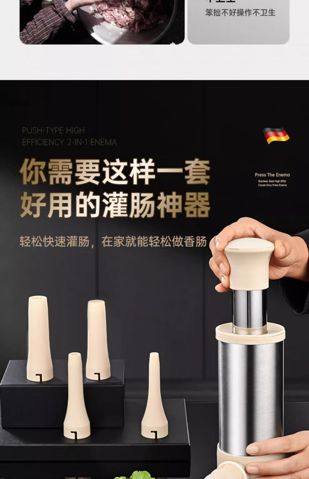 Sailoto quality sausage stuffer machine, household sausage stuffer, manual sausage stuffing machine, sausage stuffing machine, enlarged stainless steel barrel + 3 packs of casings