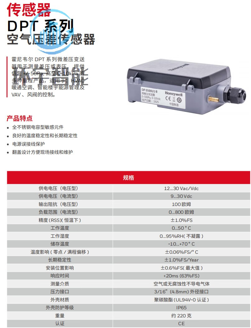Honeywell Micro Pressure Differential Sensor DPT2500U1-A 0-2500Pa_4-_2