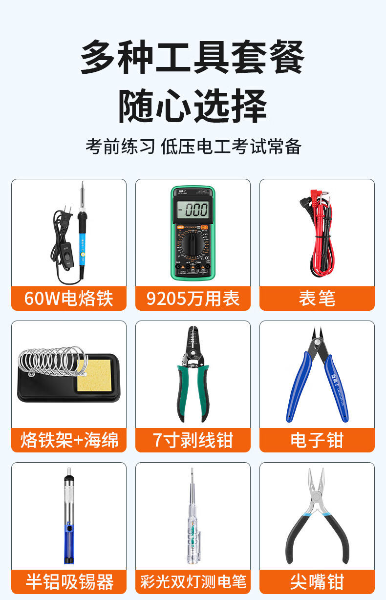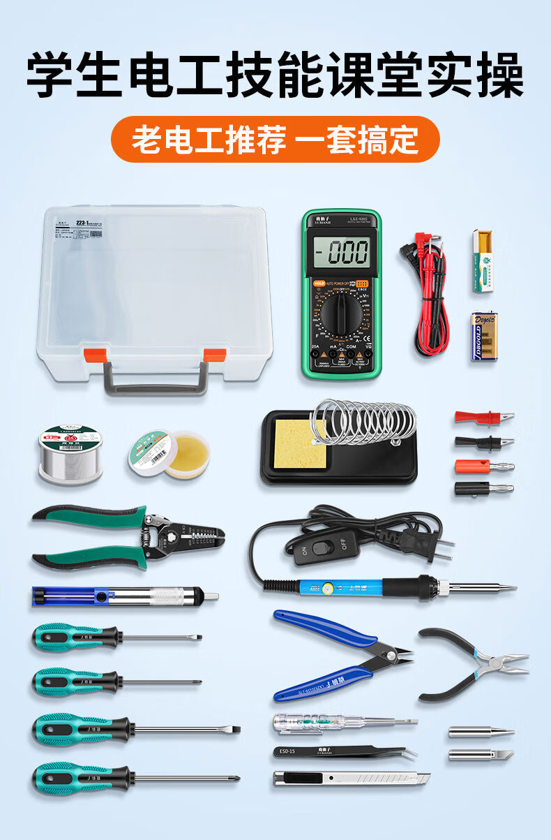 Sailoto Electrician Tool Set Mechanical and Electrical Integration Student Test Low Voltage Training Electrician Soldering Iron Repair Tool Box 13-piece Set Electrician Low Voltage Test