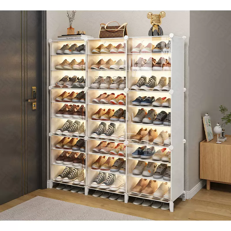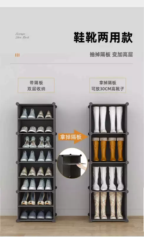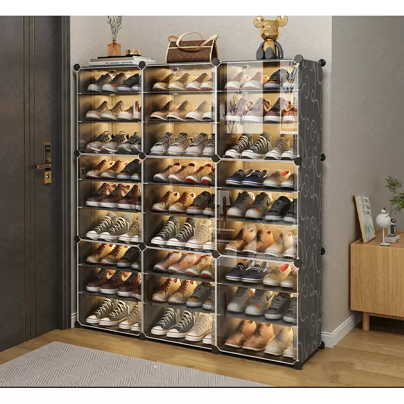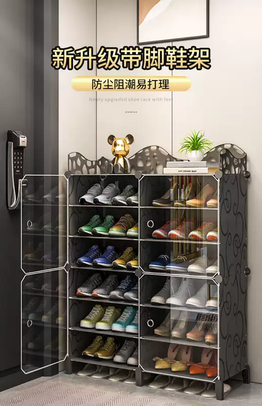 Yusenyi simple shoe rack doorway household dust transparent shoe cabinet dormitory multi-layer shoe storage artifact space-saving 3 columns 6 layers black flowers