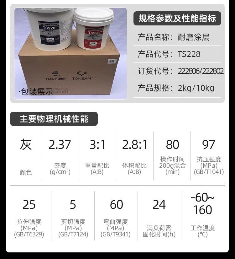 Ts226228 wear-resistant coating silicon carbide industrial metal anti-rust coating wear-resistant ceramic particle glue TS23810kg