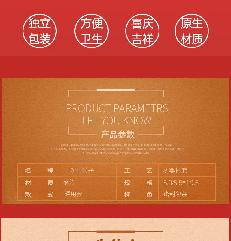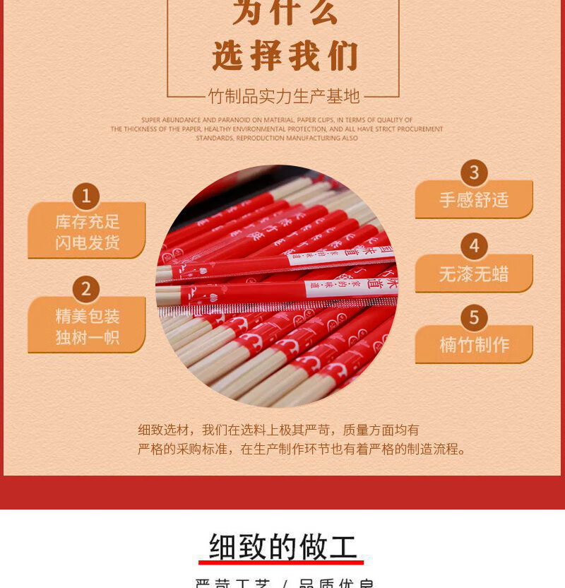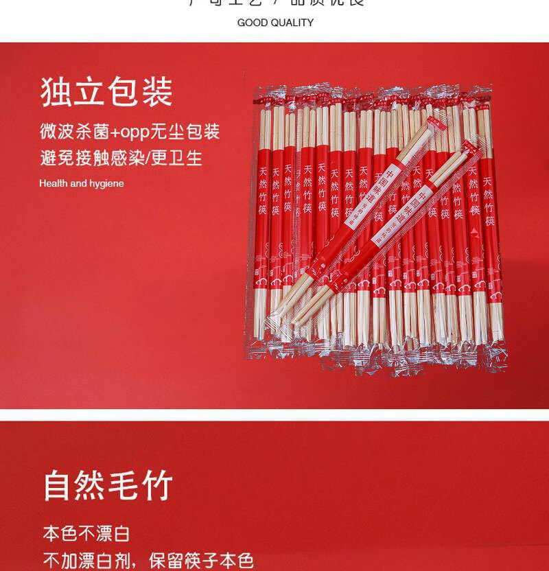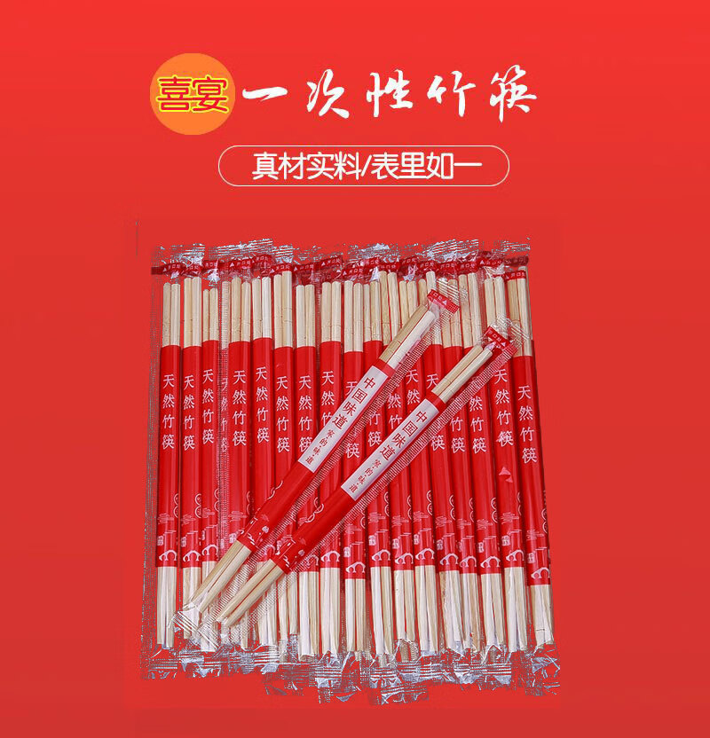 Disposable chopsticks for home fast food and hygienic bamboo chopsticks for restaurants, individually packaged for banquets, banquets and dinners, 19.5cm*4.5mm, individually packaged, 50 pairs