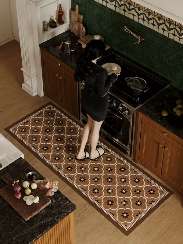 Yusenyi kitchen floor mats are non-slip and oil-proof, wipeable and wash-free foot mats, chef's entrance room, special-shaped cuttable diatoms 2_ Selena B type 50x120cm