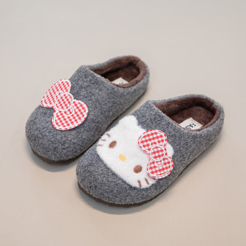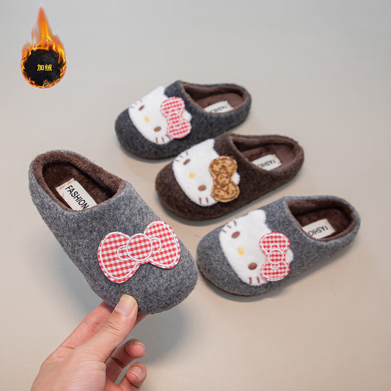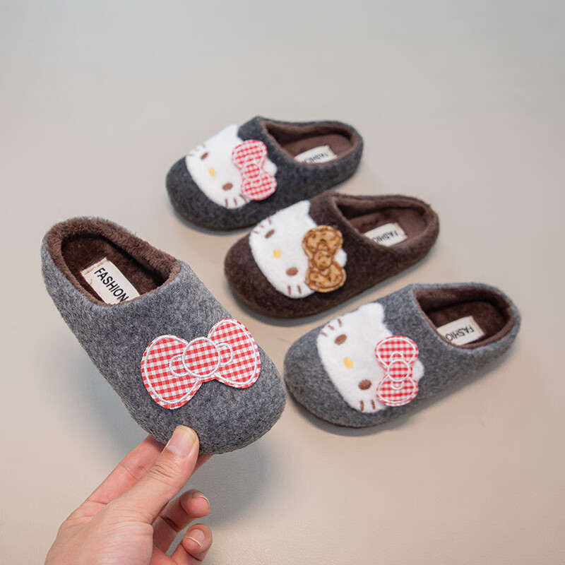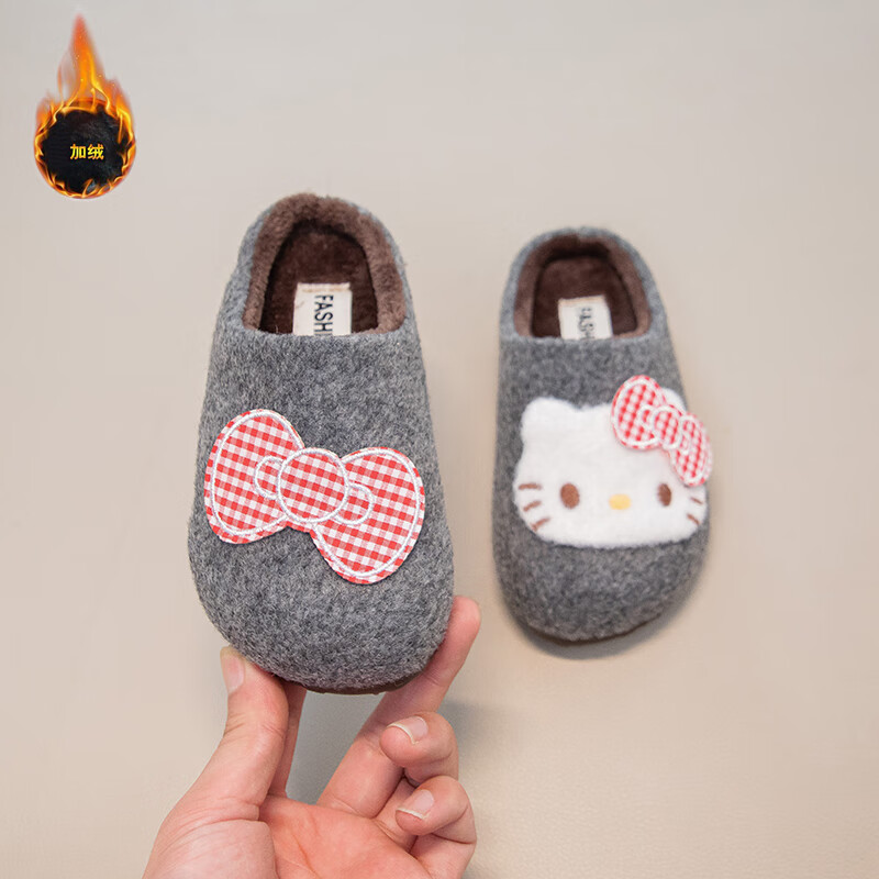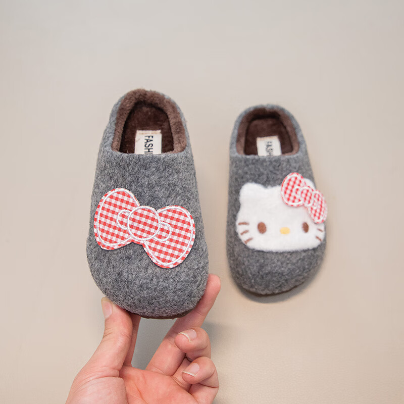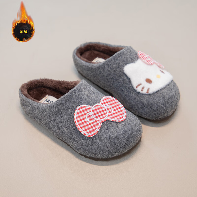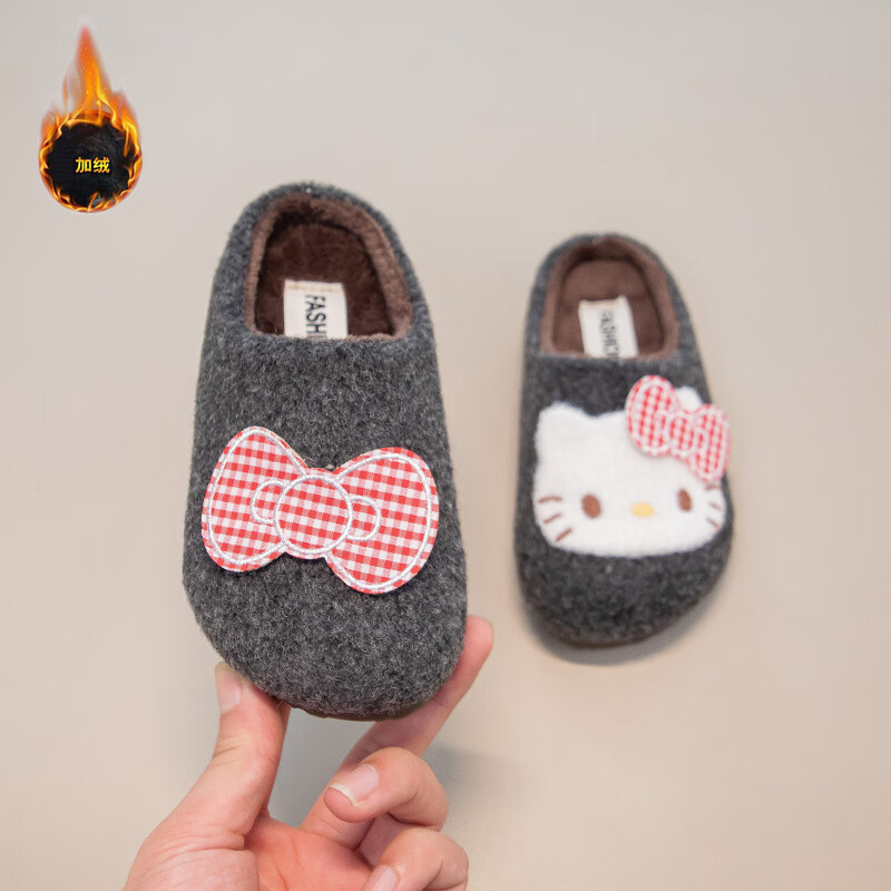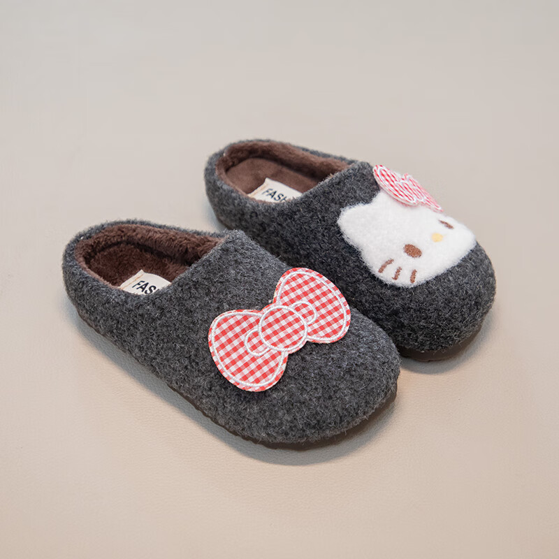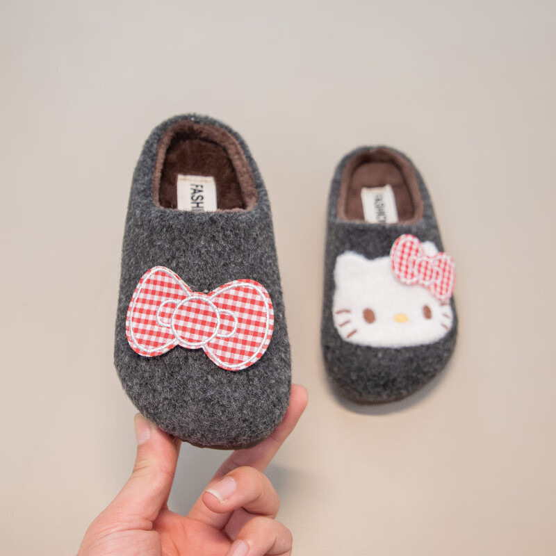 Girls' Cute KT Cat Cartoon Baotou Slippers for Outerwear 2025 Winter New Woolen Birkenstock Shoes and Cotton Slippers Dark Gray (Photographed by Inner Length) 29 Inner Length 18cm