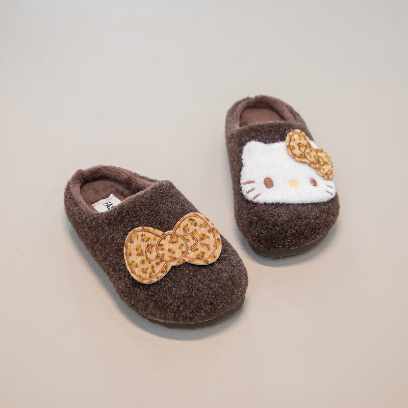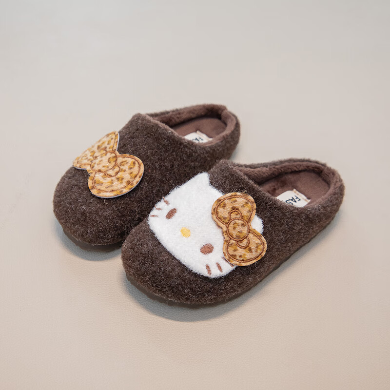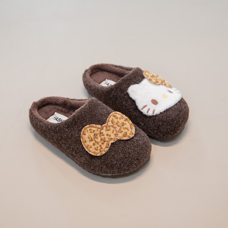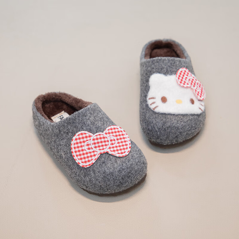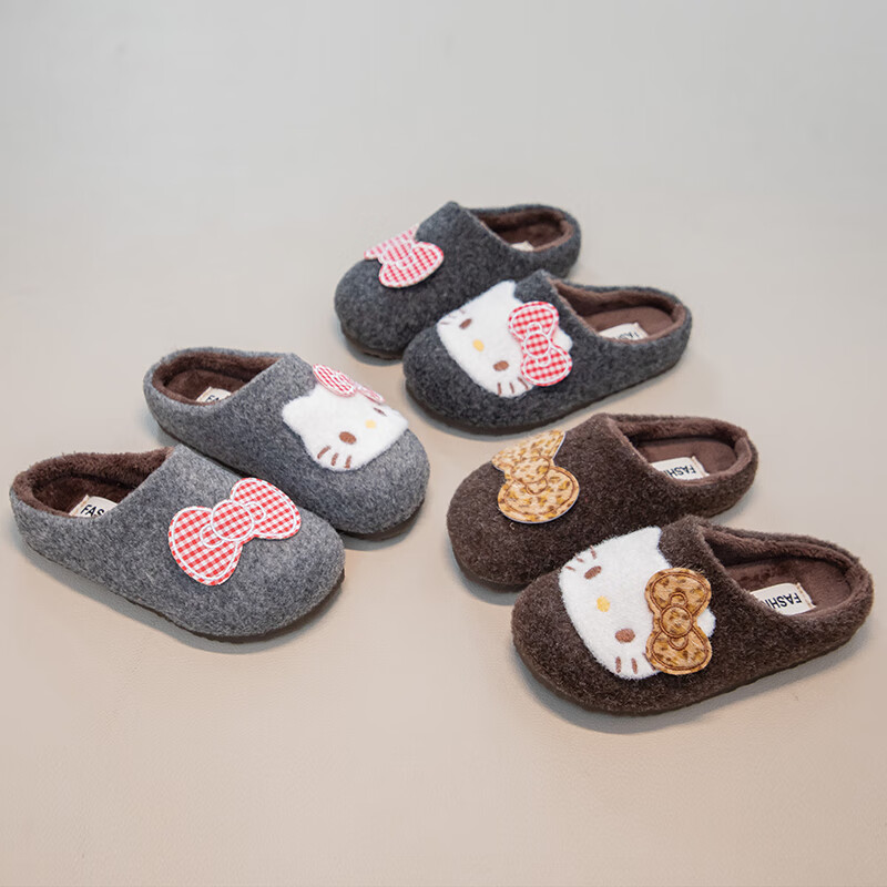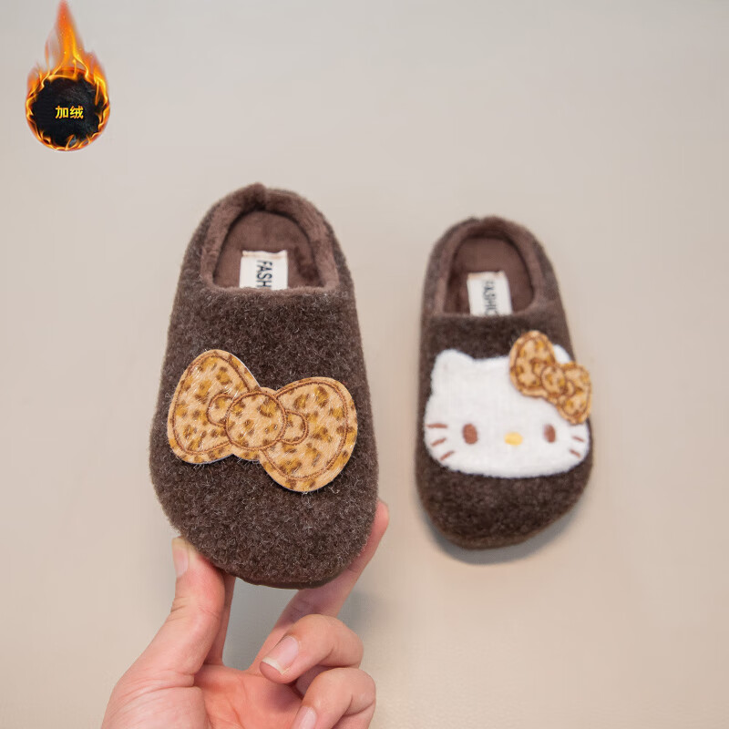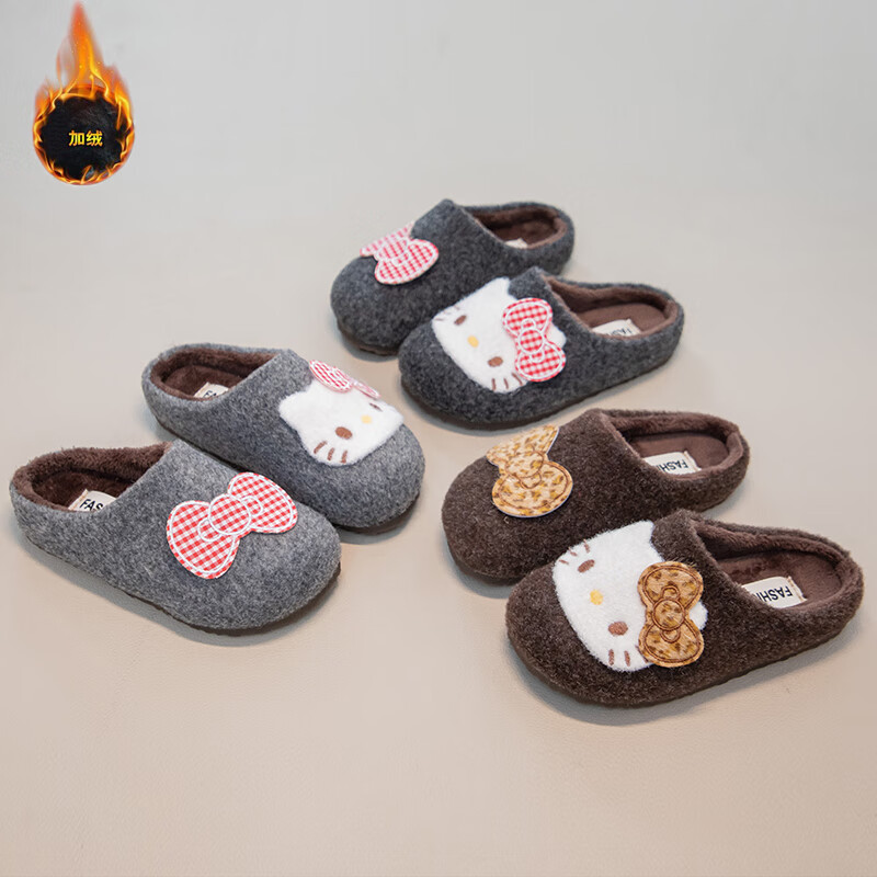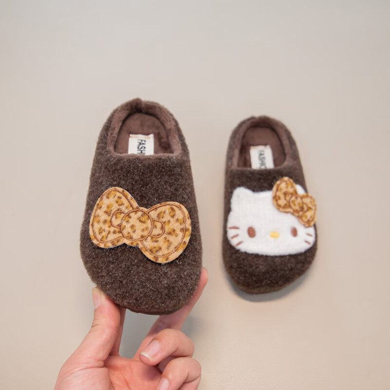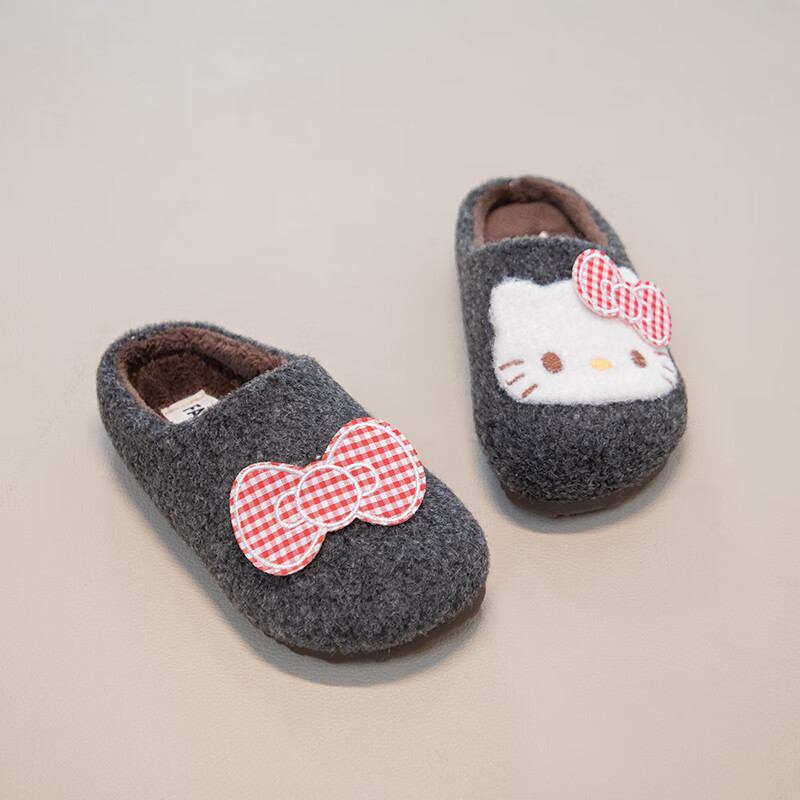 Girls' Cute KT Cat Cartoon Baotou Slippers for Outerwear 2025 Winter New Woolen Birkenstock Shoes and Cotton Slippers Dark Gray (Photographed by Inner Length) 29 Inner Length 18cm