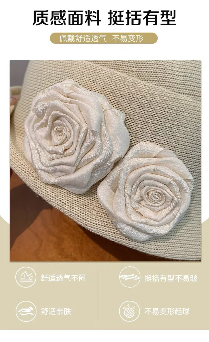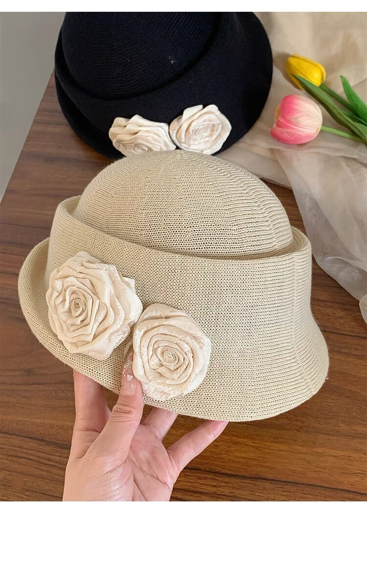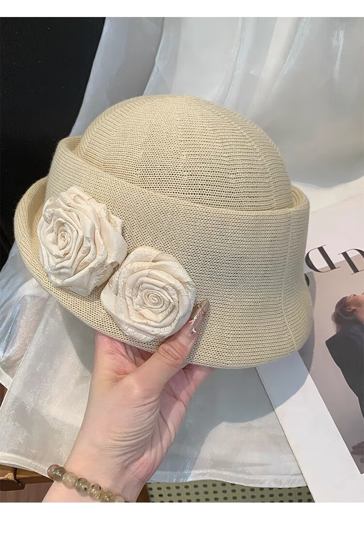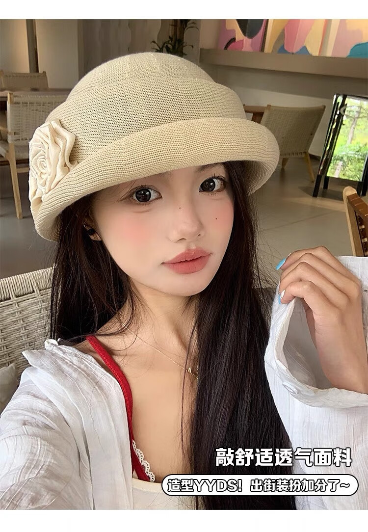 Zunti hat women's camellia curled linen beret spring thin breathable face-showing Little Hepburn style top hat painter's hat beige one size