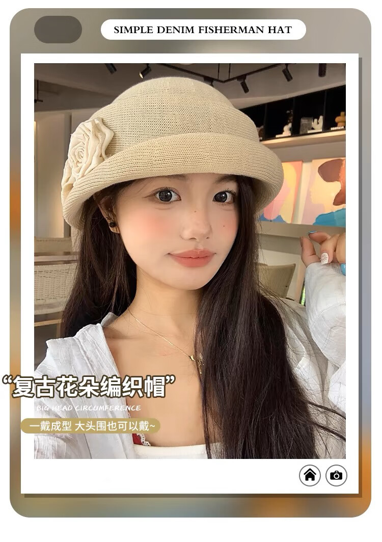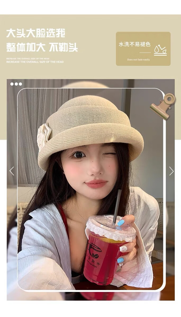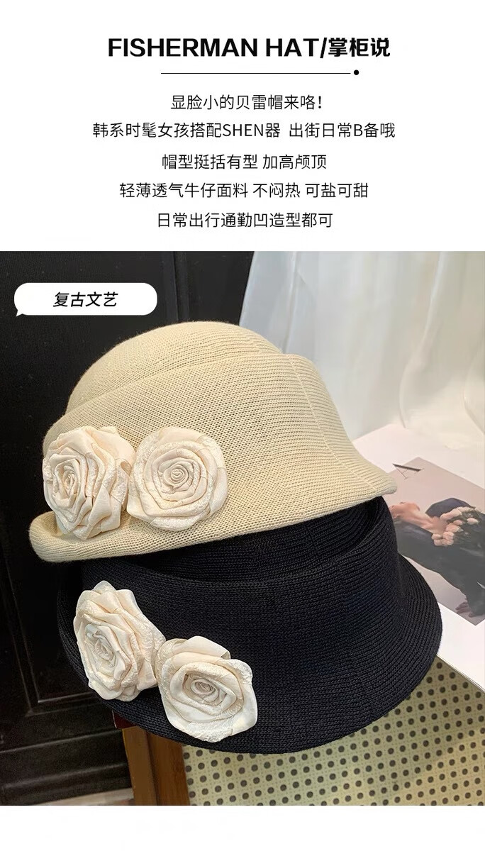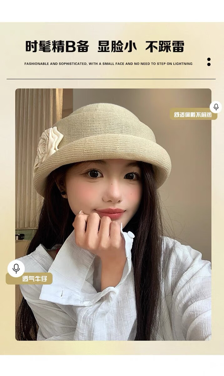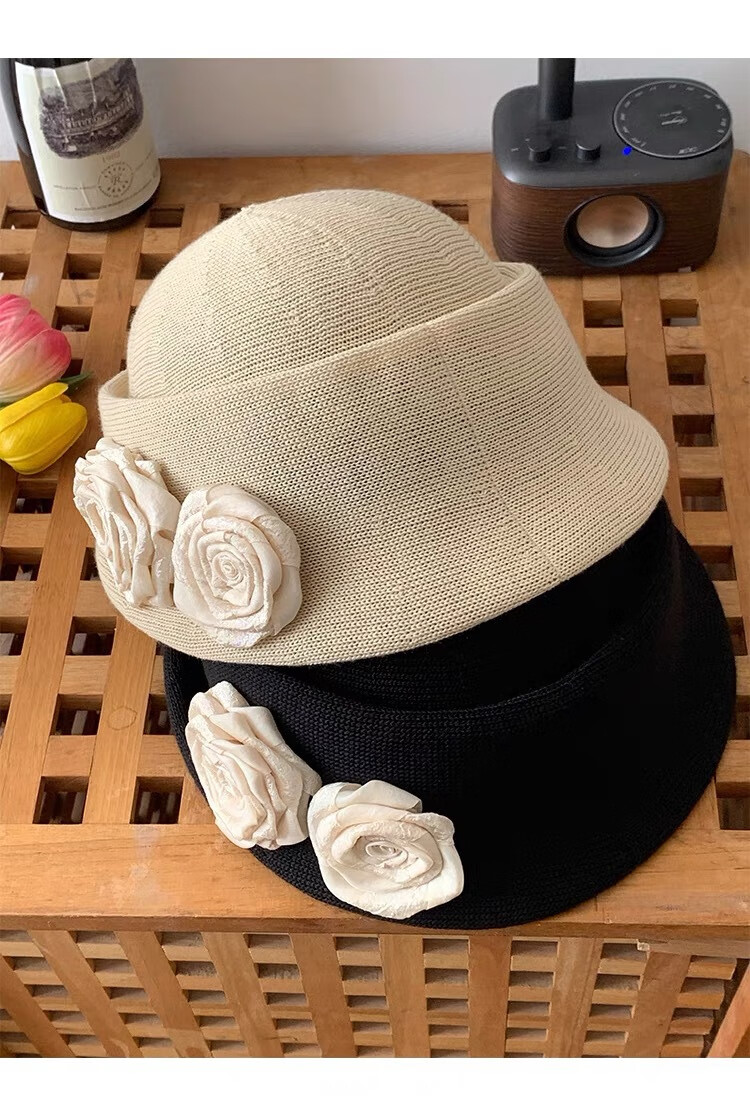 Zunti hat women's camellia curled linen beret spring thin breathable face-showing Little Hepburn style top hat painter's hat beige one size