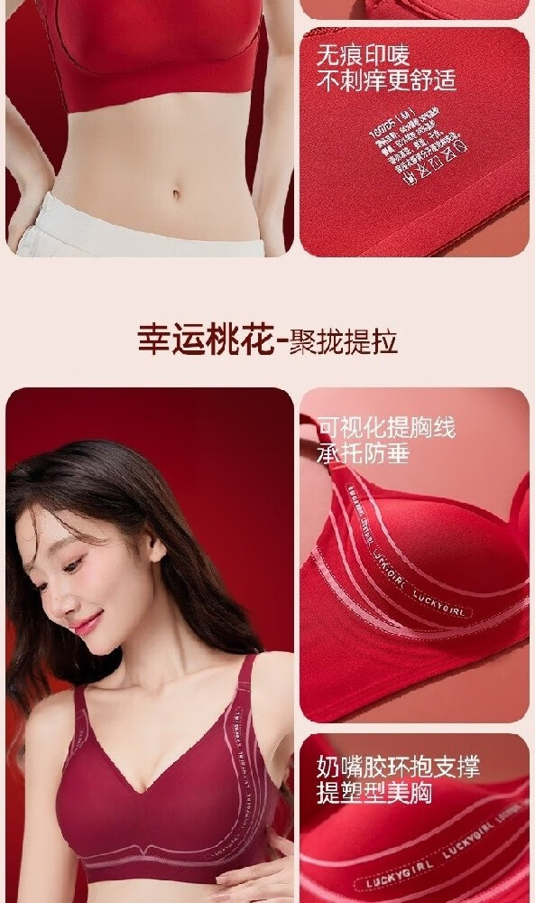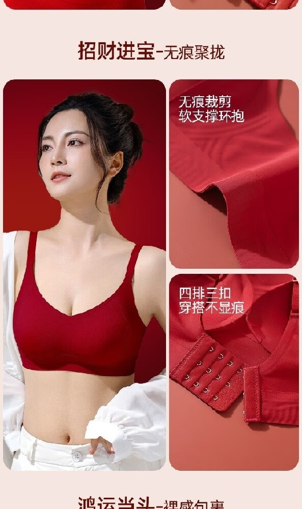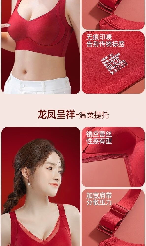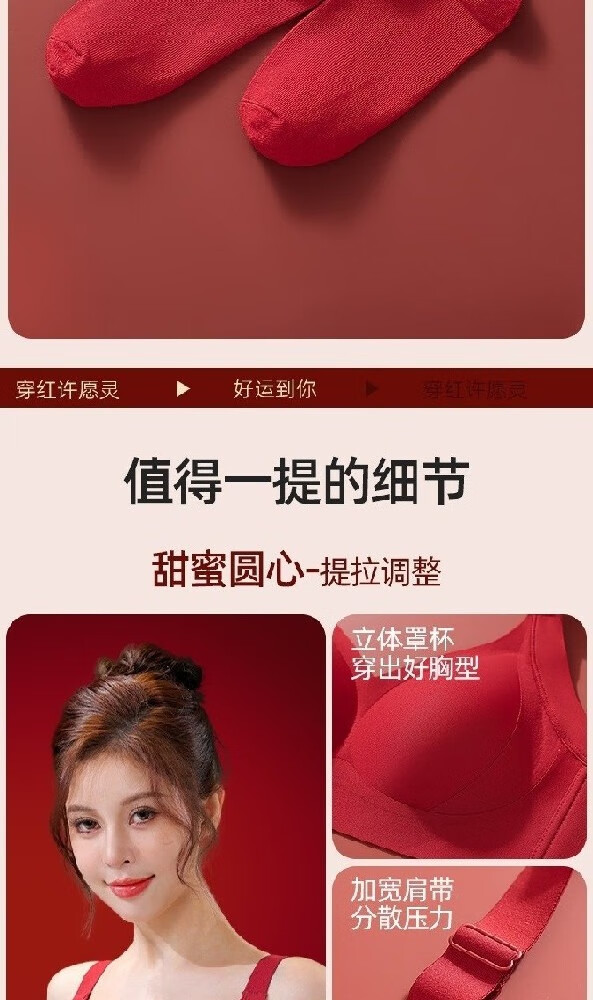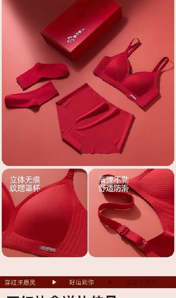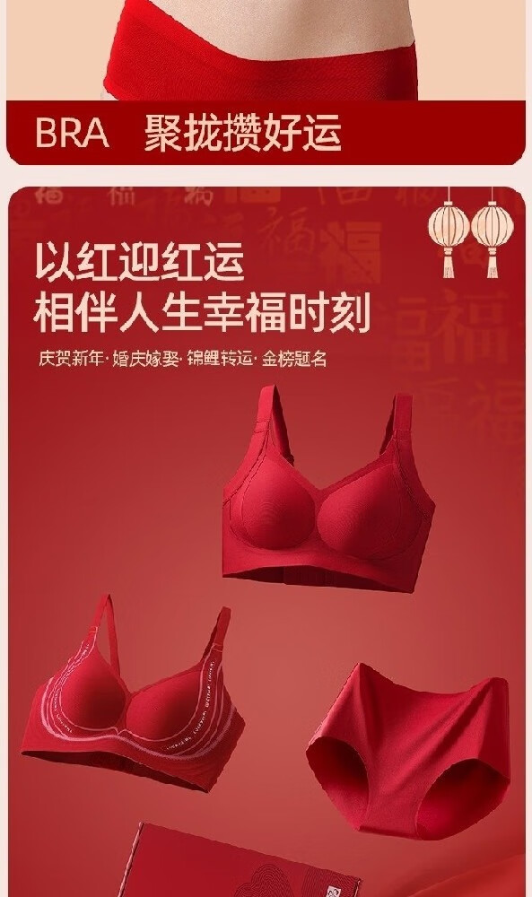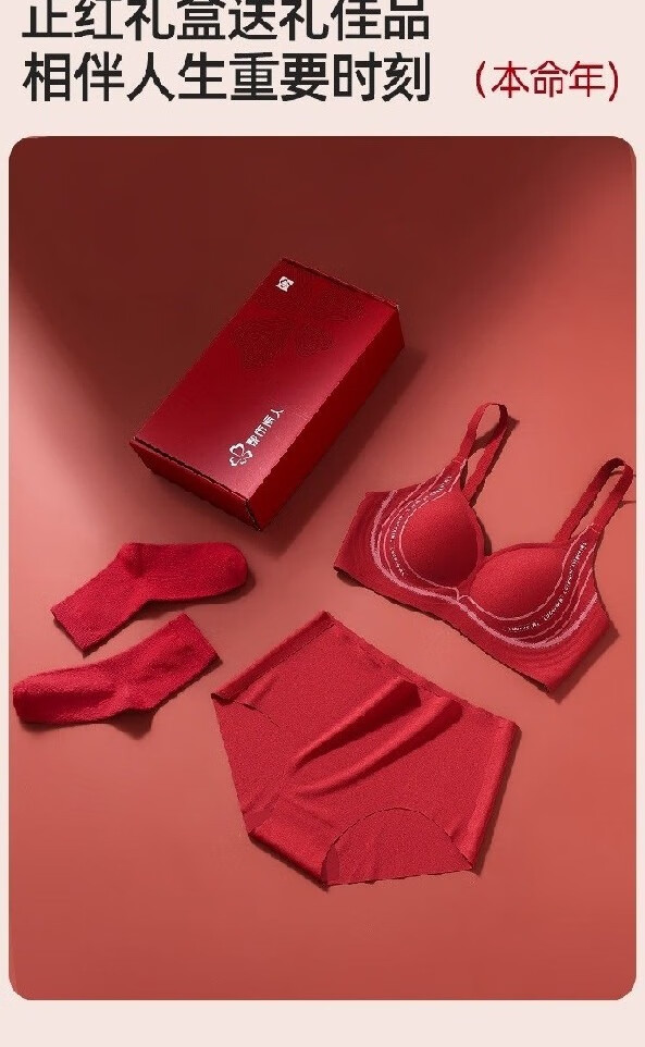 Urban Beauty Women's Year of the Pig Underwear Set Red Underwear Push Up Small Breasts to Show Bigger Wedding Bride Underwear Seamless Bra Good Luck Underwear + Underwear + Gift Box + Socks + Red Envelope M 34/75ABC Recommended 90-105 Jin Jin is equal to 0.5 kg